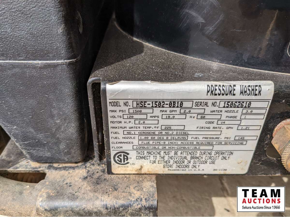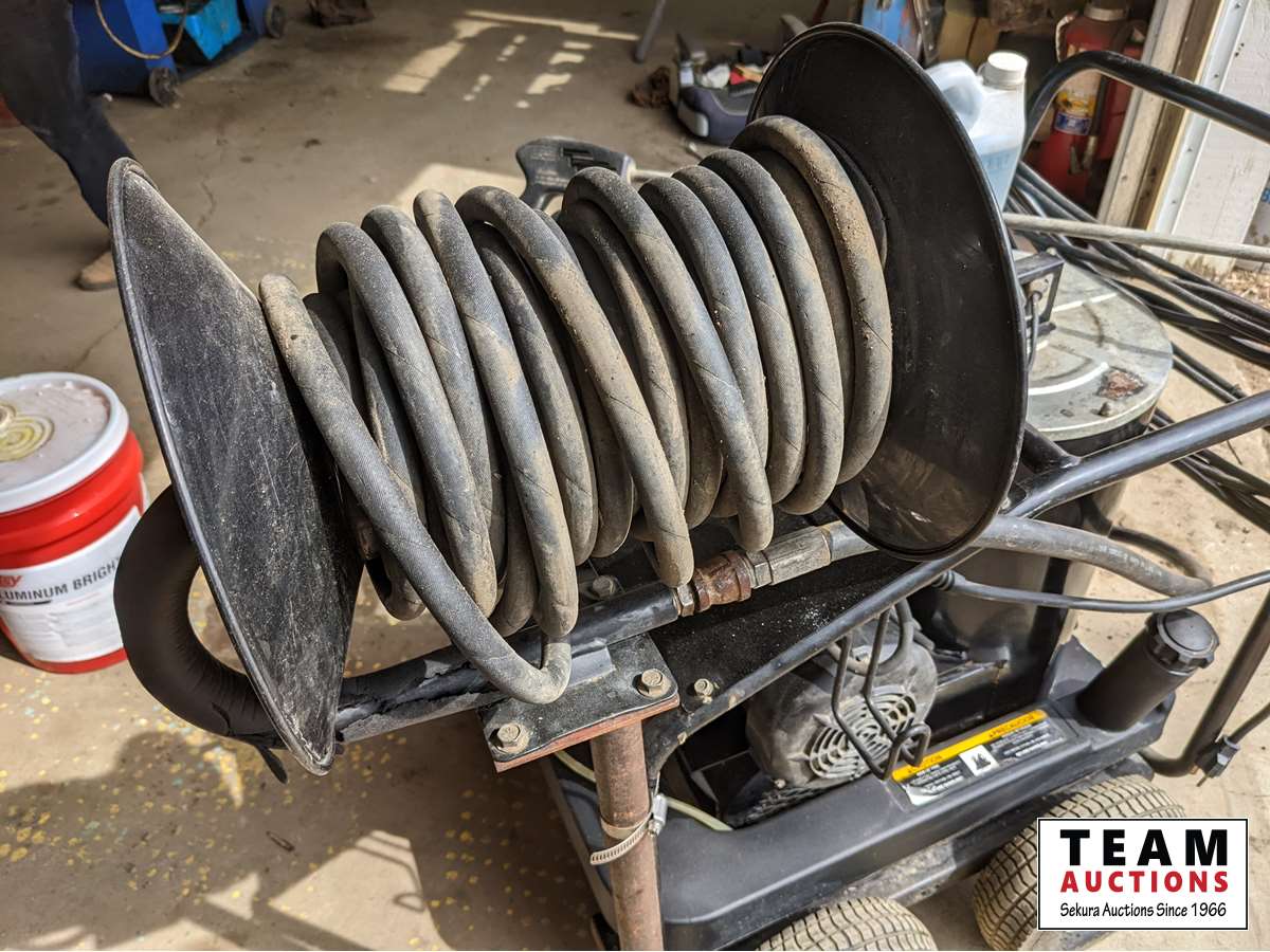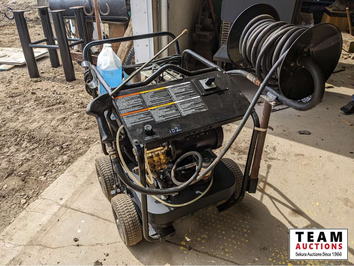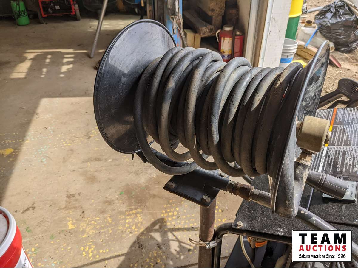 2 GPM, 1500 PSI, 120 volt, hose reel, wand, 3/4 pail of aluminum bright wash