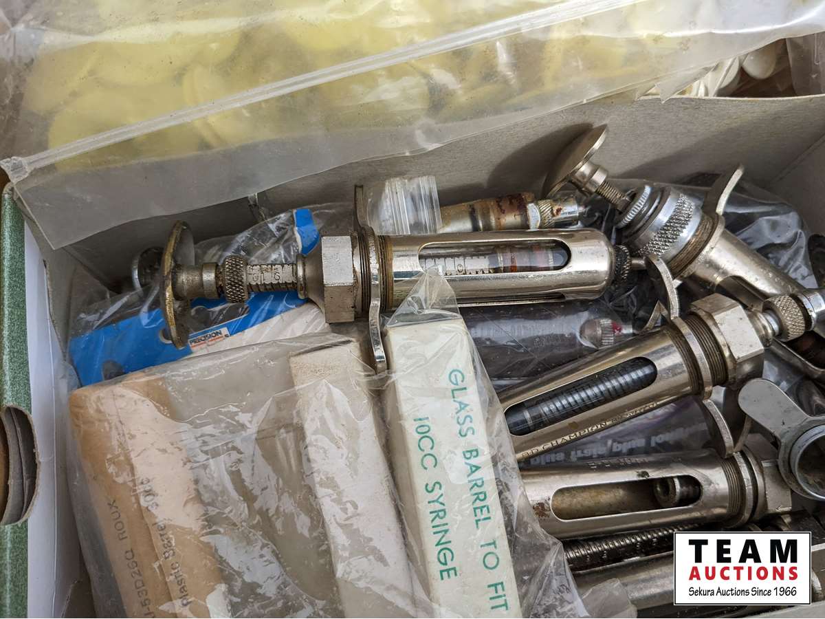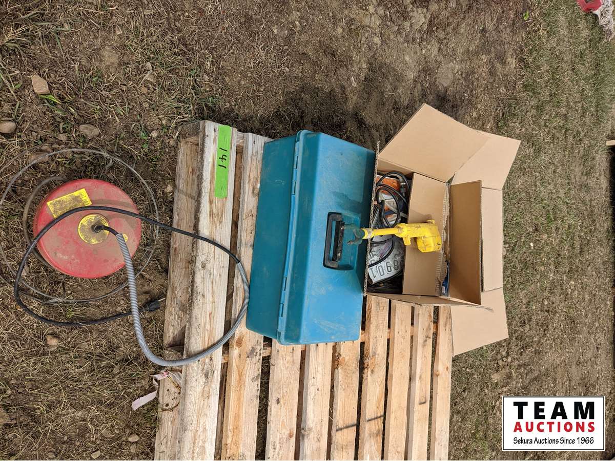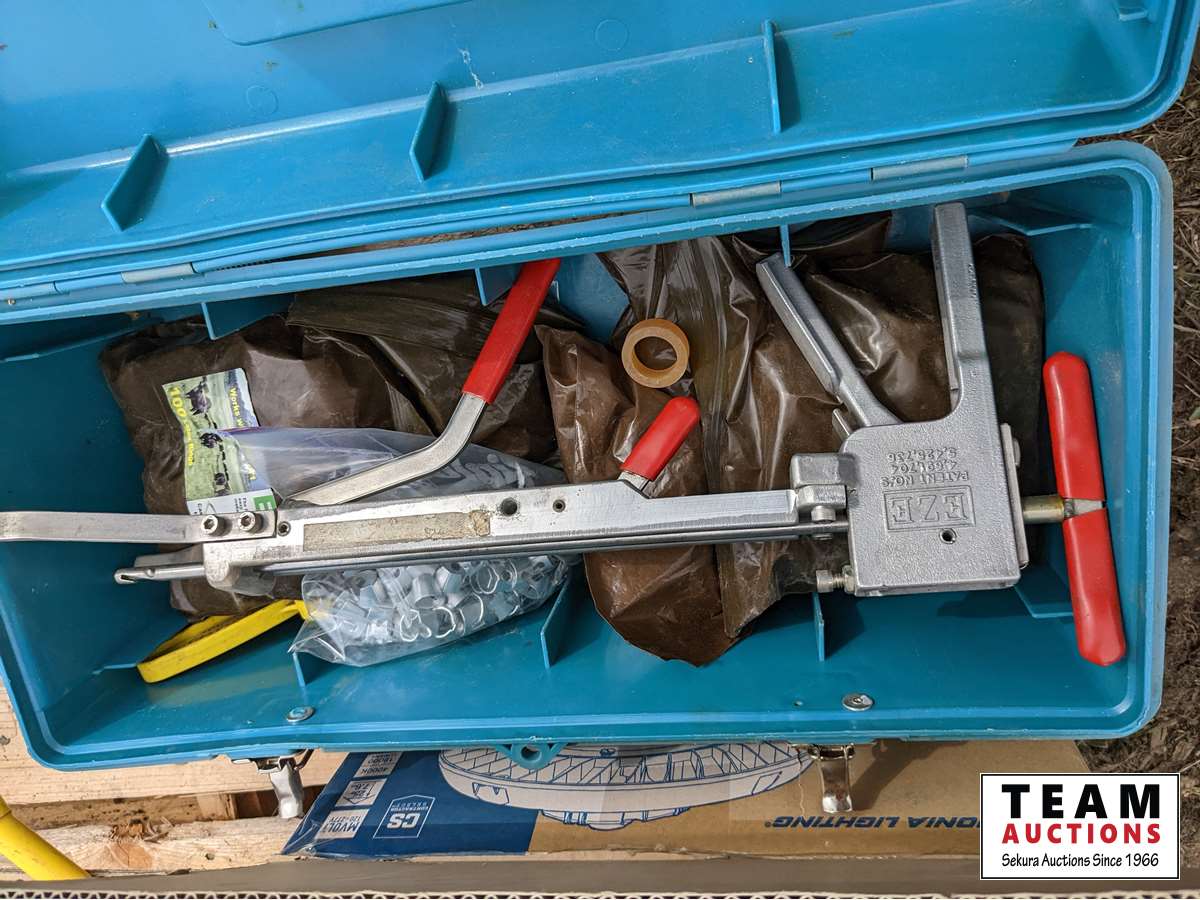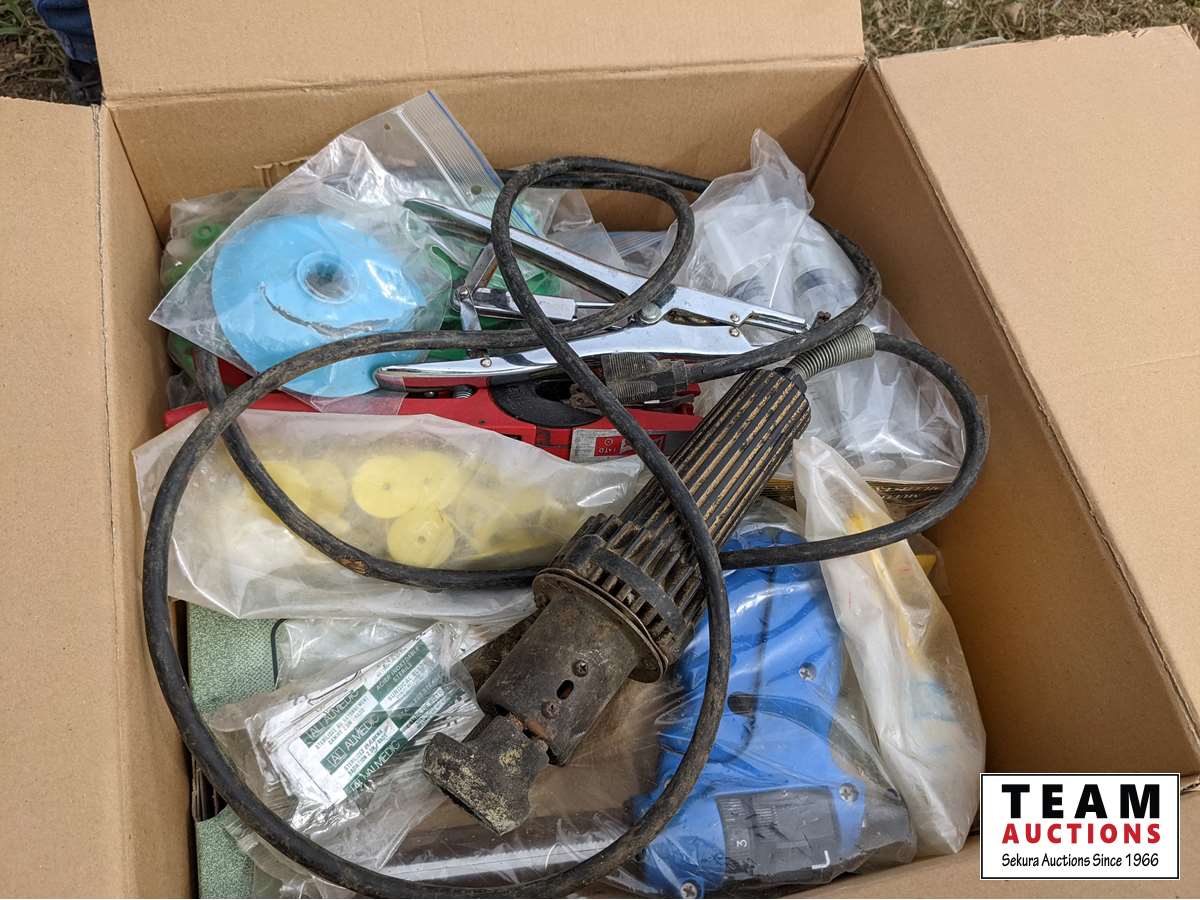 Ear tags, ear tag pliers, stock trough heater, needles, syringes, dehorners, castrator, stock prod, miscellaneous