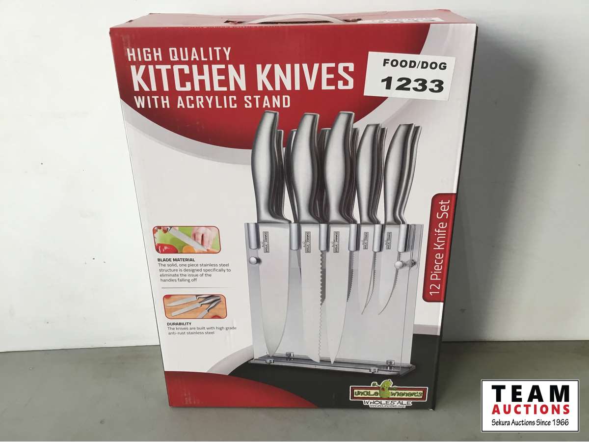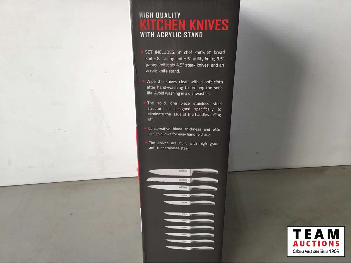 1576 12 Piece Kitchen Knife Set with Acrylic Stand (Unused)