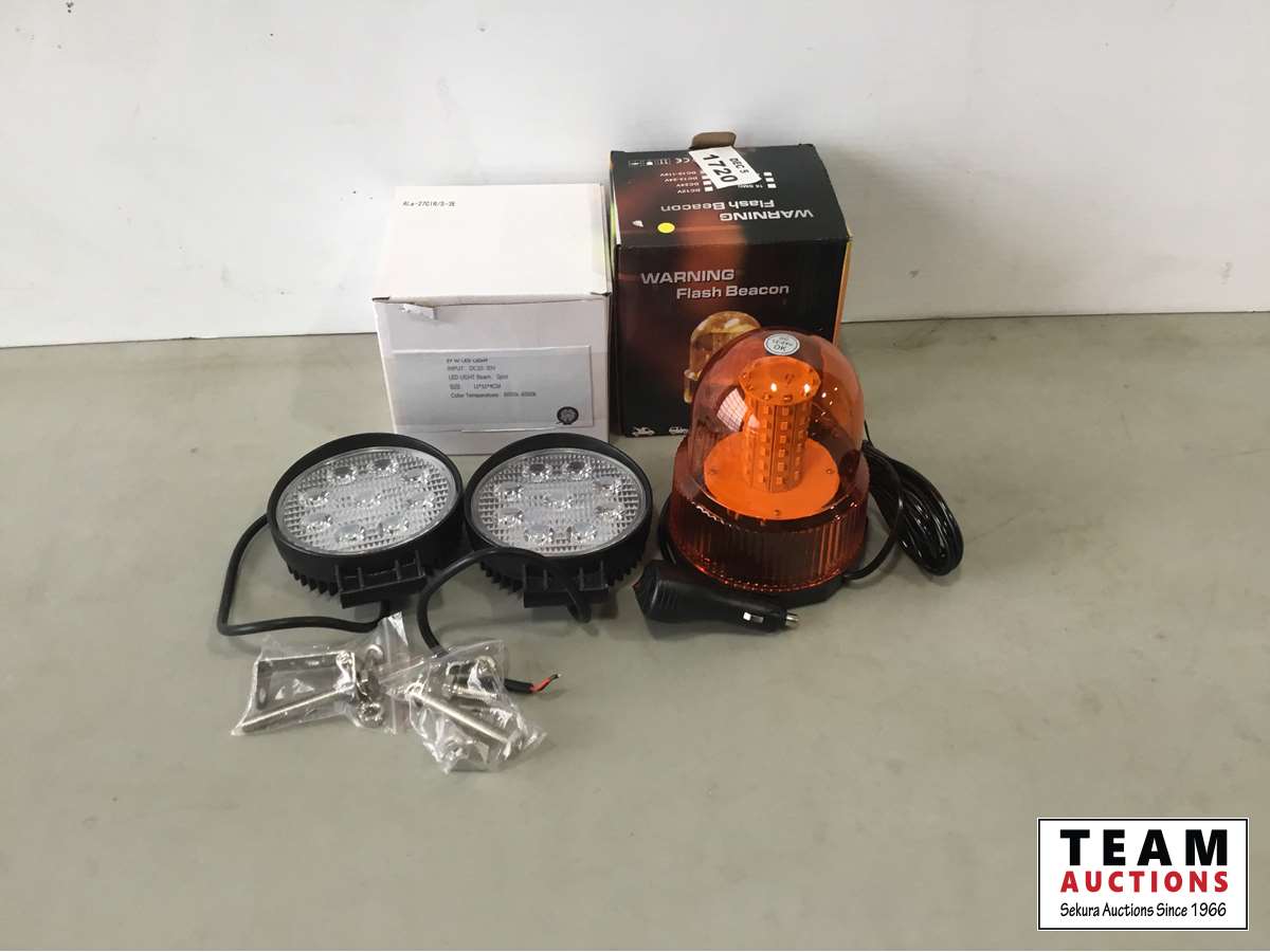 1600 (2) 27W LED Work Lights & Flashing Beacon Light (Unused)