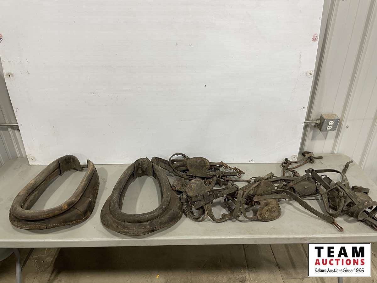 1354 (2) Horse Collars & Qty of Leather Horse Halters