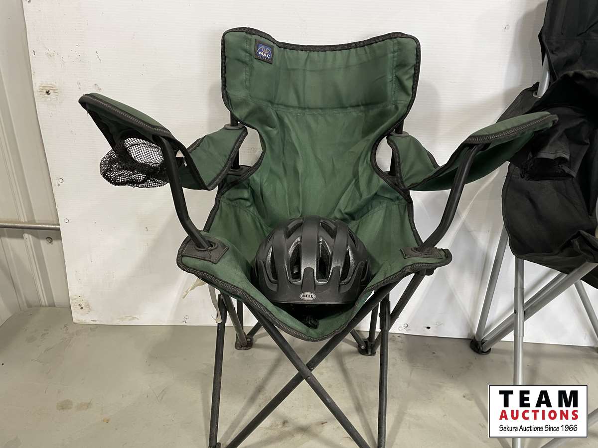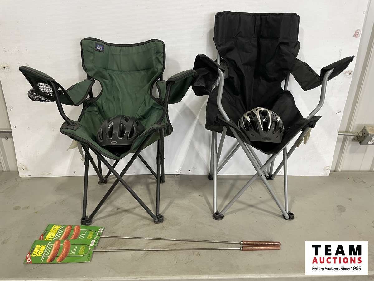 1368 (2) Lawn Chairs, (2) Campfire Forks & (2) Bike Helmets