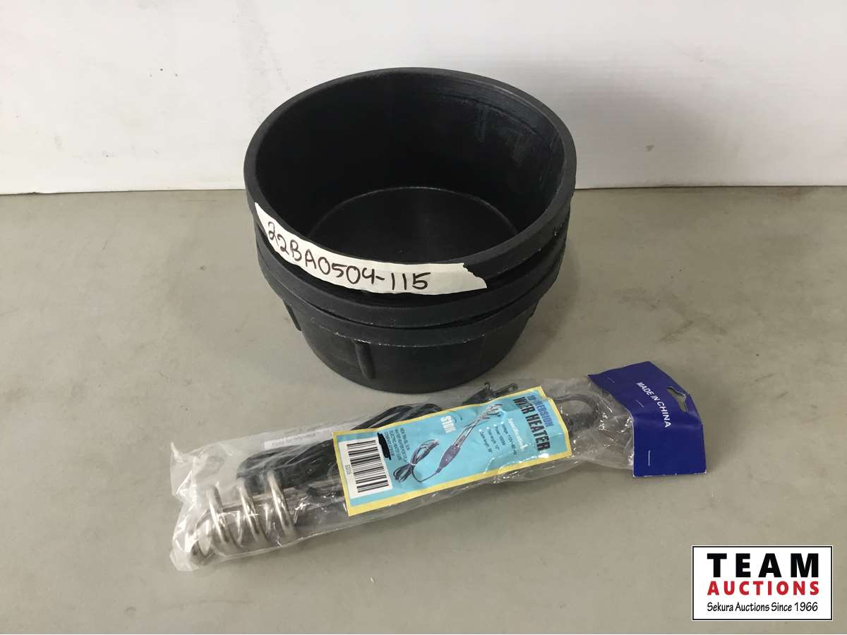 1549 (2) Rubber Buckets & 10 Inch 110V Water Heater (Unused)