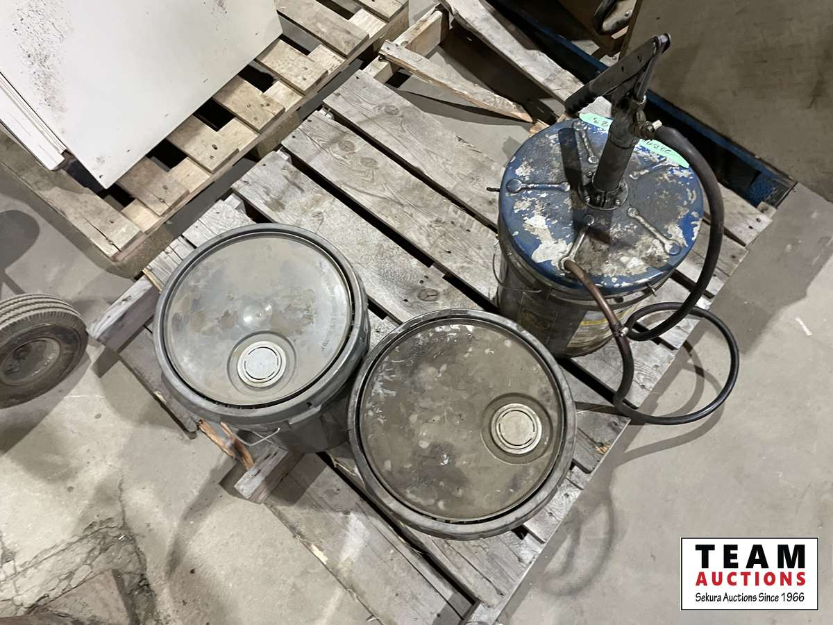 1220 (3) Buckets of Oil with Hand Pump