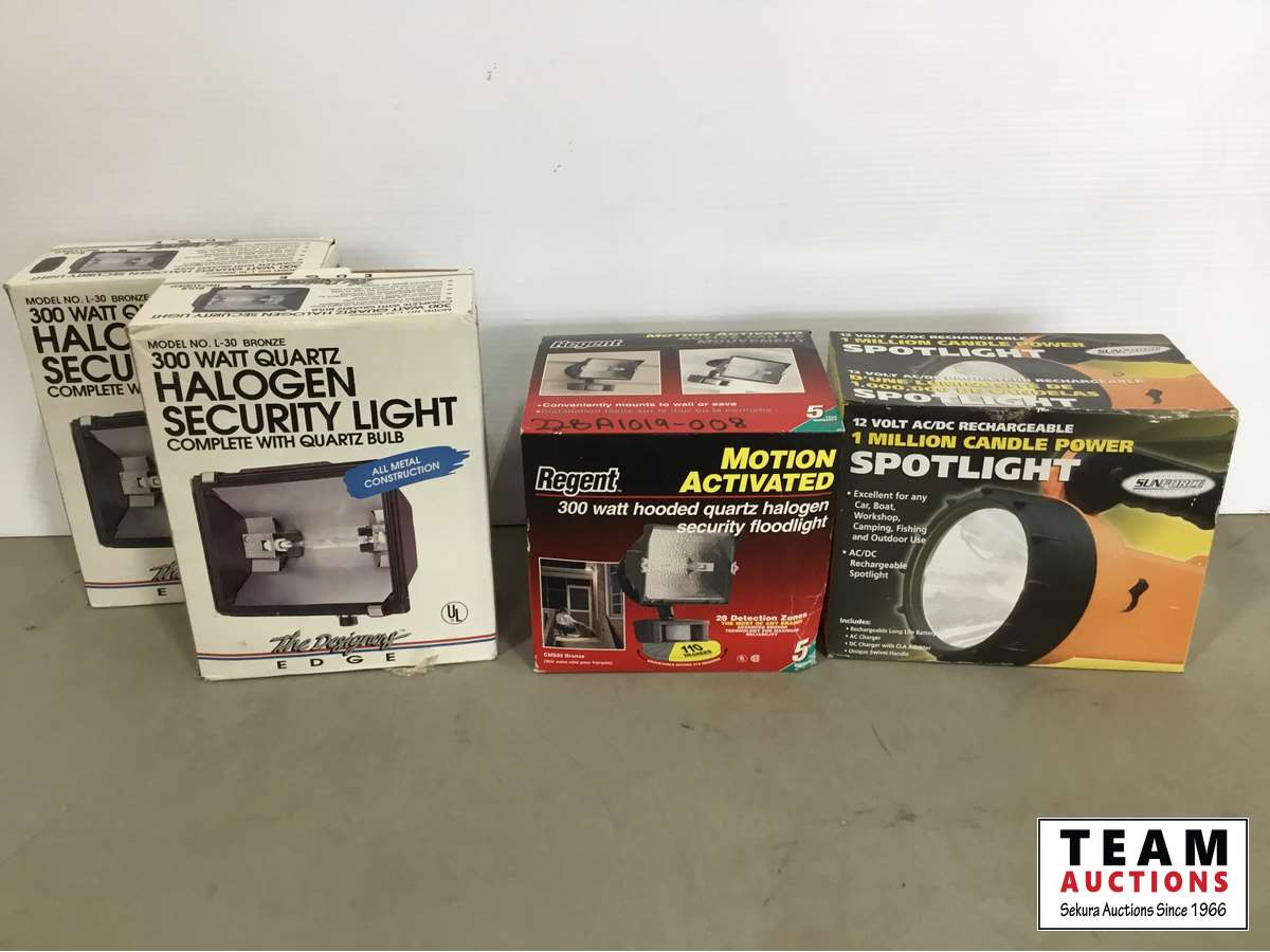 1468 300 Watt Security Light & 12V Rechargeable Spot Light