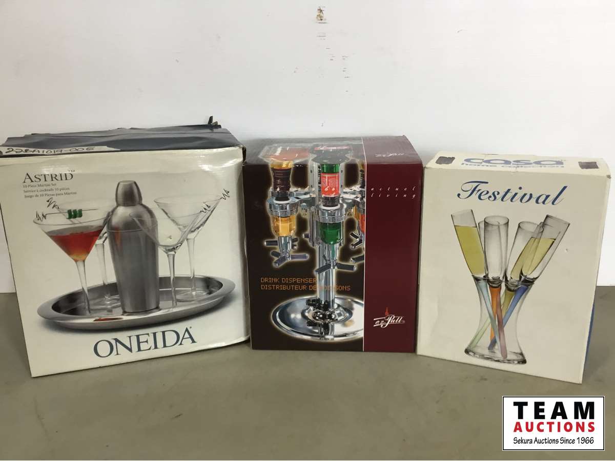 10 piece martini set, rotating drink dispenser 1-1/2 oz shots