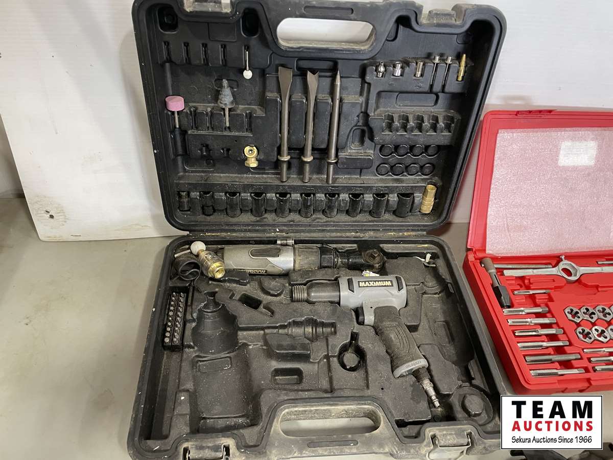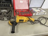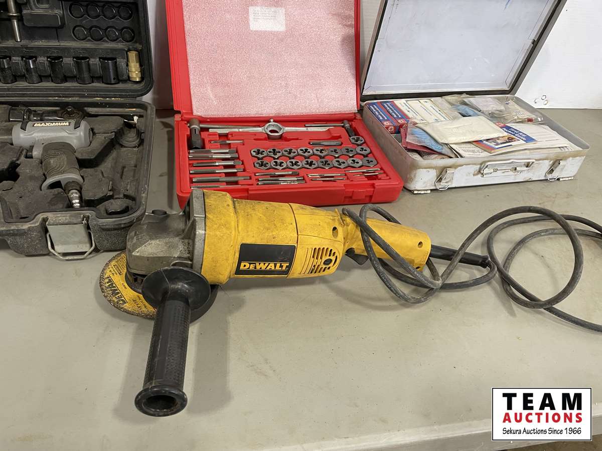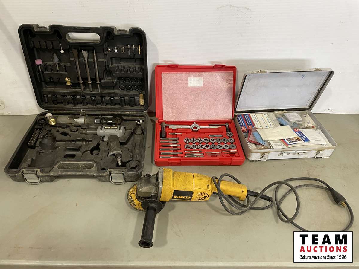 DeWalt grinder 6 inch, first aid kit, air hammer set, tap & die set