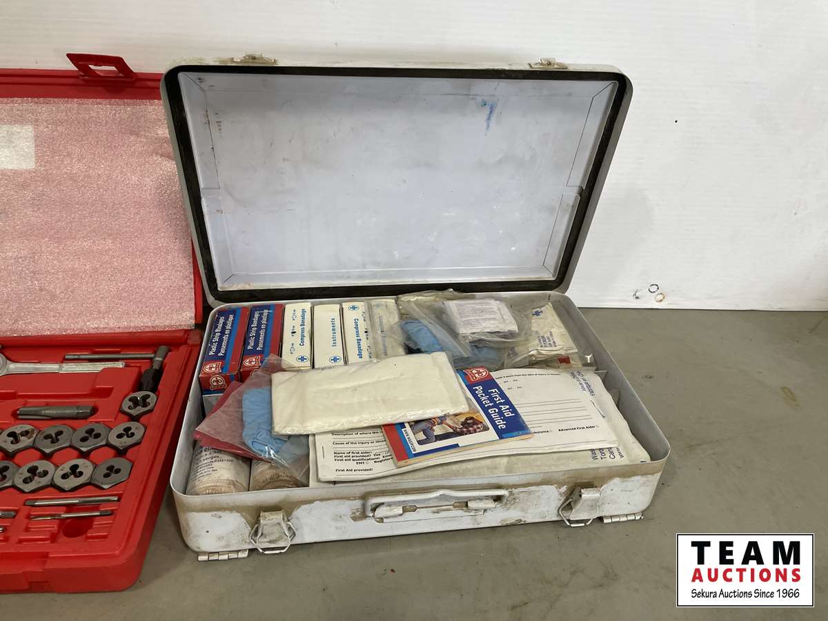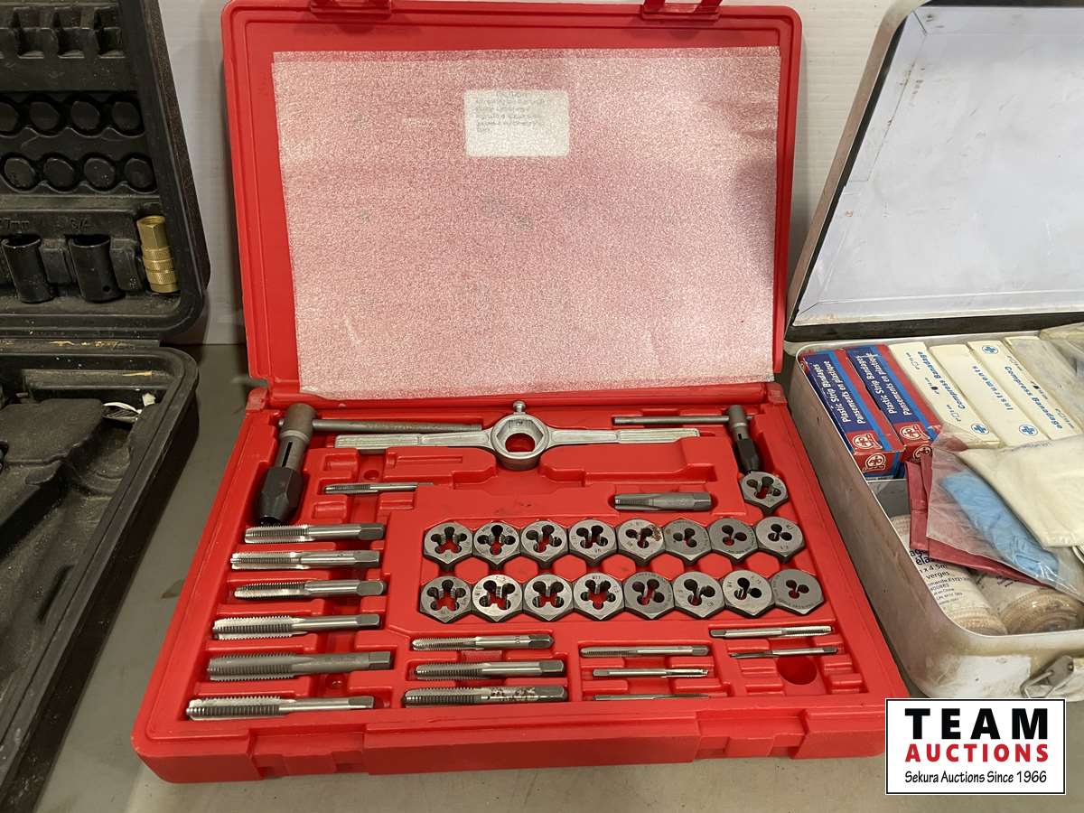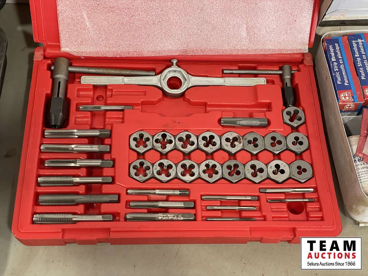 DeWalt grinder 6 inch, first aid kit, air hammer set, tap & die set