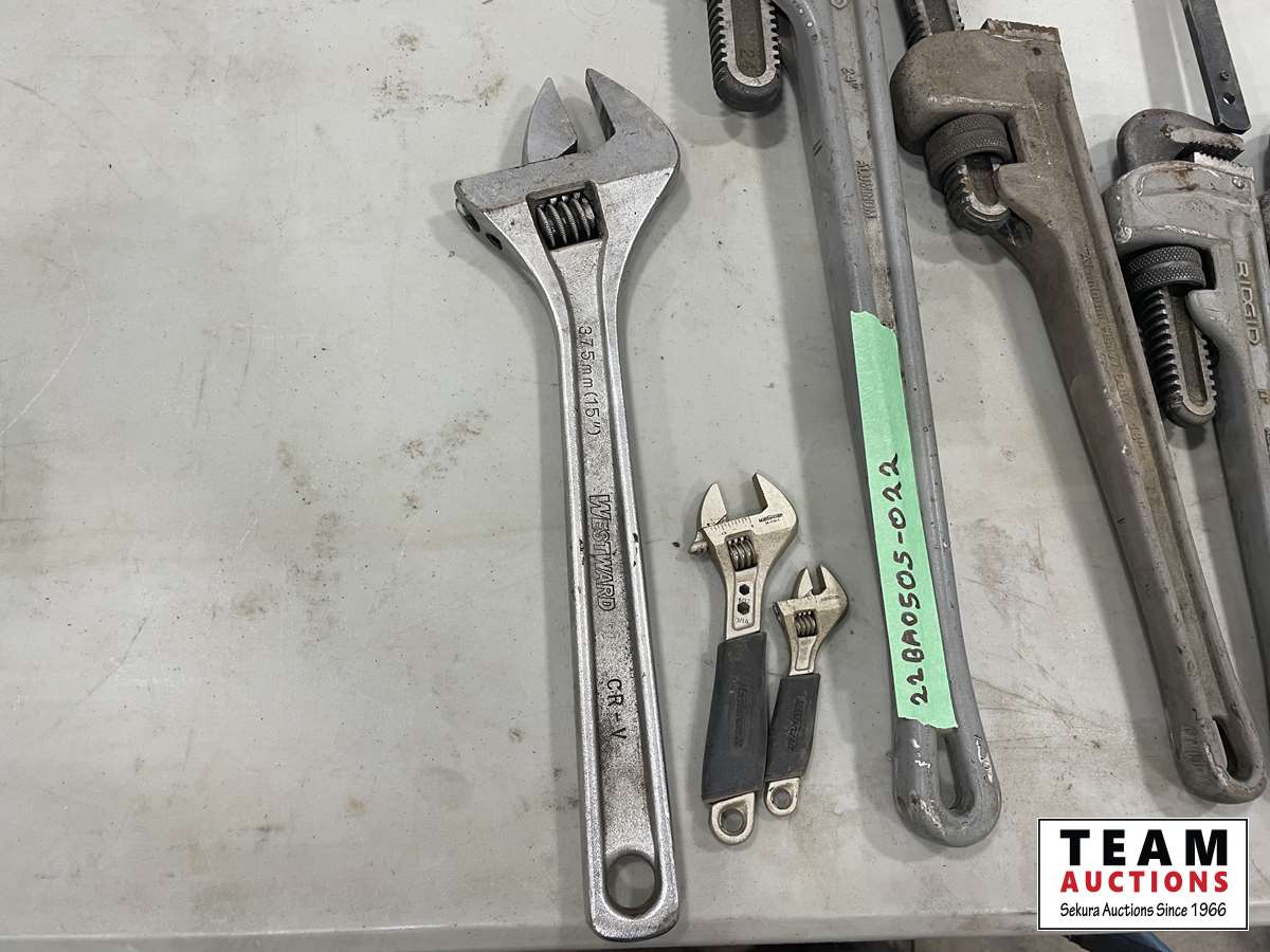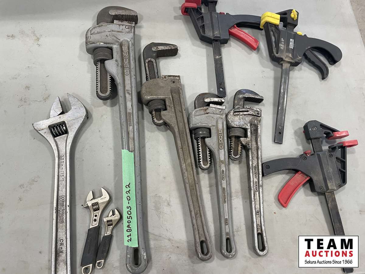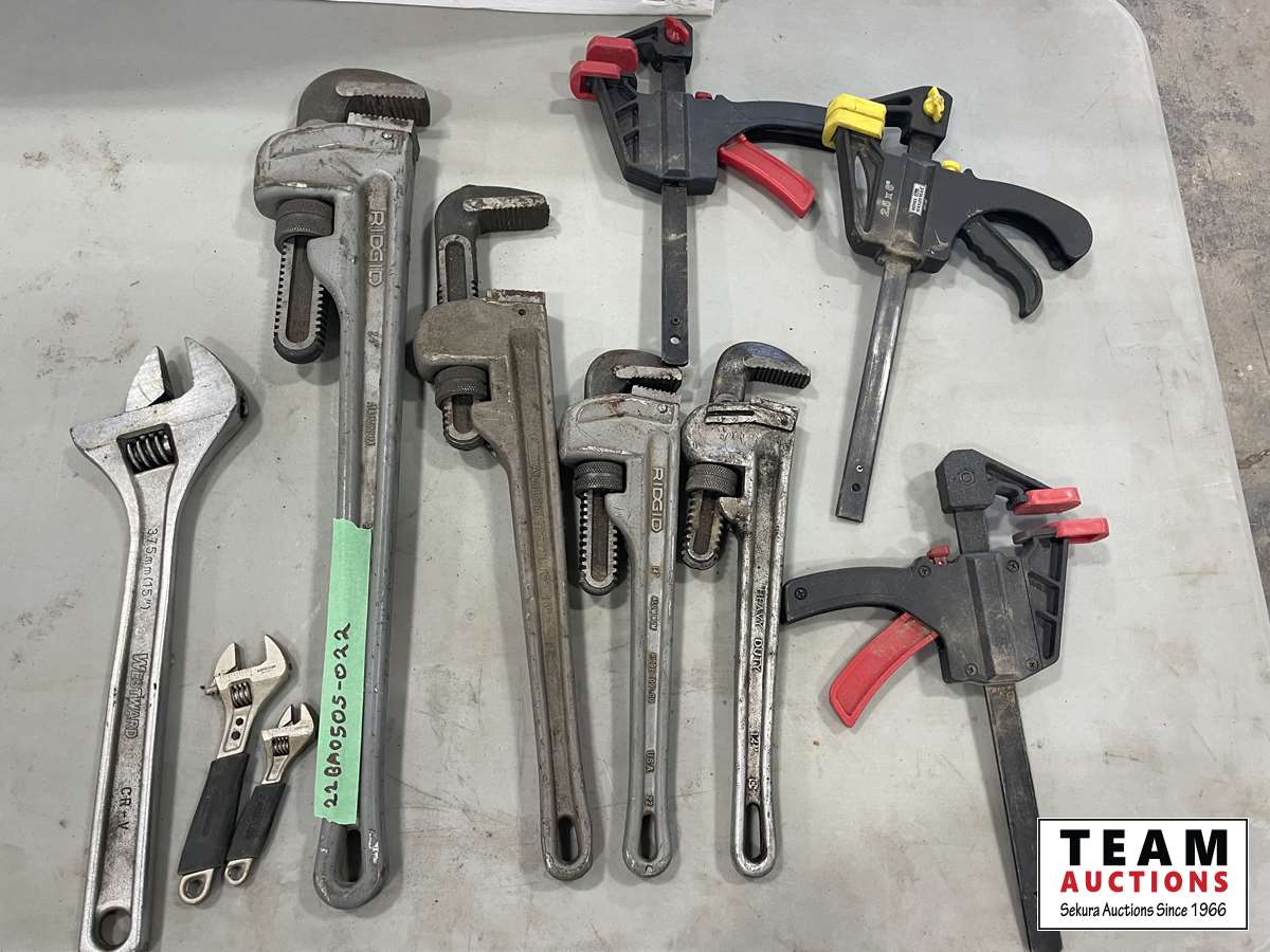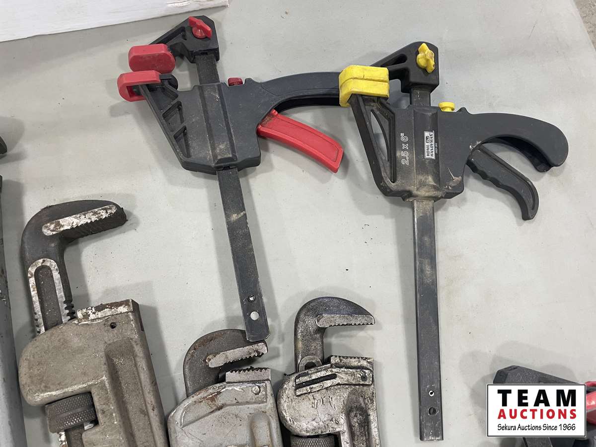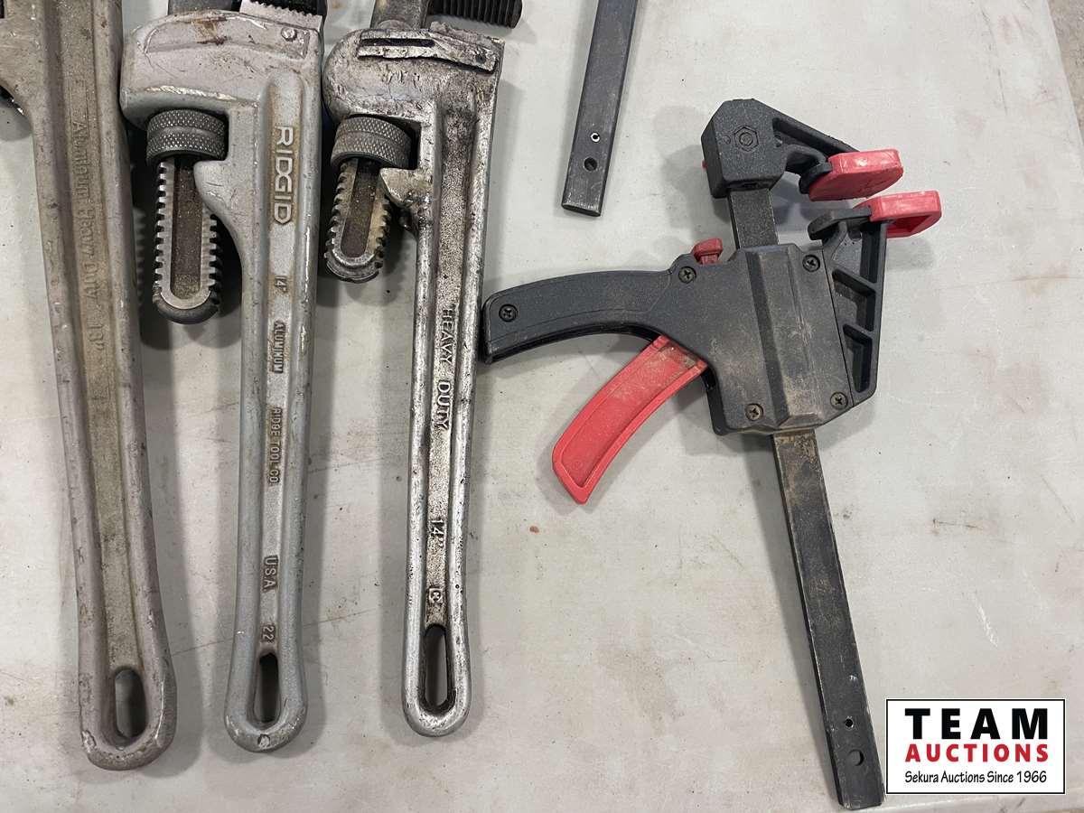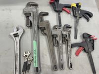 1114 Qty of Assorted Pipe Wrenches, Clamps and Wrenches