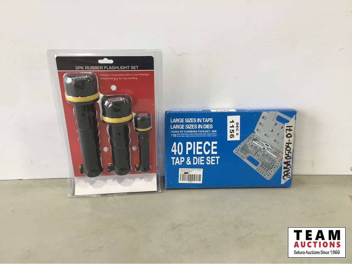 1601 Rubber Flashlight Kit and 40 Piece Tap & Die Set (Unused)