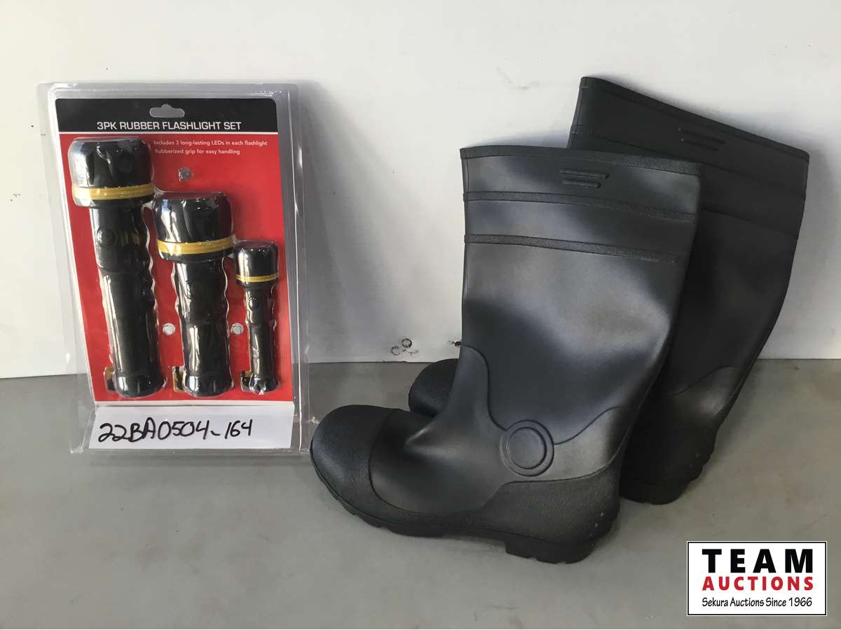 1562 Rubber Flashlight Set and Steel Toe Men's Size 10 Boots (Unused)