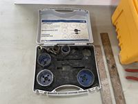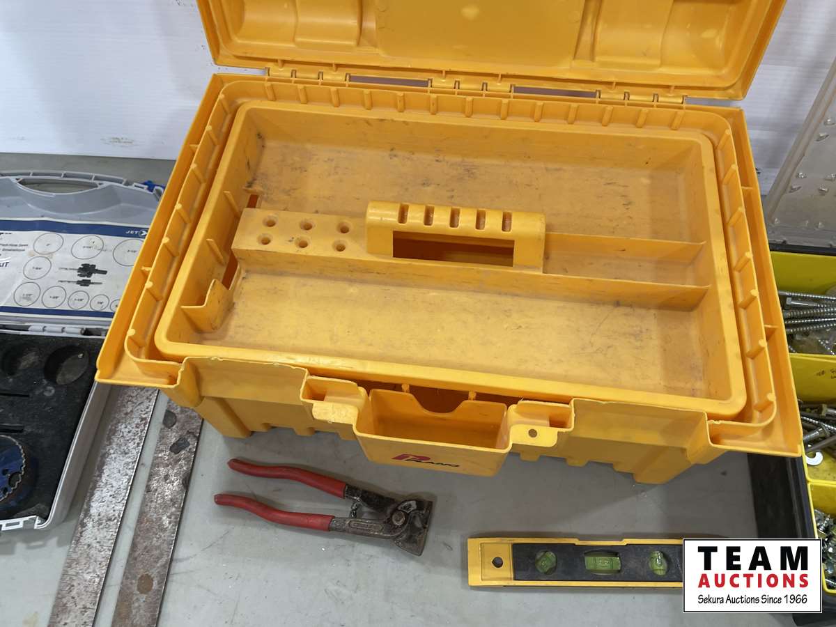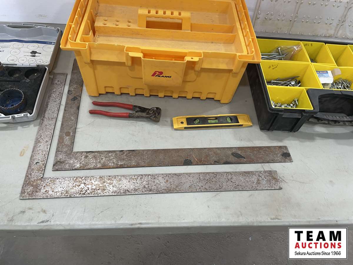 1144 Tool Box, Hole Saw Kit, Squares, Screw Assortment