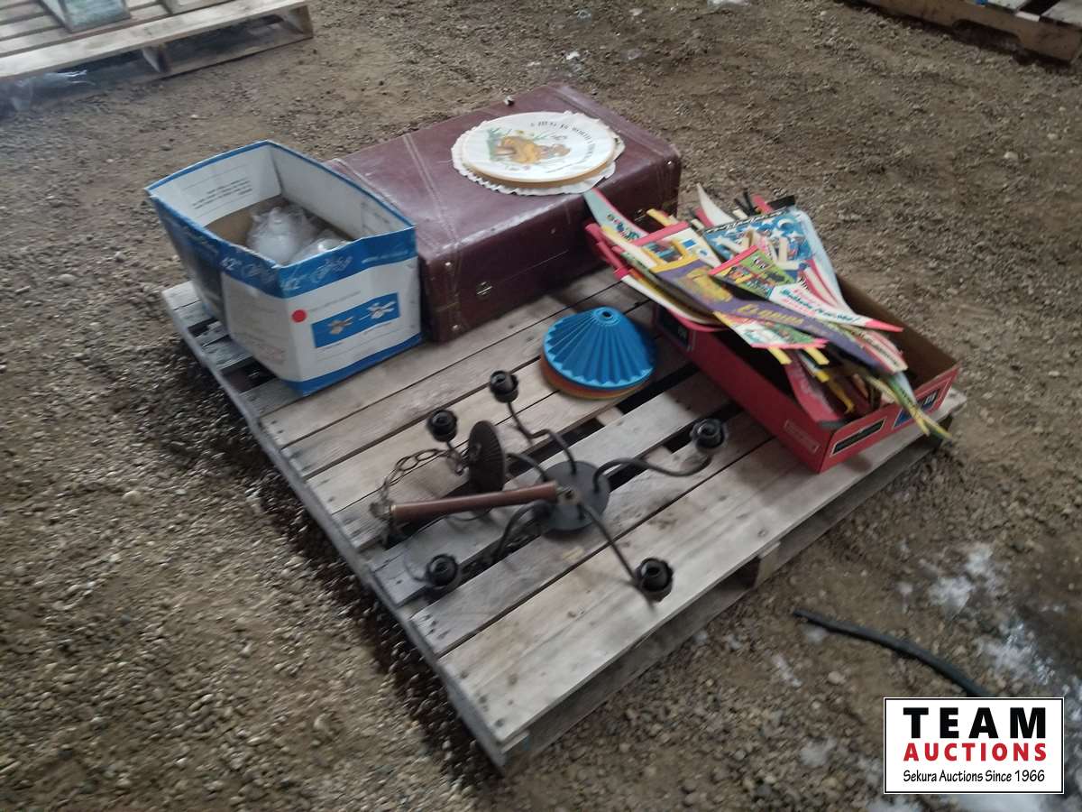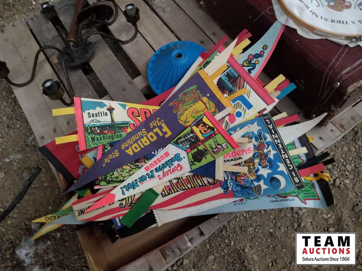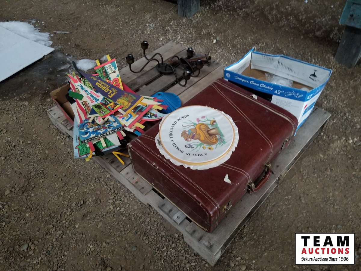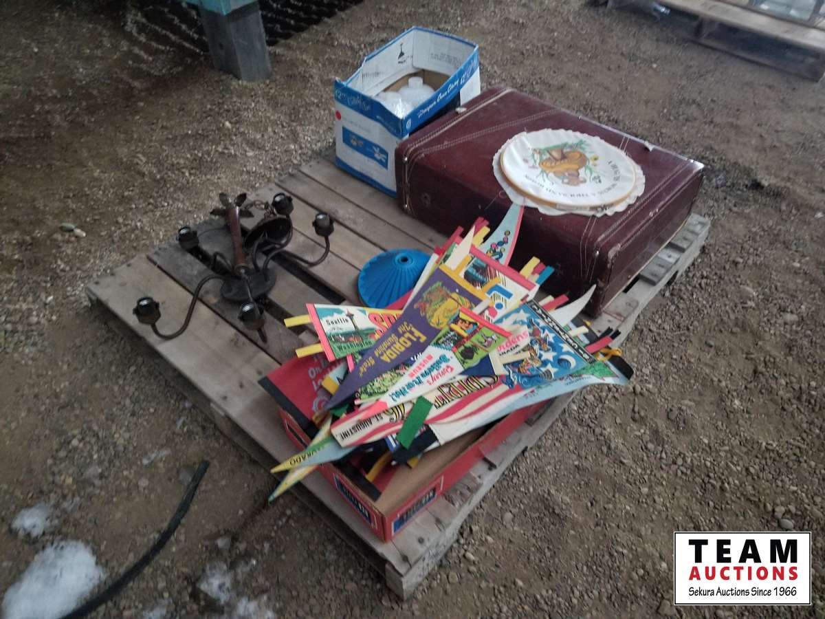 27 Antique Suitcase, Chandelier with Globes & Banners