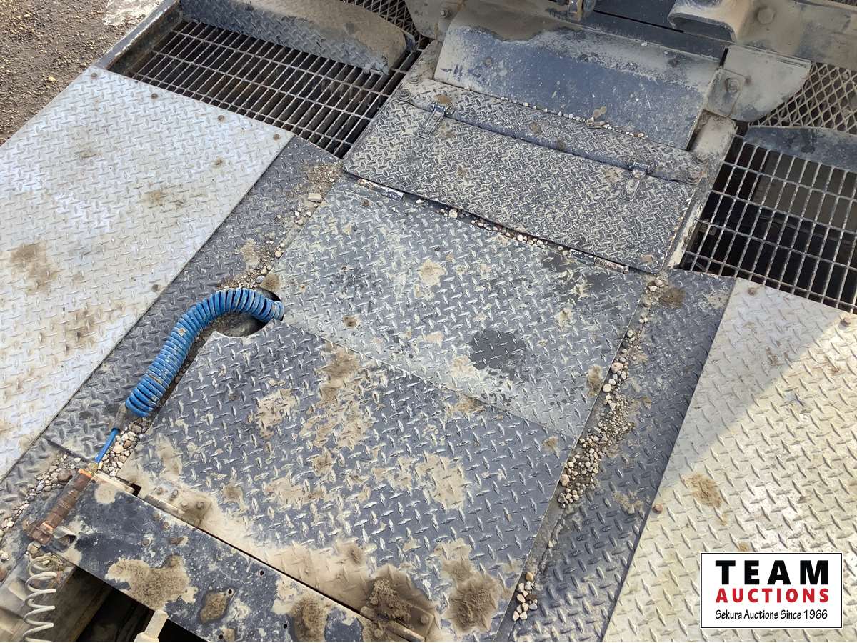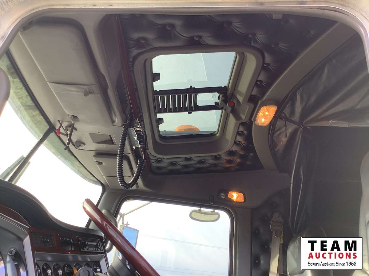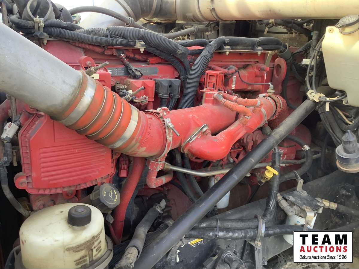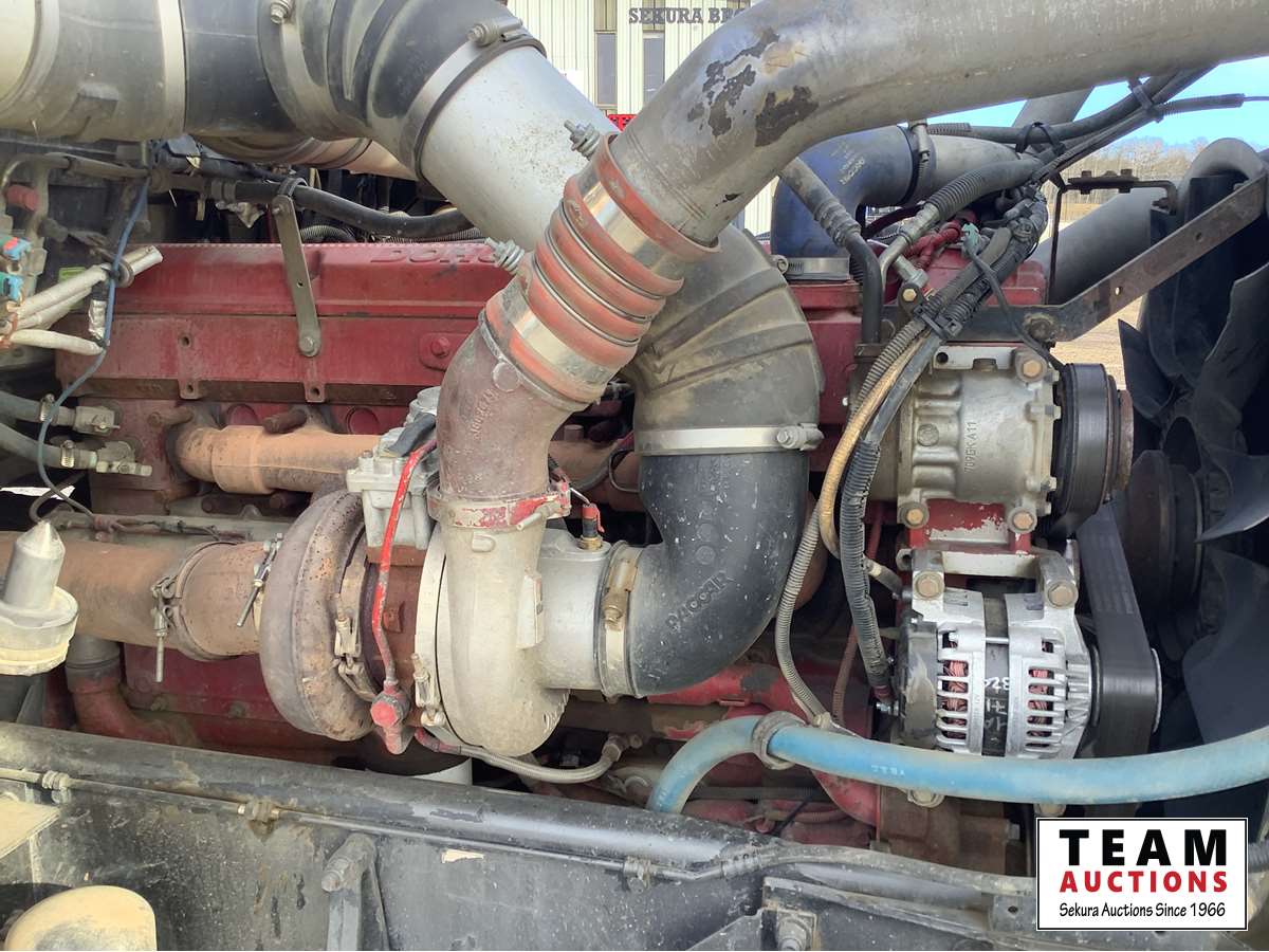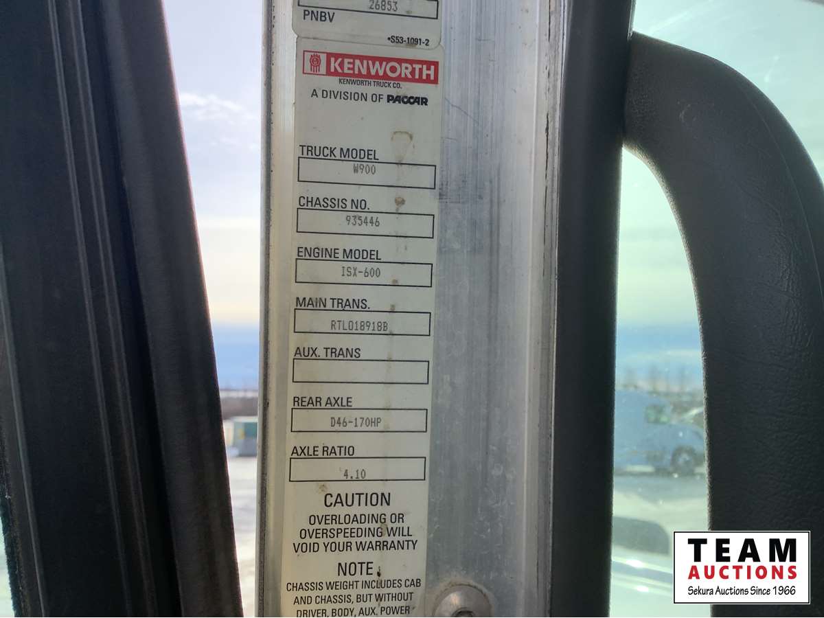 Cummins ISX 600 deleted engine, 18 speed Fuller 189B transmission, 13,200 lb front axle, 46,000 rears, full 4 way lockers, Neway air ride suspension, rebuilt air sliding 5th wheel, rear low bed ramps, live roll and rear tow hitch on back of frame, top cab mount beacon light, 268 inch wheel base, (2) side frame mounted tool boxes, tire chains, upgraded headlights, sun roof, Aero cab, sleeper and double fold up top bunk bed, rear window, Rufnek hydraulic drive winch with Ace head rack, full deck cover with storage lids, 11R24.5 tires on aluminum rims