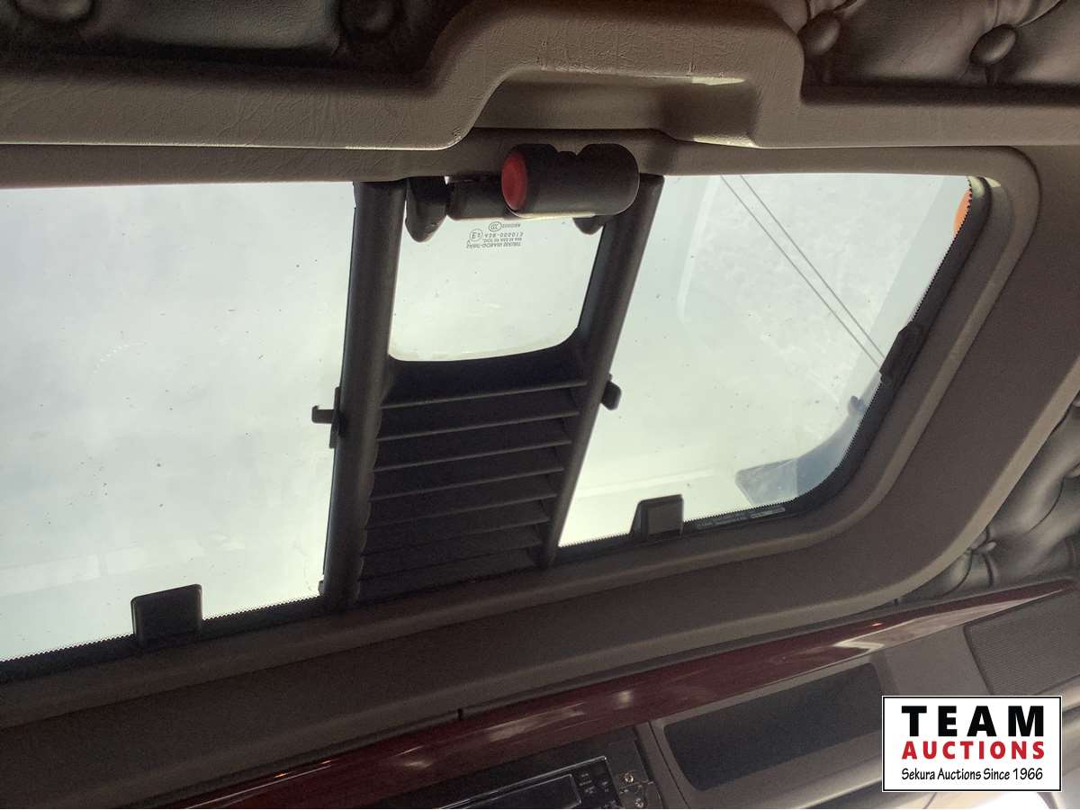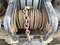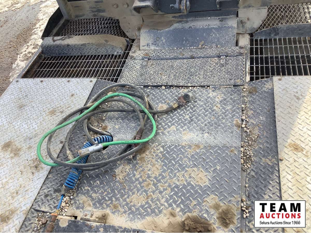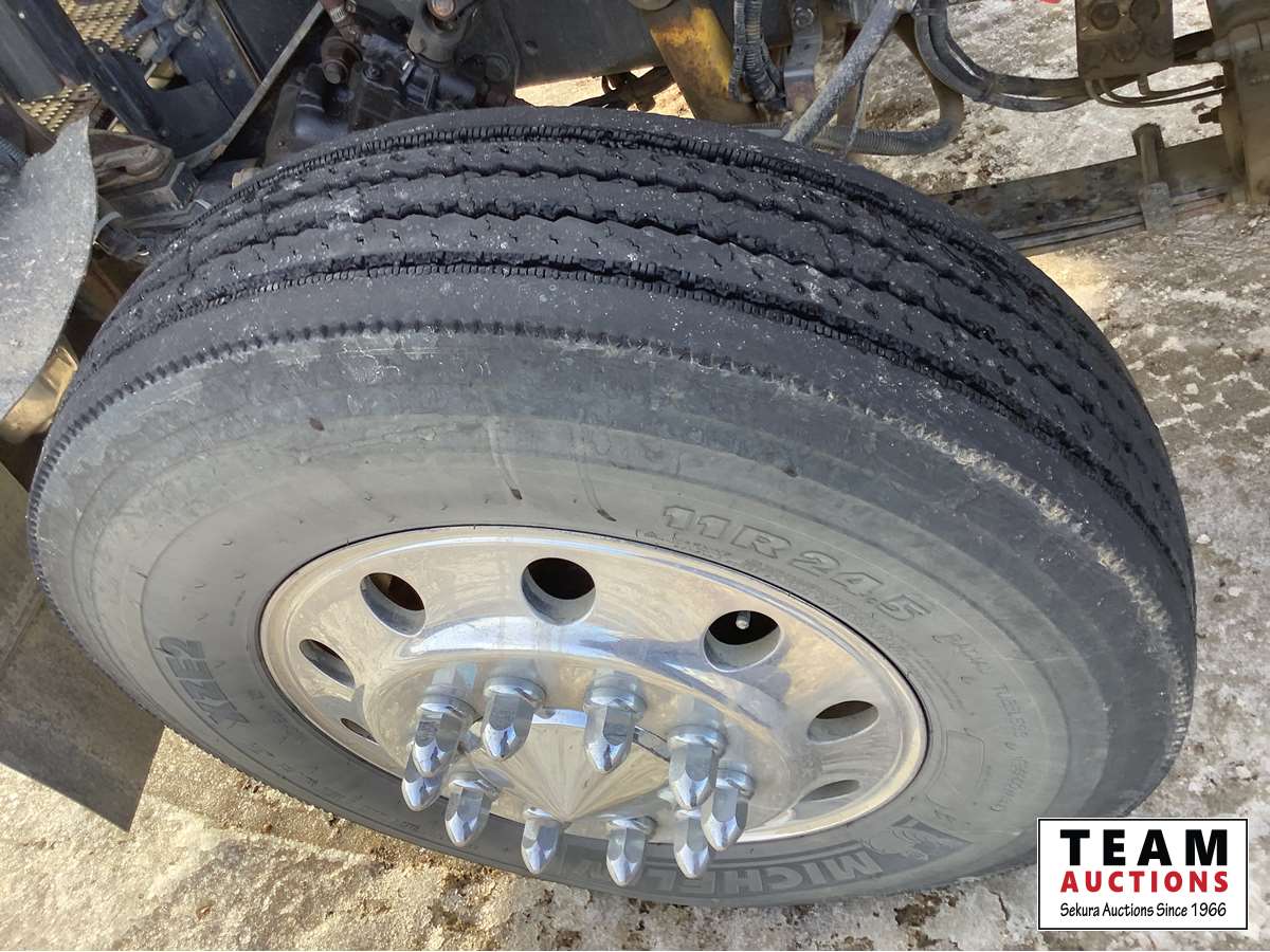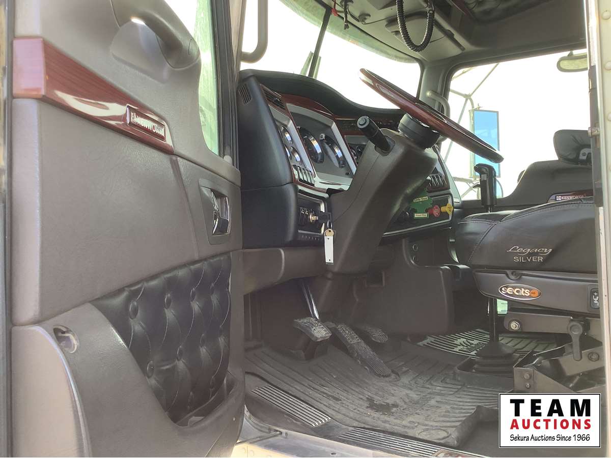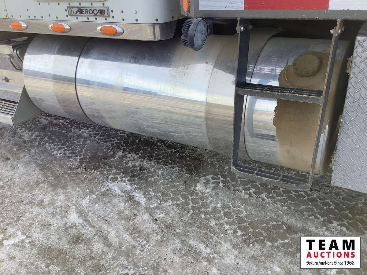 Cummins ISX 600 deleted engine, 18 speed Fuller 189B transmission, 13,200 lb front axle, 46,000 rears, full 4 way lockers, Neway air ride suspension, rebuilt air sliding 5th wheel, rear low bed ramps, live roll and rear tow hitch on back of frame, top cab mount beacon light, 268 inch wheel base, (2) side frame mounted tool boxes, tire chains, upgraded headlights, sun roof, Aero cab, sleeper and double fold up top bunk bed, rear window, Rufnek hydraulic drive winch with Ace head rack, full deck cover with storage lids, 11R24.5 tires on aluminum rims