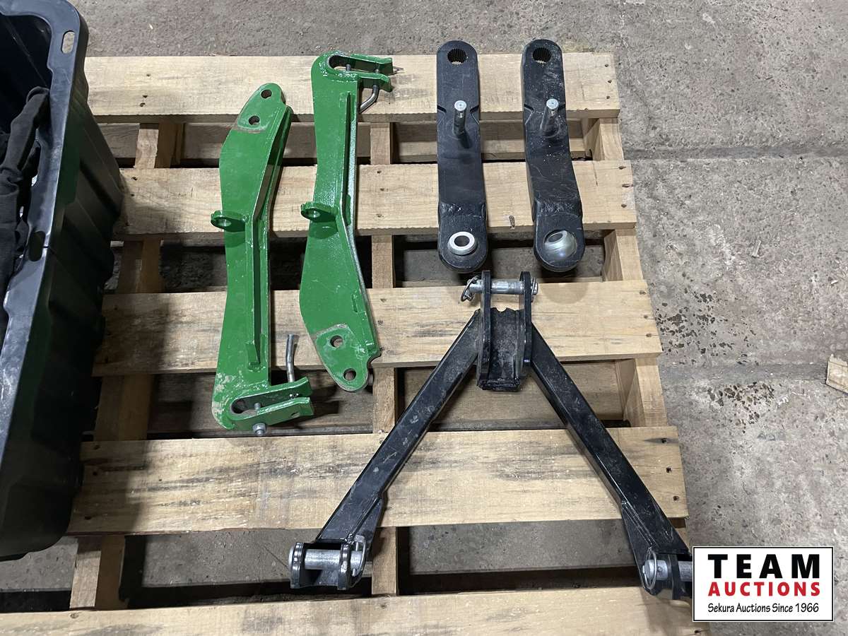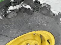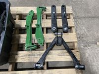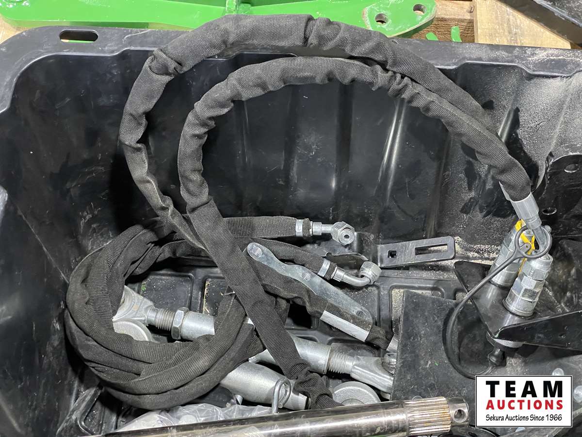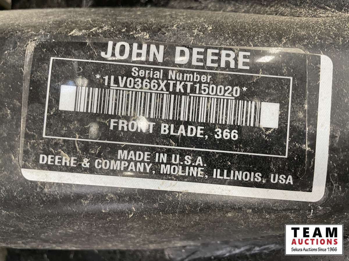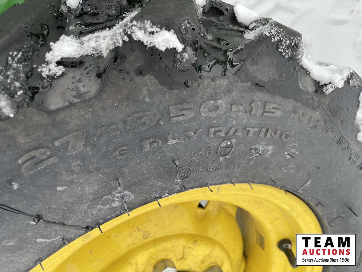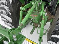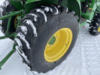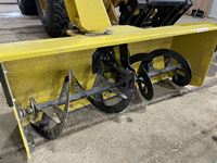 John Deere 320R Loader, 6 ft Q/A bucket, joystick, John Deere 59 inch front mount snow blower, John Deere 366 66 inch front mount blade, Yanmar 1.6 L 3 cylinder diesel engine, power steering, 3 speed hydrostatic transmission, two-post foldable ROPS, 540 PTO, 3 PT with I Match Q/A connector, 7.00-14 front, 11.2-24 rear tires