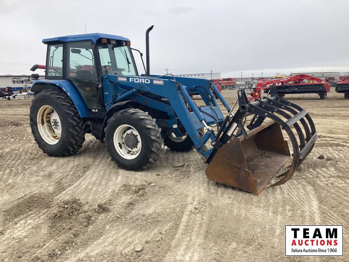 100 HP engine, 86 HP PTO, Ford 7411 loader w/ grapple bucket, 16 speed ElectroShift, differential lock, 540/1000 PTO, 3 PT hitch, 2 hydraulic outets, 14.9-24 front, 18.4R34 rear