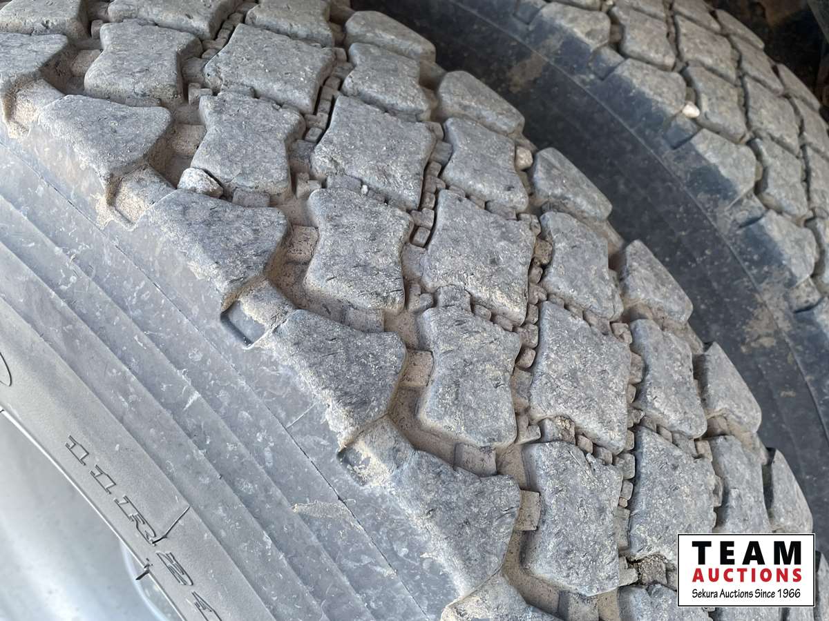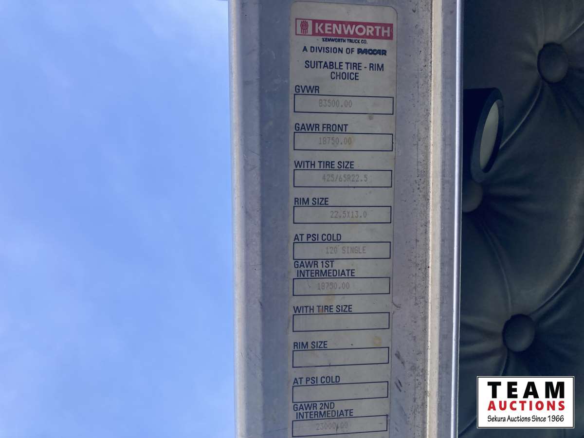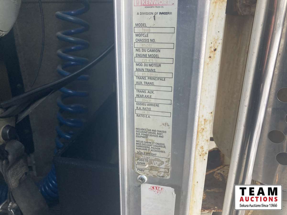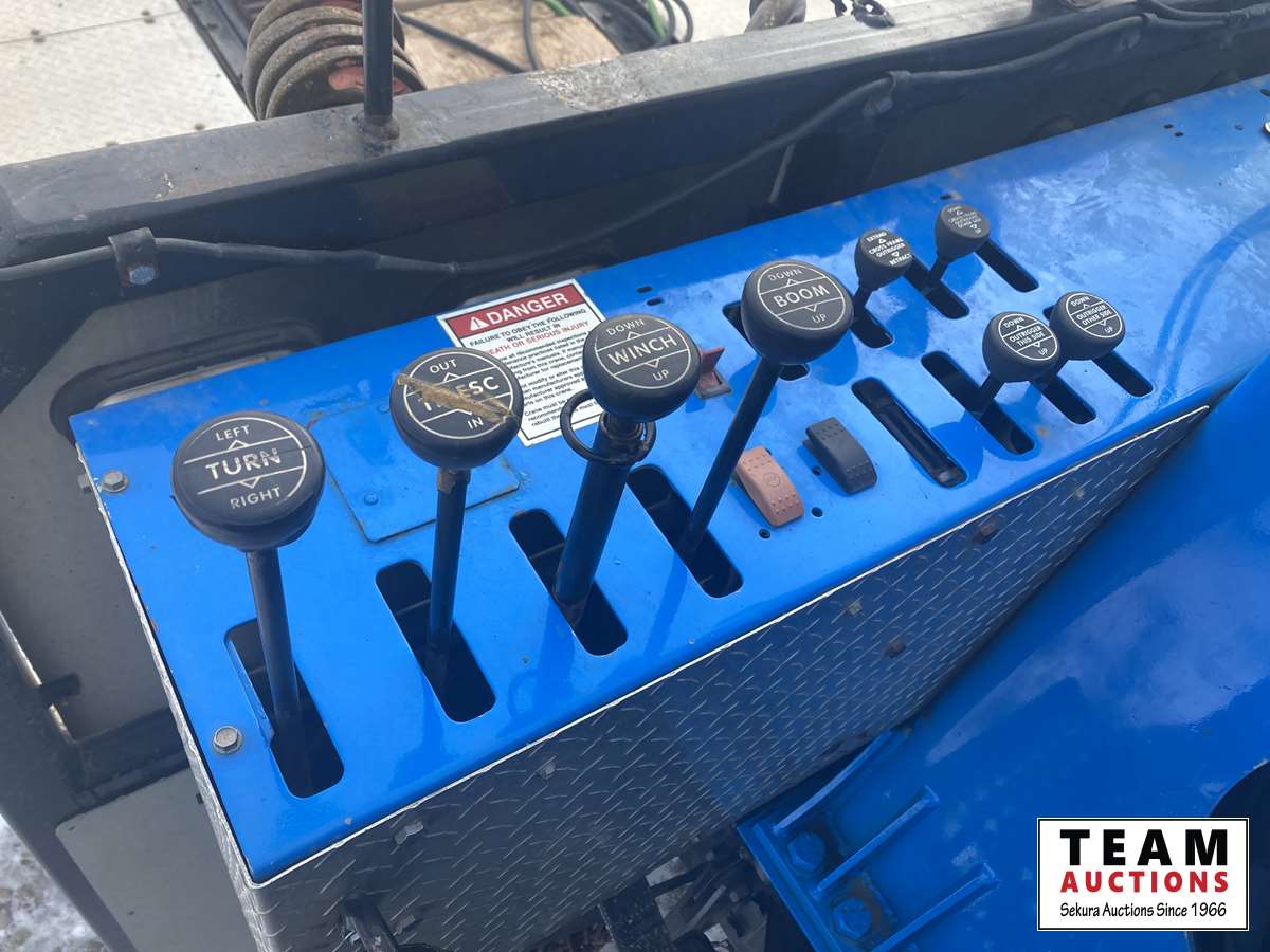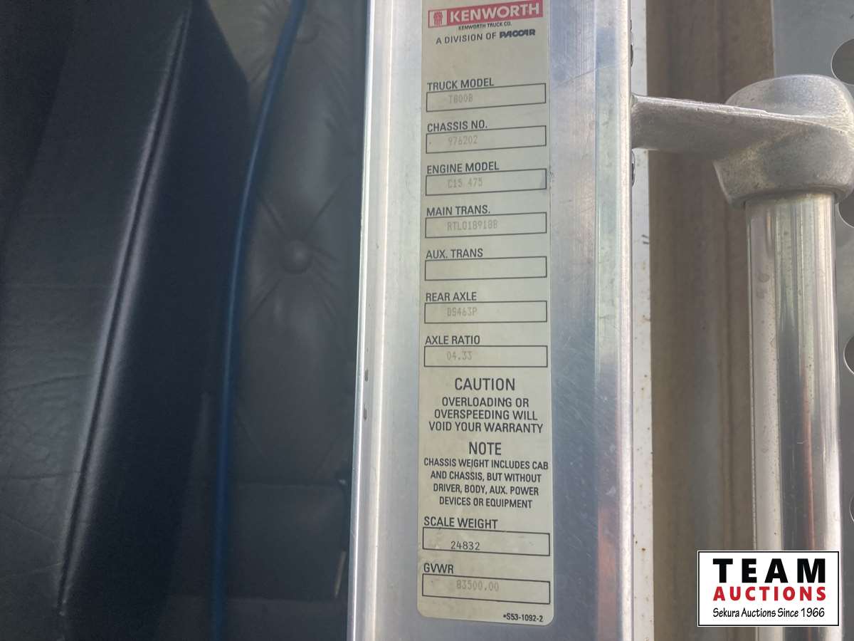 Caterpillar C15, 6 cylinder, diesel, 475 HP, Eaton Fuller 18 speed, engine brake, double differential lock, cross lock, 337 inch WB, 40 inch sleeper, 105 ft center mounted boom, Johnson 1 sheave block, 22 ton capacity, dual controls, hydraulic outriggers, 32,000 lb front, 46,000 lb rear, 425/65R22.5 front, 11R24.5 rear, 6533 PTO hrs, crane certification 01/2022