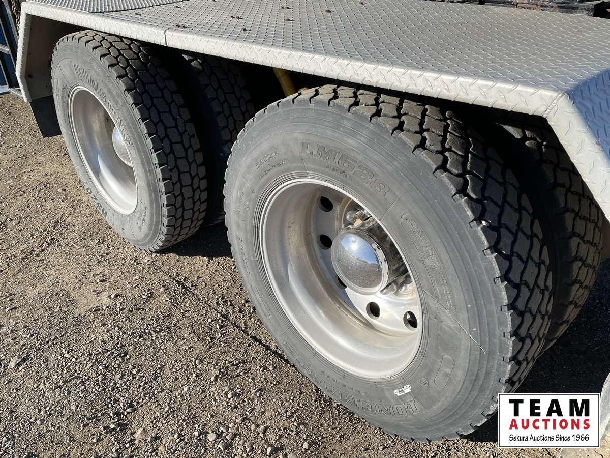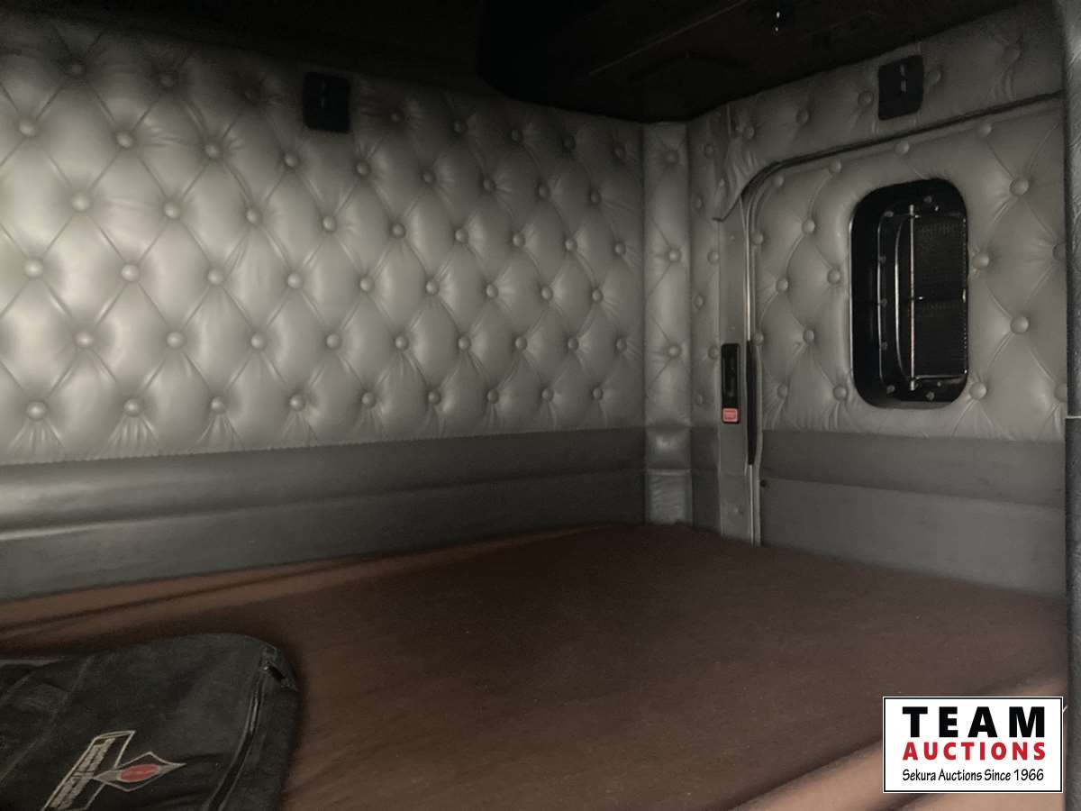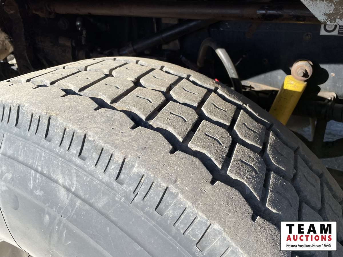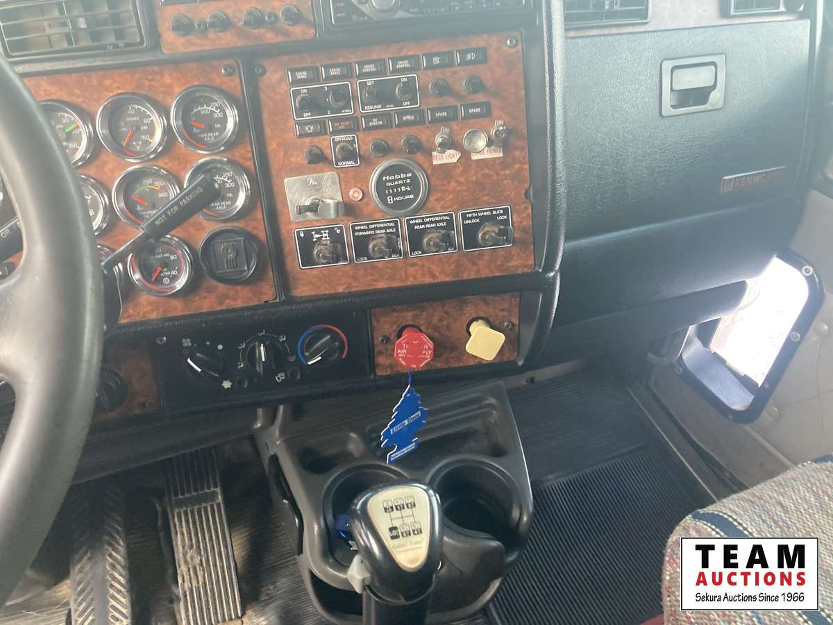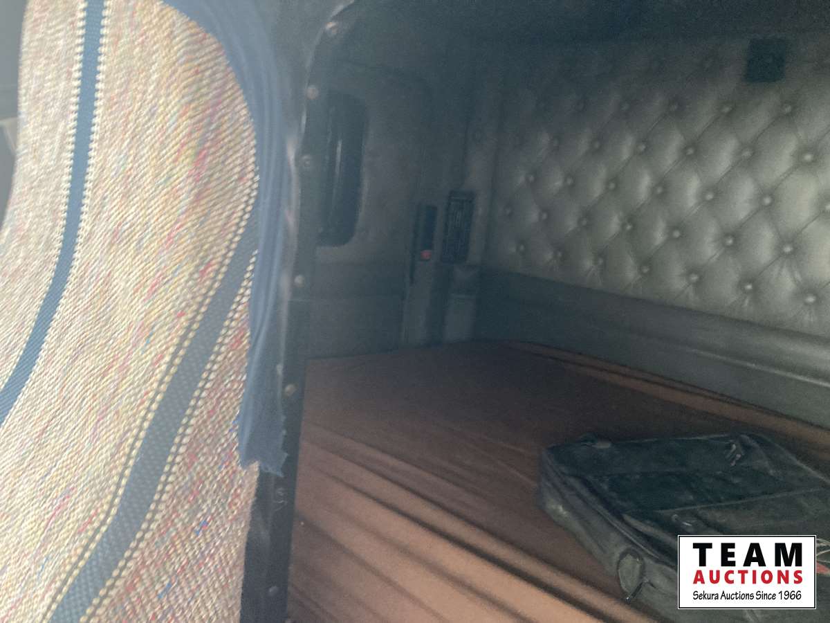 Caterpillar C15, 6 cylinder, diesel, 475 HP, Eaton Fuller 18 speed, engine brake, double differential lock, cross lock, 337 inch WB, 40 inch sleeper, 105 ft center mounted boom, Johnson 1 sheave block, 22 ton capacity, dual controls, hydraulic outriggers, 32,000 lb front, 46,000 lb rear, 425/65R22.5 front, 11R24.5 rear, 6533 PTO hrs, crane certification 01/2022