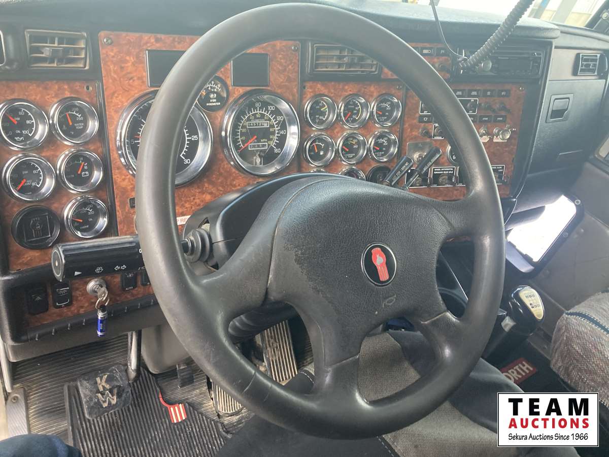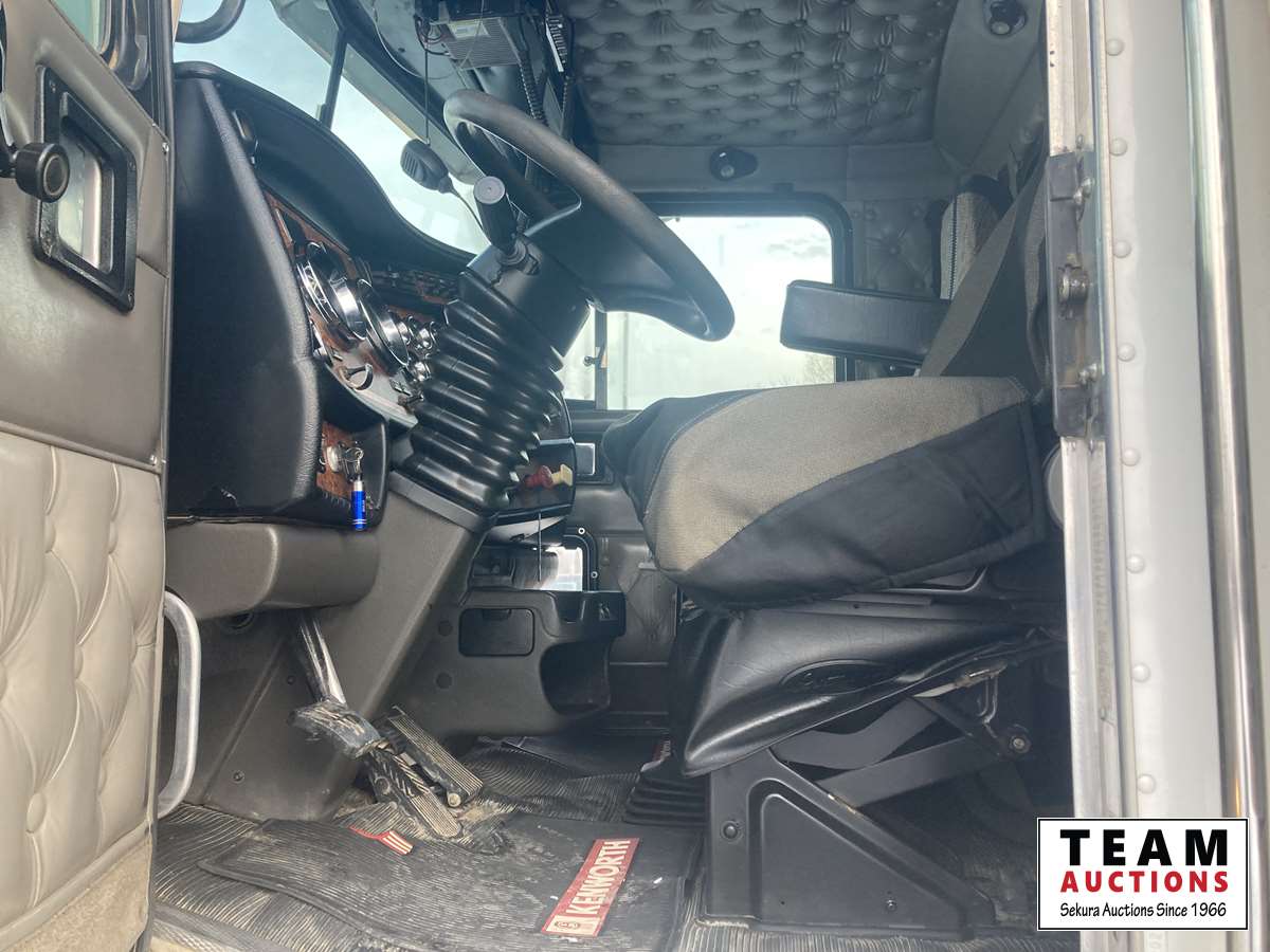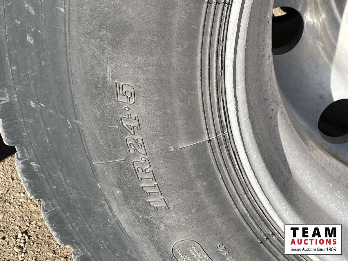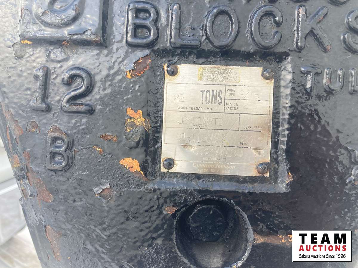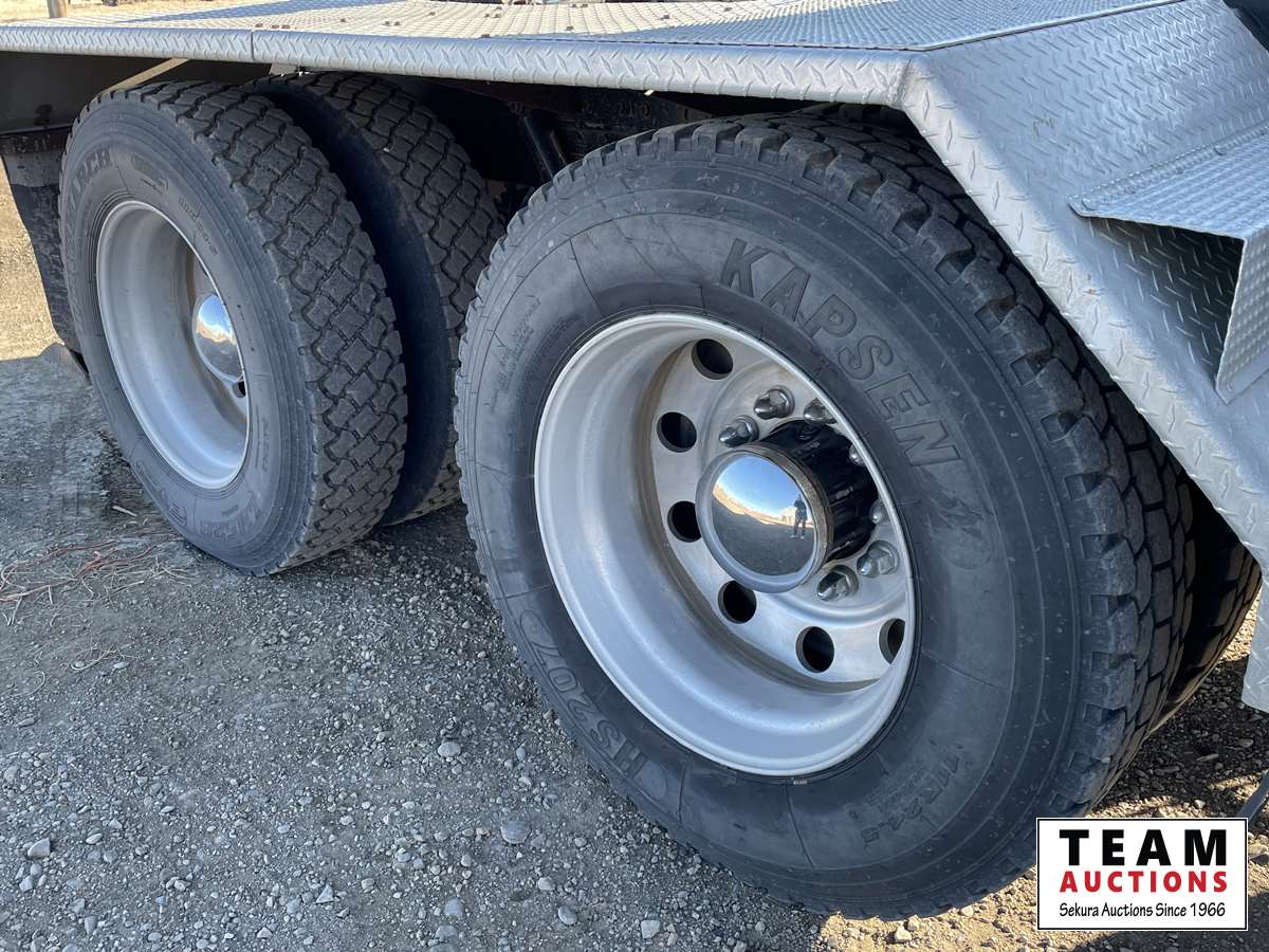 Caterpillar C15, 6 cylinder, diesel, 475 HP, Eaton Fuller 18 speed, engine brake, double differential lock, cross lock, 337 inch WB, 40 inch sleeper, 105 ft center mounted boom, Johnson 1 sheave block, 22 ton capacity, dual controls, hydraulic outriggers, 32,000 lb front, 46,000 lb rear, 425/65R22.5 front, 11R24.5 rear, 6533 PTO hrs, crane certification 01/2022