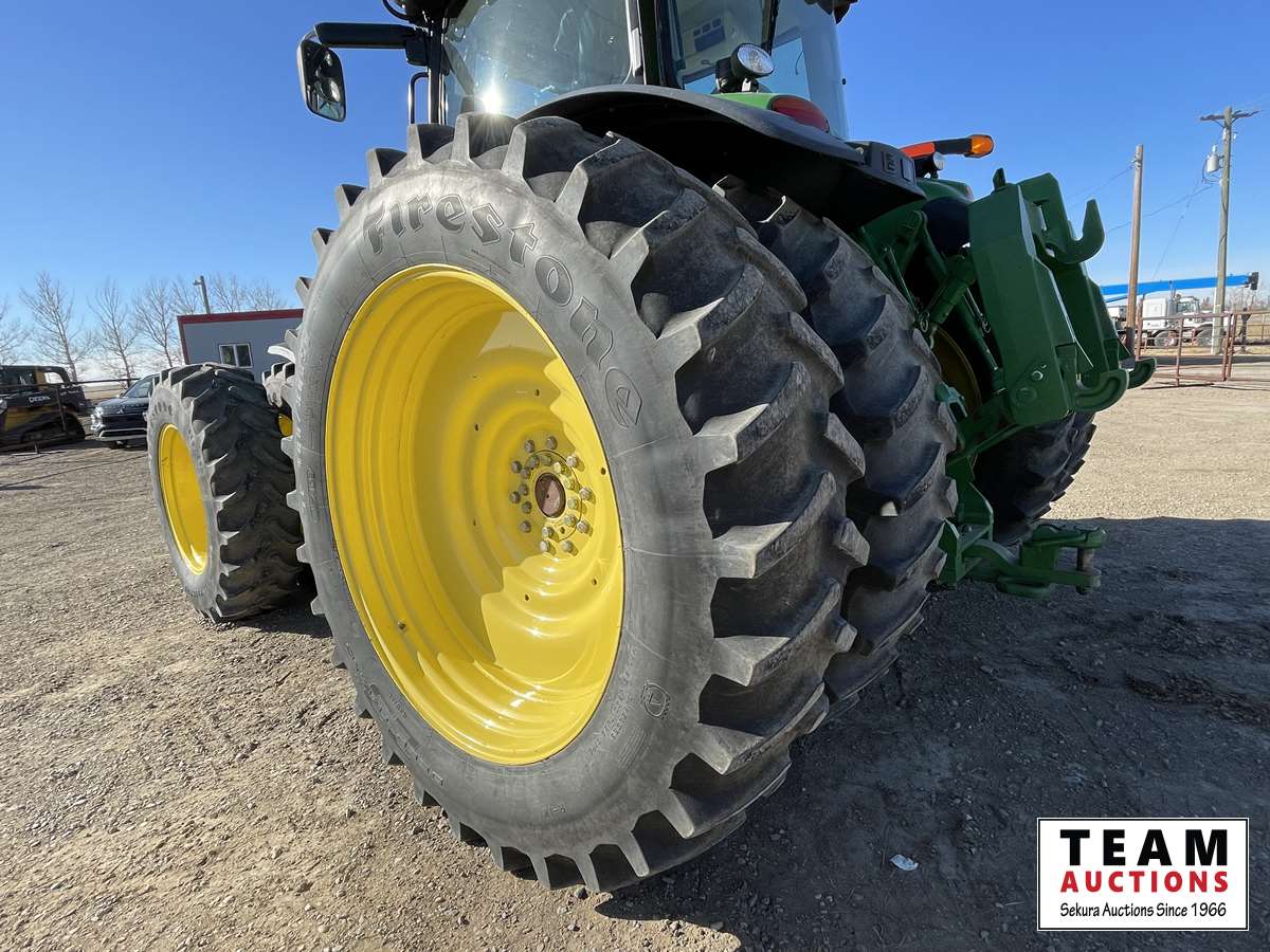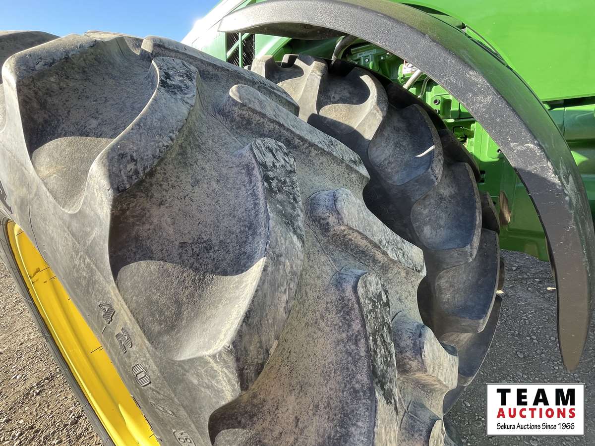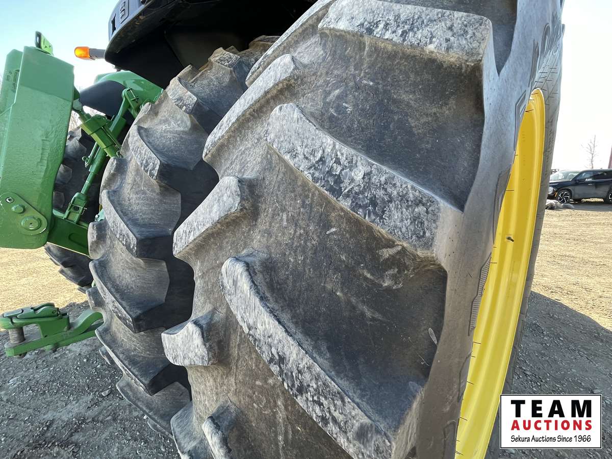 310 engine HP, 261 PTO HP, 50K, IVT transmission, left hand reverser, GreenStar 3 display, leather, autosteer, differential lock, 4 hydraulic outlets, aux hydraulic, Q/C 3 PT hitch, rear 3 PT controls, Big 1000 PTO, air brakes, 22 front weights, rear wheel weights, 420/85R34 front duals, 480/80R50 rear duals