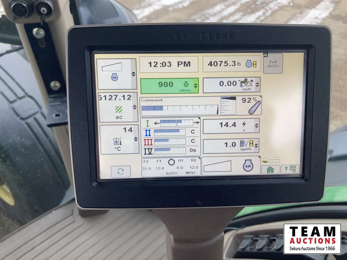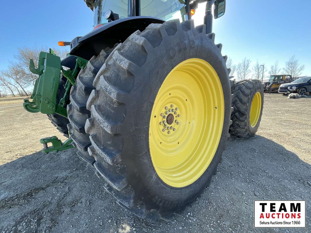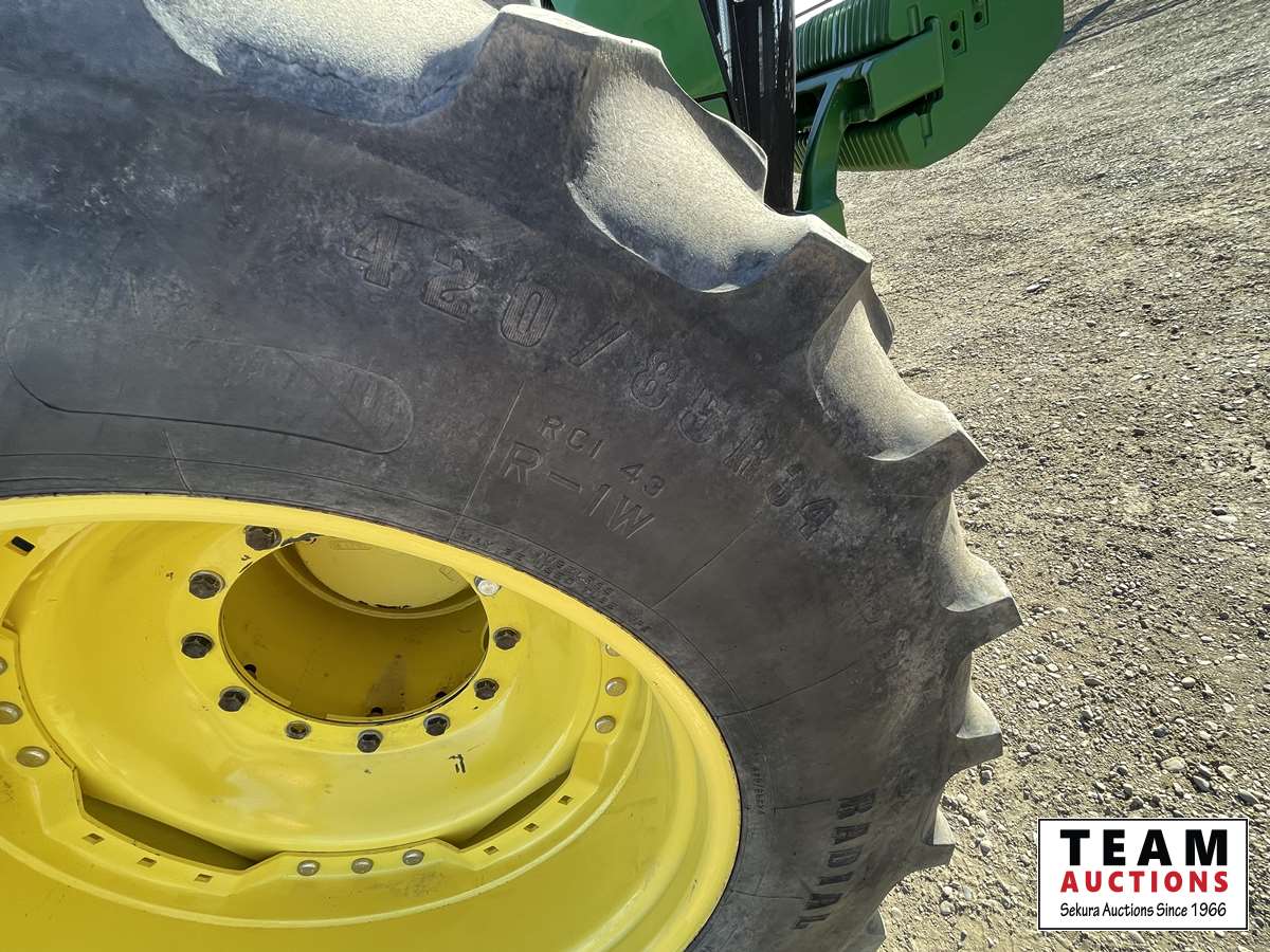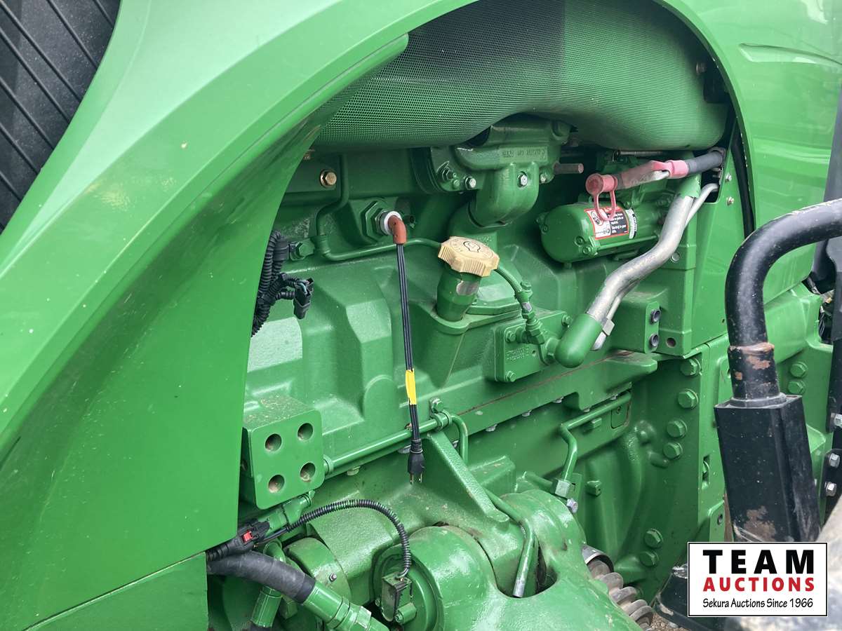 310 engine HP, 261 PTO HP, 50K, IVT transmission, left hand reverser, GreenStar 3 display, leather, autosteer, differential lock, 4 hydraulic outlets, aux hydraulic, Q/C 3 PT hitch, rear 3 PT controls, Big 1000 PTO, air brakes, 22 front weights, rear wheel weights, 420/85R34 front duals, 480/80R50 rear duals