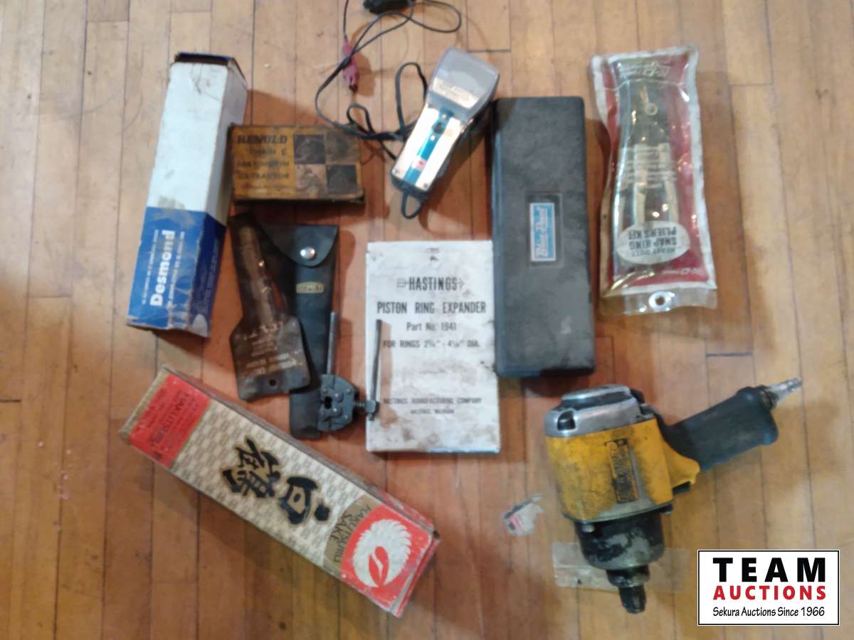 air impact, snap ring pliers, tachometer, piston ring expander, etc.