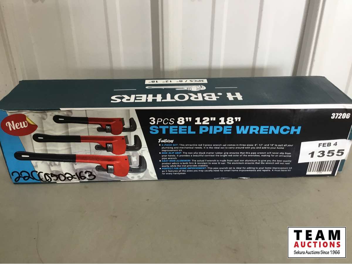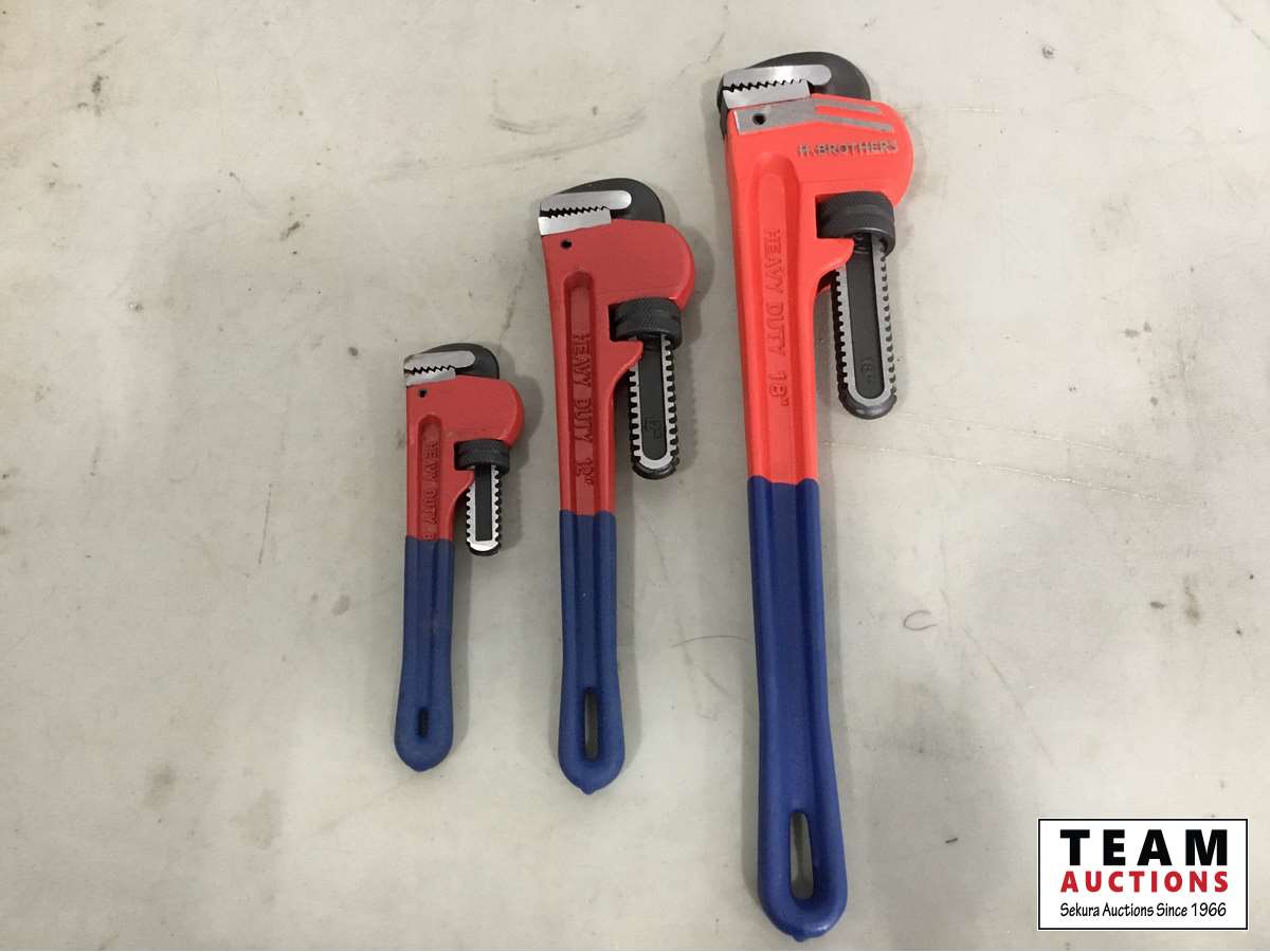 1207 3 Piece Steel Pipe Wrench Set (Unused)