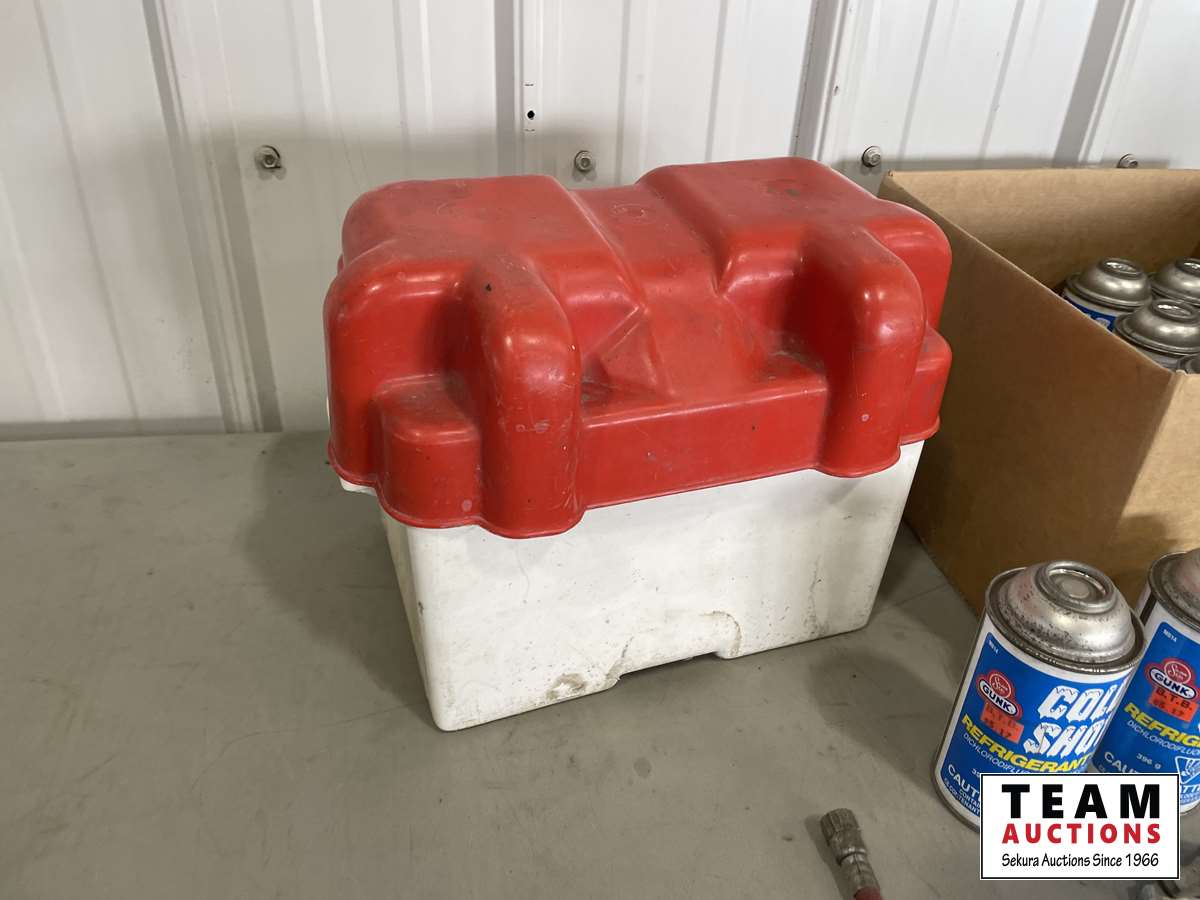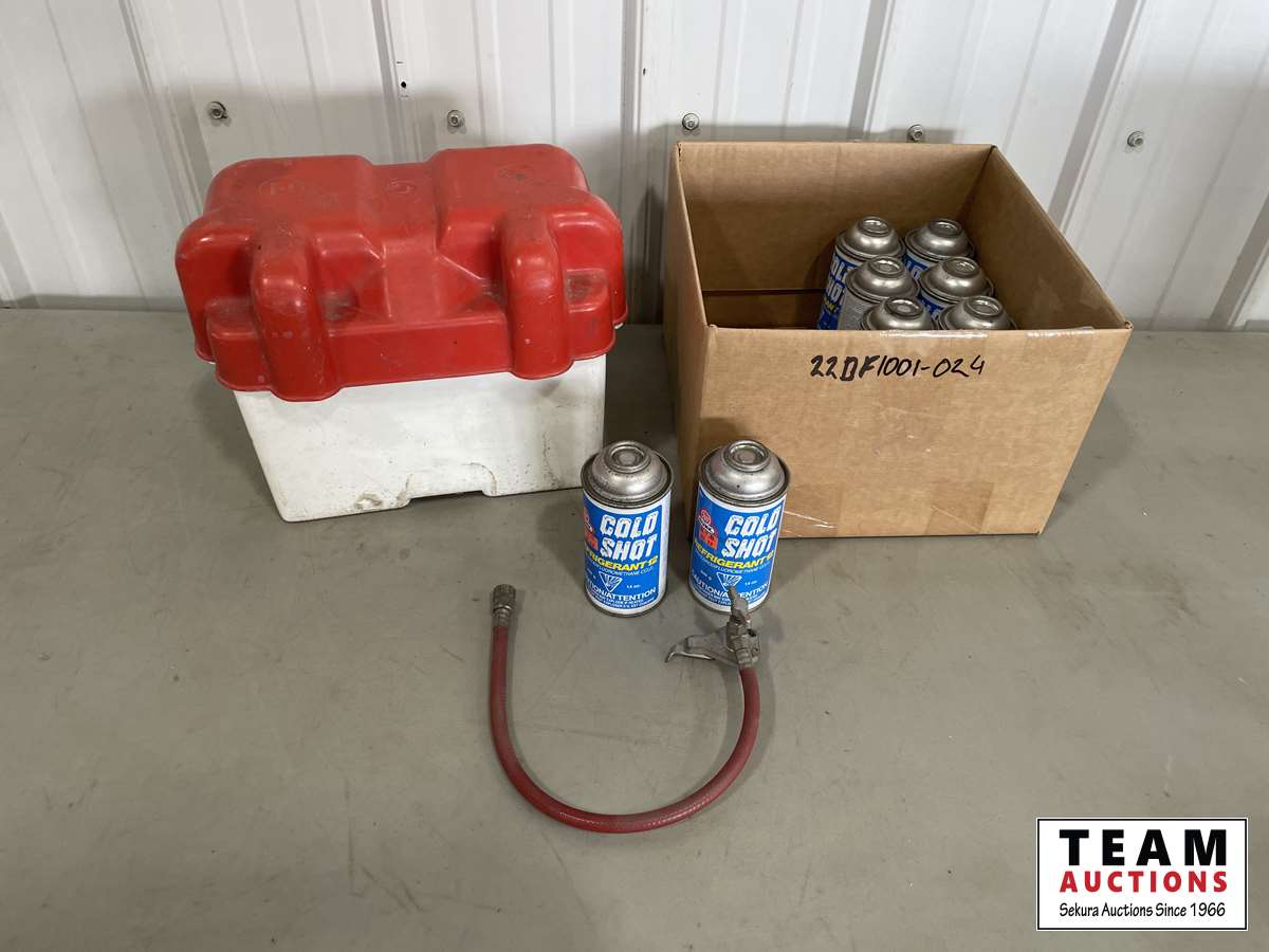 1168 (10) Cans of Cold Shot Refrigerant & Plastic Battery Box