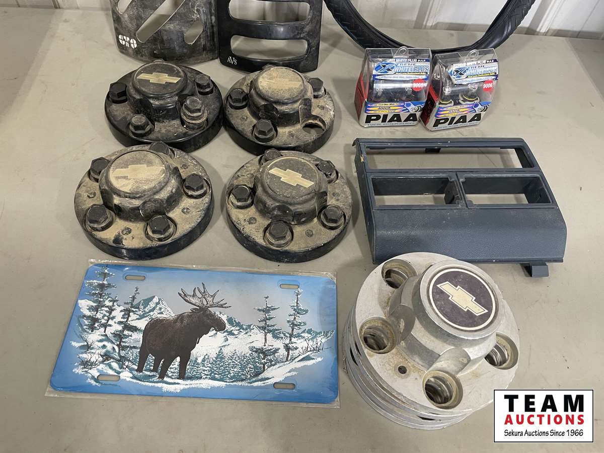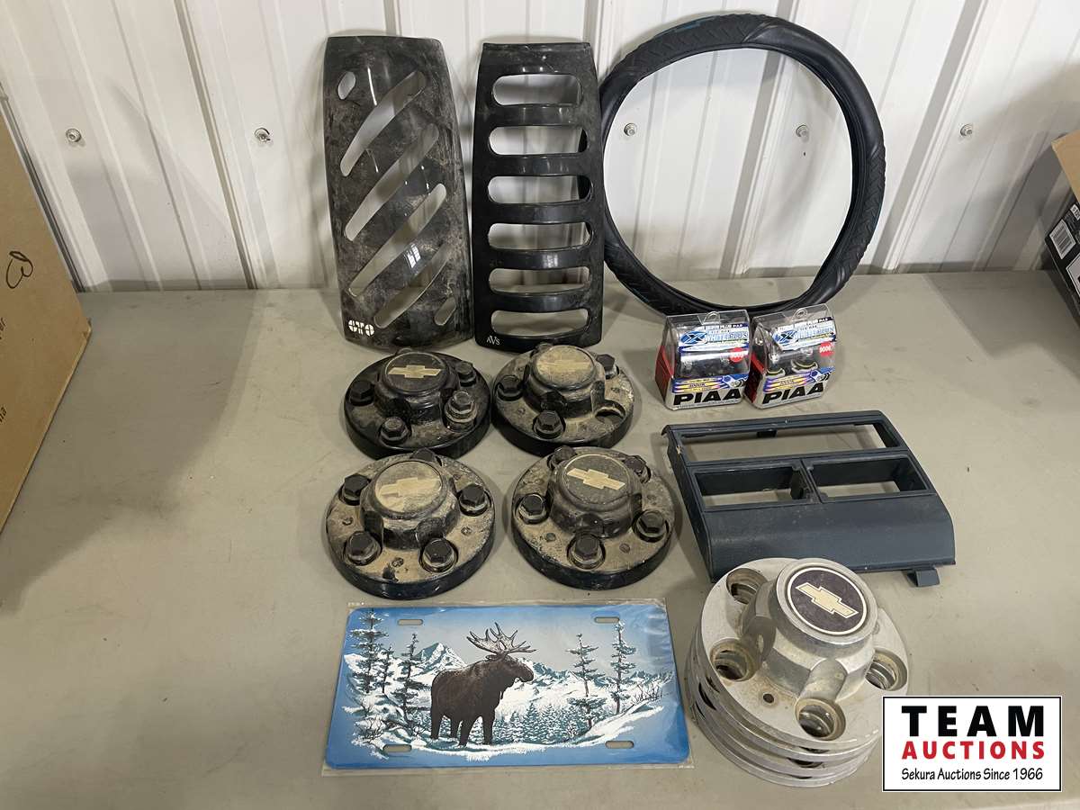 Tail light covers, steering wheel cover, (2) sets of hub caps, (2) headlights sets, cover