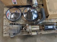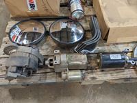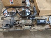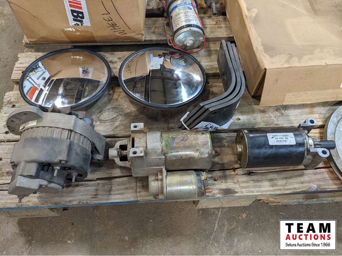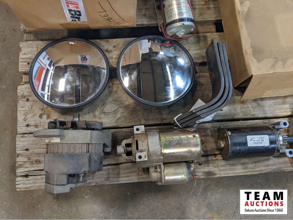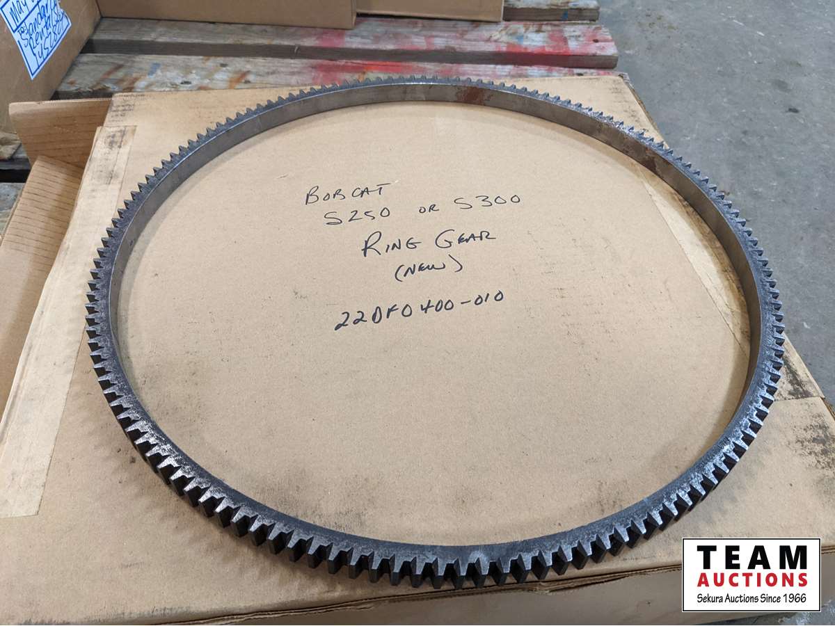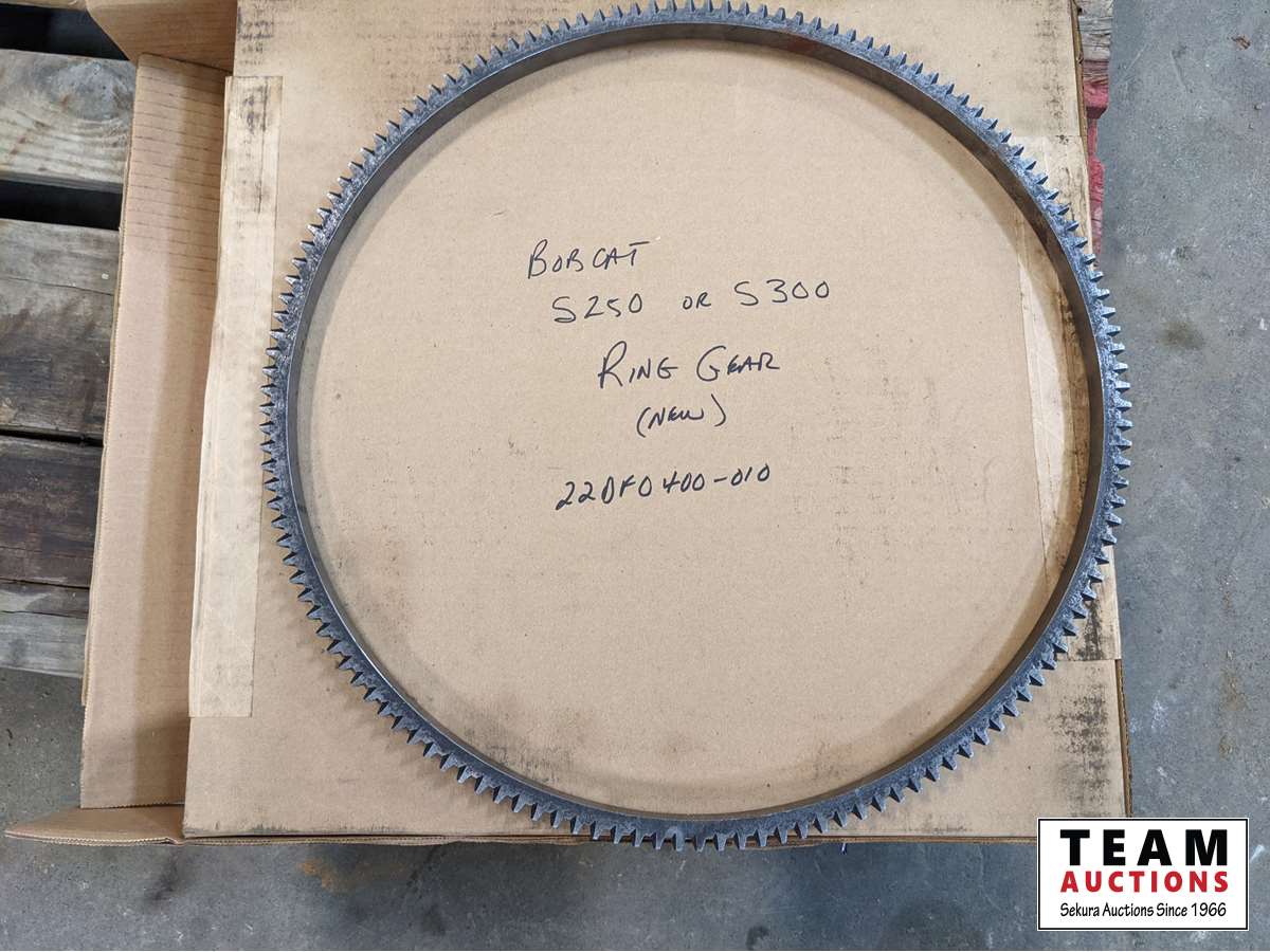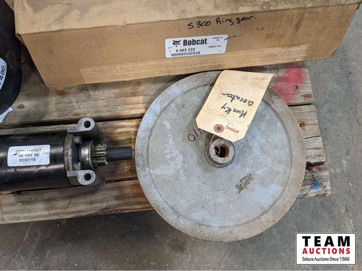(1) new Bobcat S300 or S250 ring gear, (2) starters, (10 alternator, (2) mirrors, 12V weed sprayer pump, pulley, tiller tines