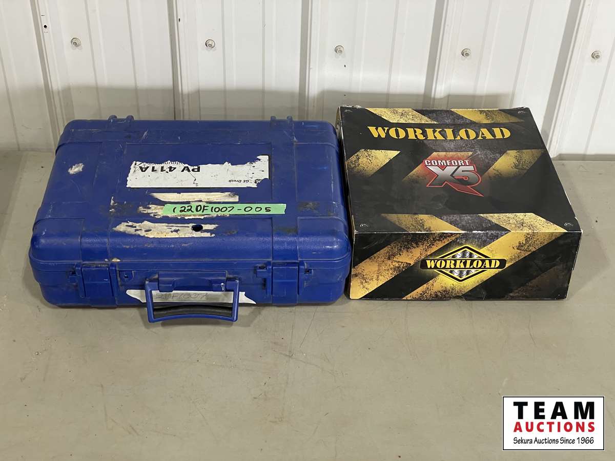1128 Empty Hard Case & Pair of Size 9 Work Boots