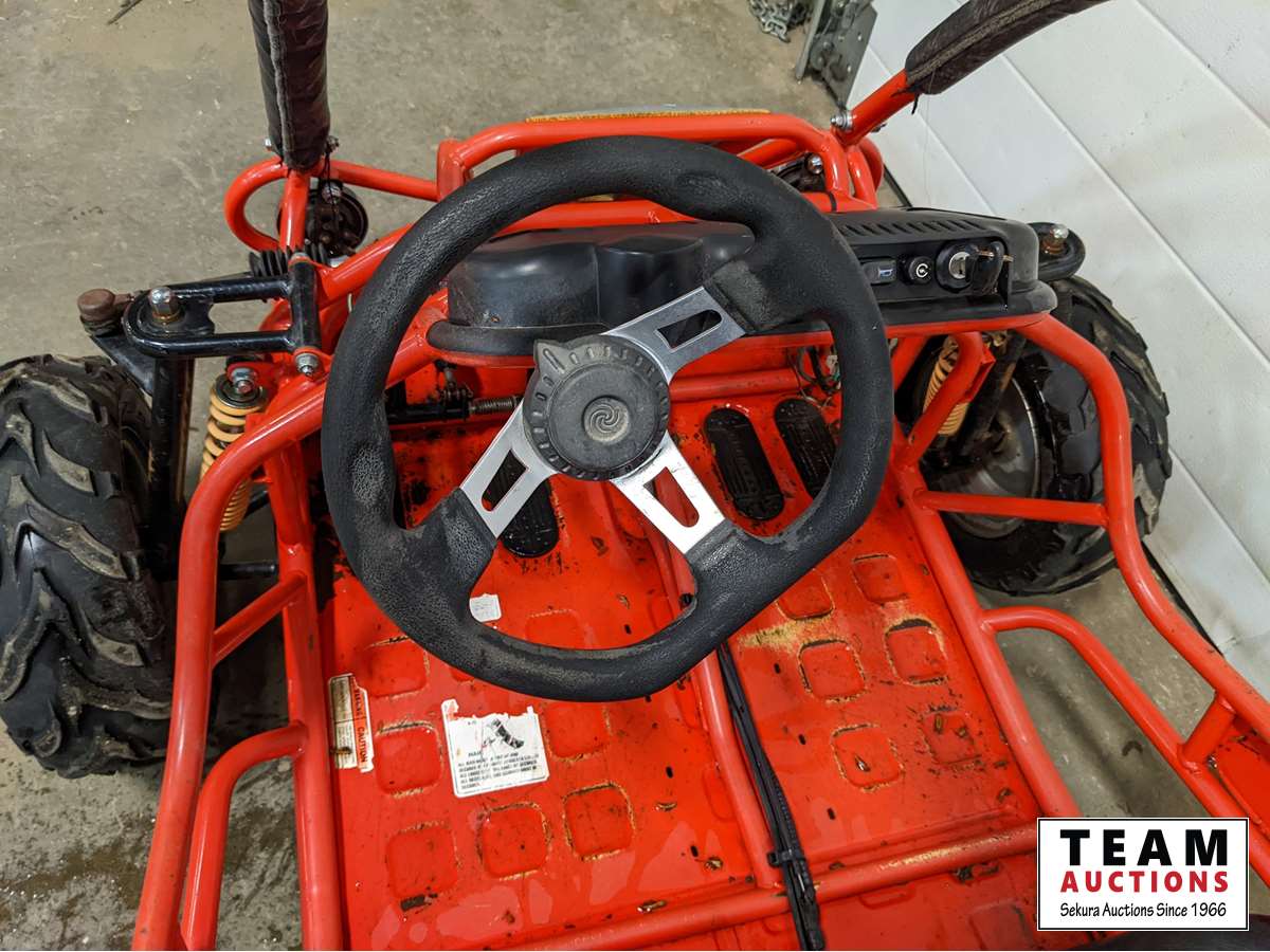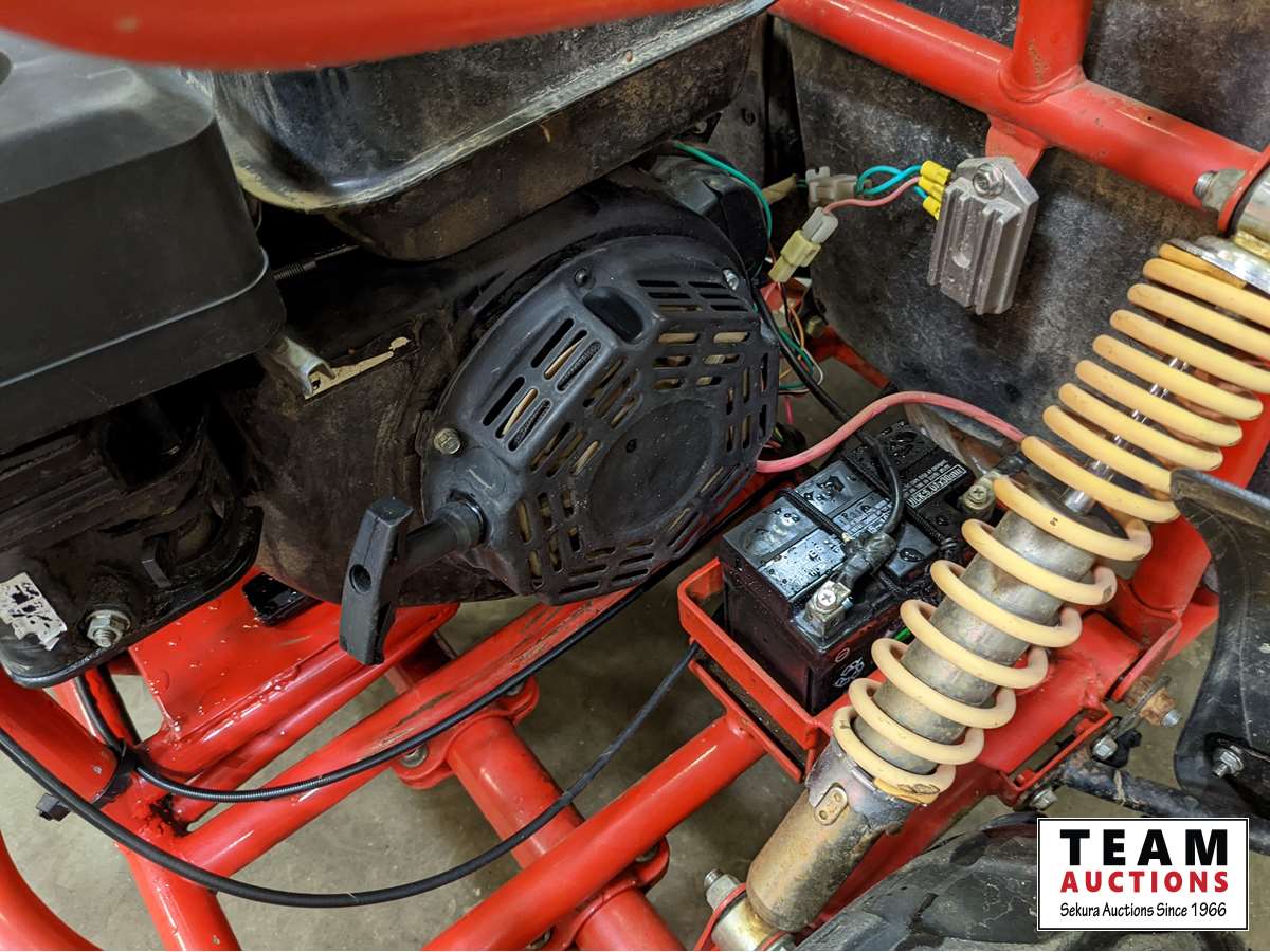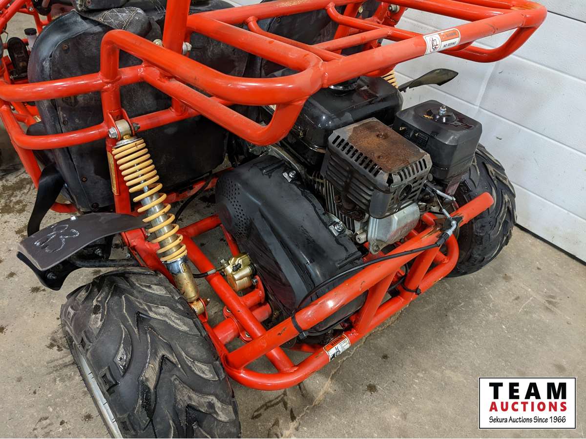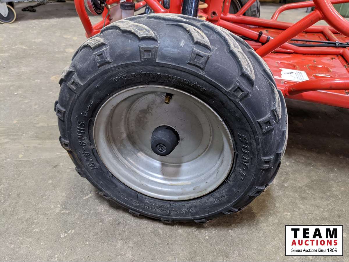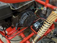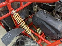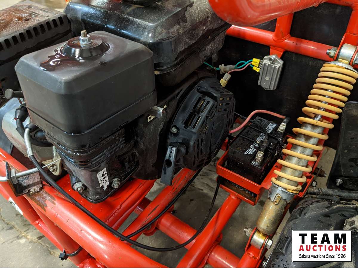 Electric start gas engine, variable speed transmission, spring and shock suspension, hydraulic disc brake