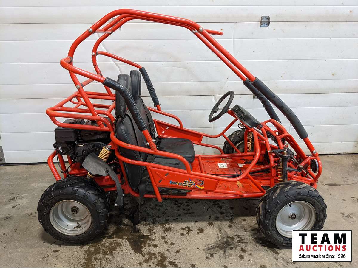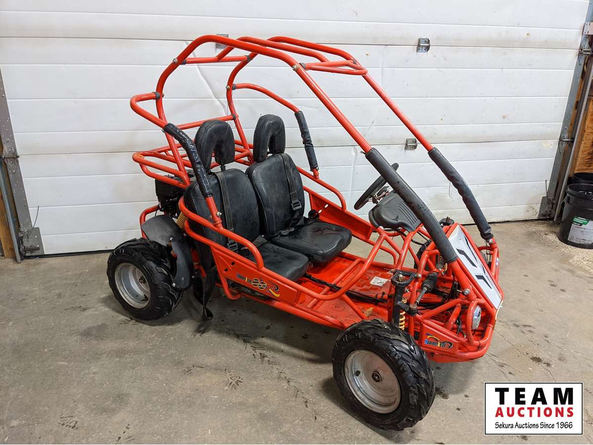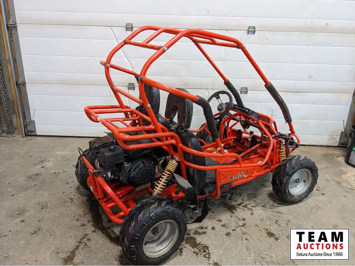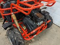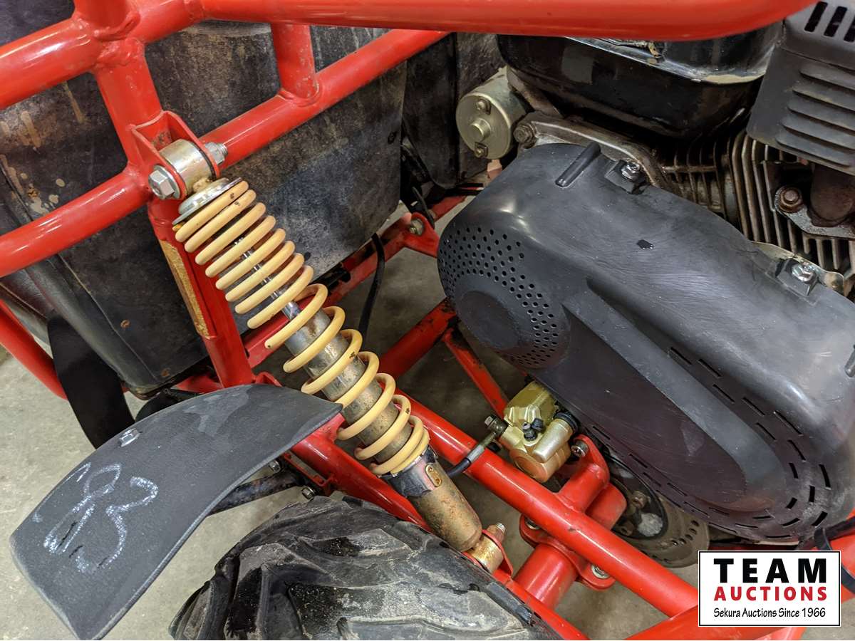 Electric start gas engine, variable speed transmission, spring and shock suspension, hydraulic disc brake