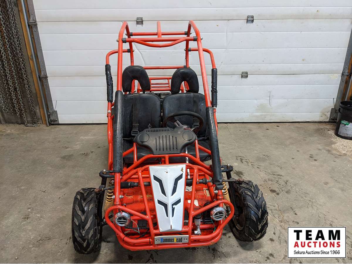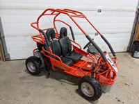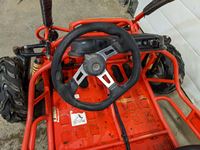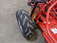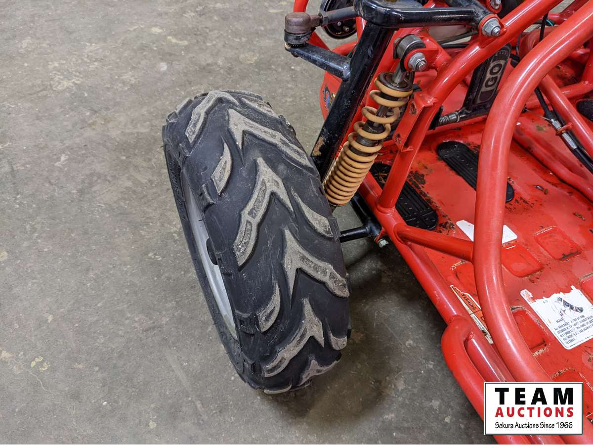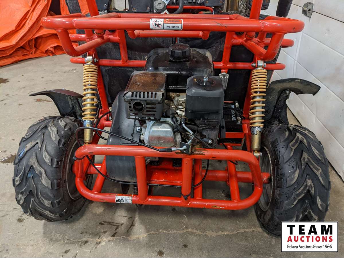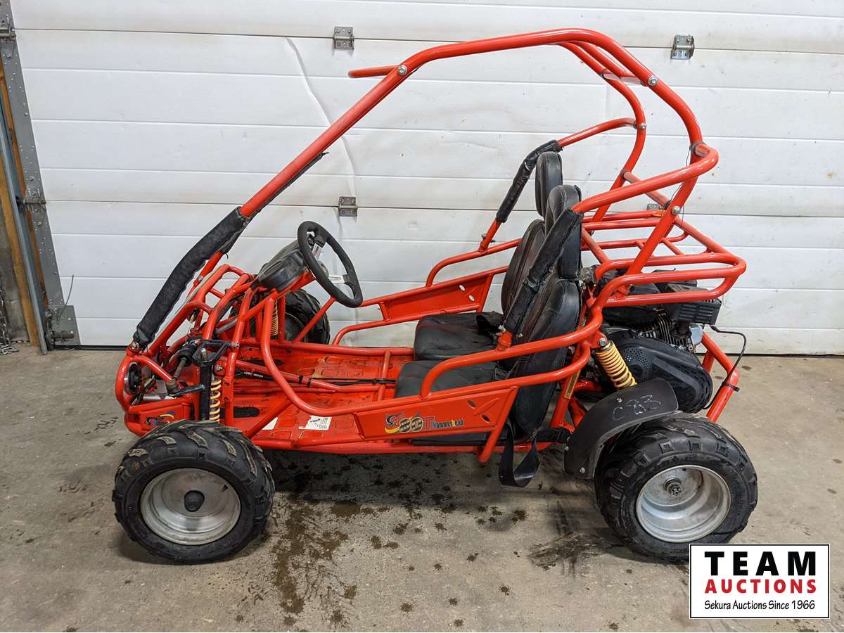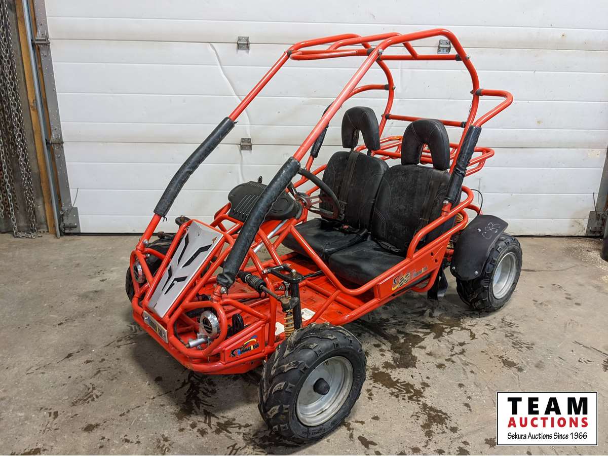 Electric start gas engine, variable speed transmission, spring and shock suspension, hydraulic disc brake