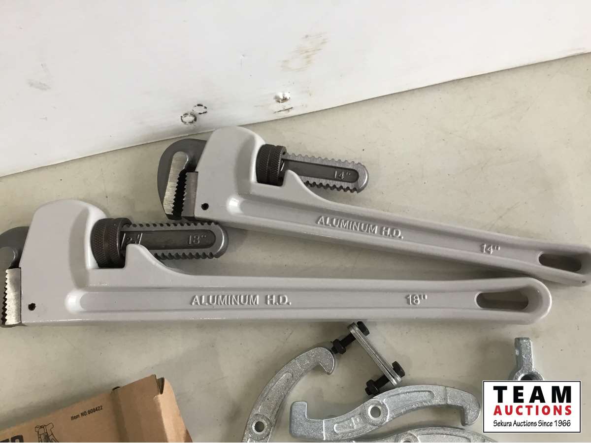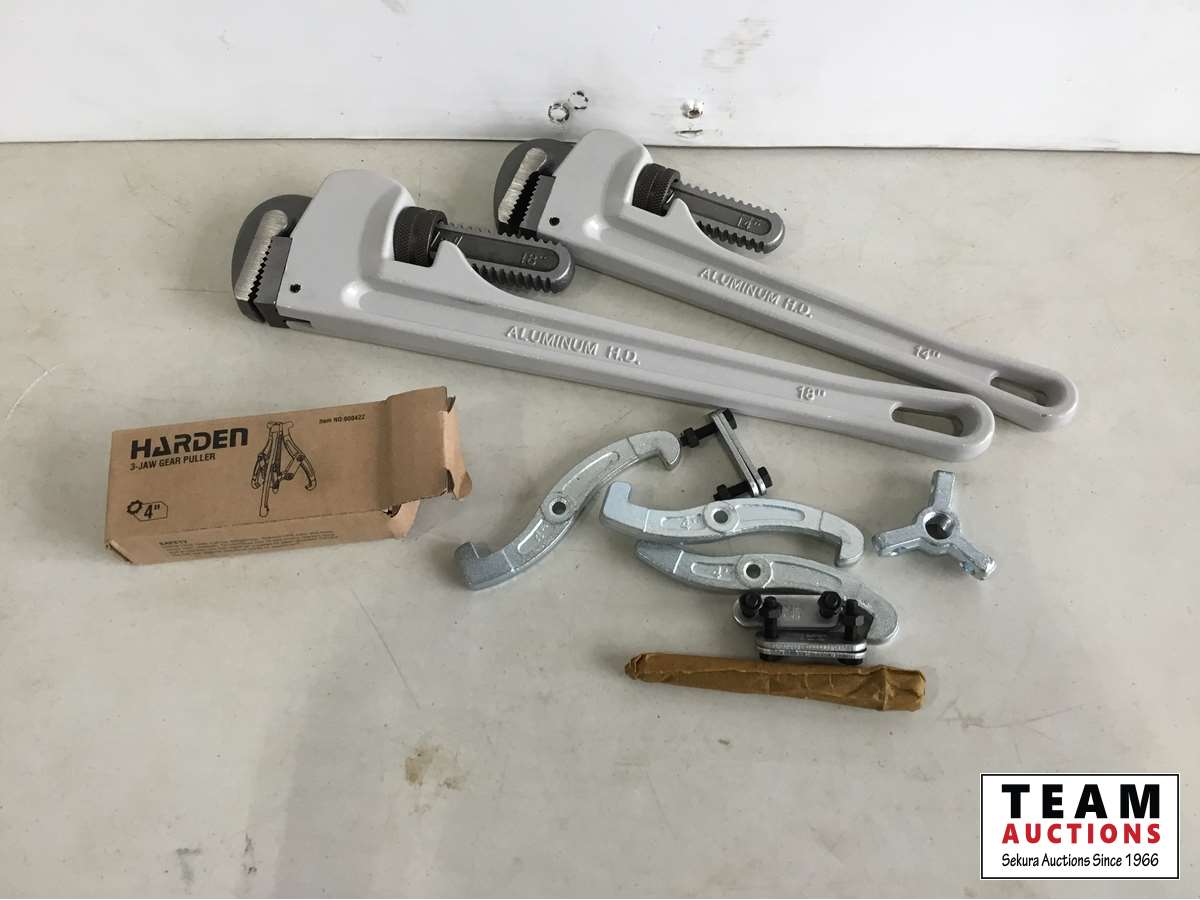 2152 Harden 3 Jaw Gear Puller, 14 Inch Pipe Wrench and 18 Inch Pipe Wrench (Unused)