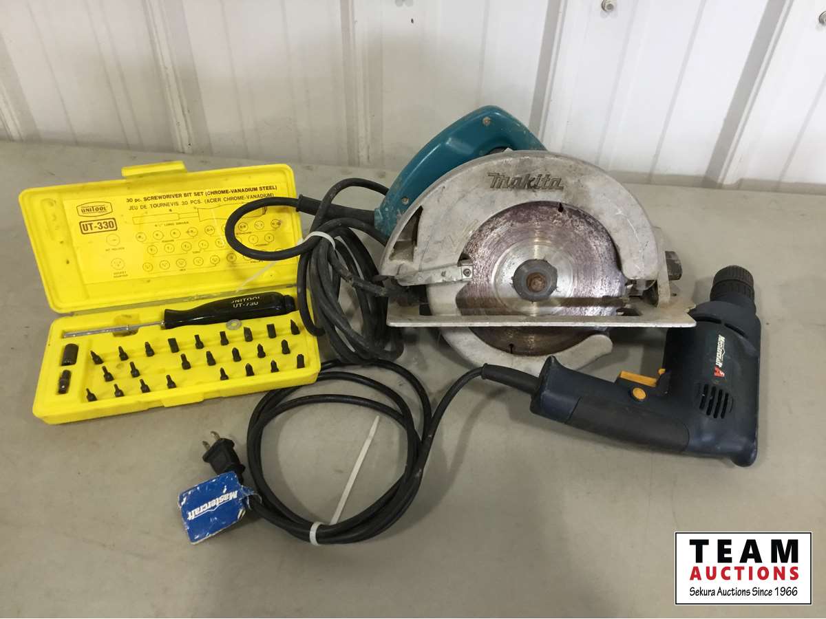 1950 Makita Circular Saw, Mastercraft Electric Drill and Bit Set