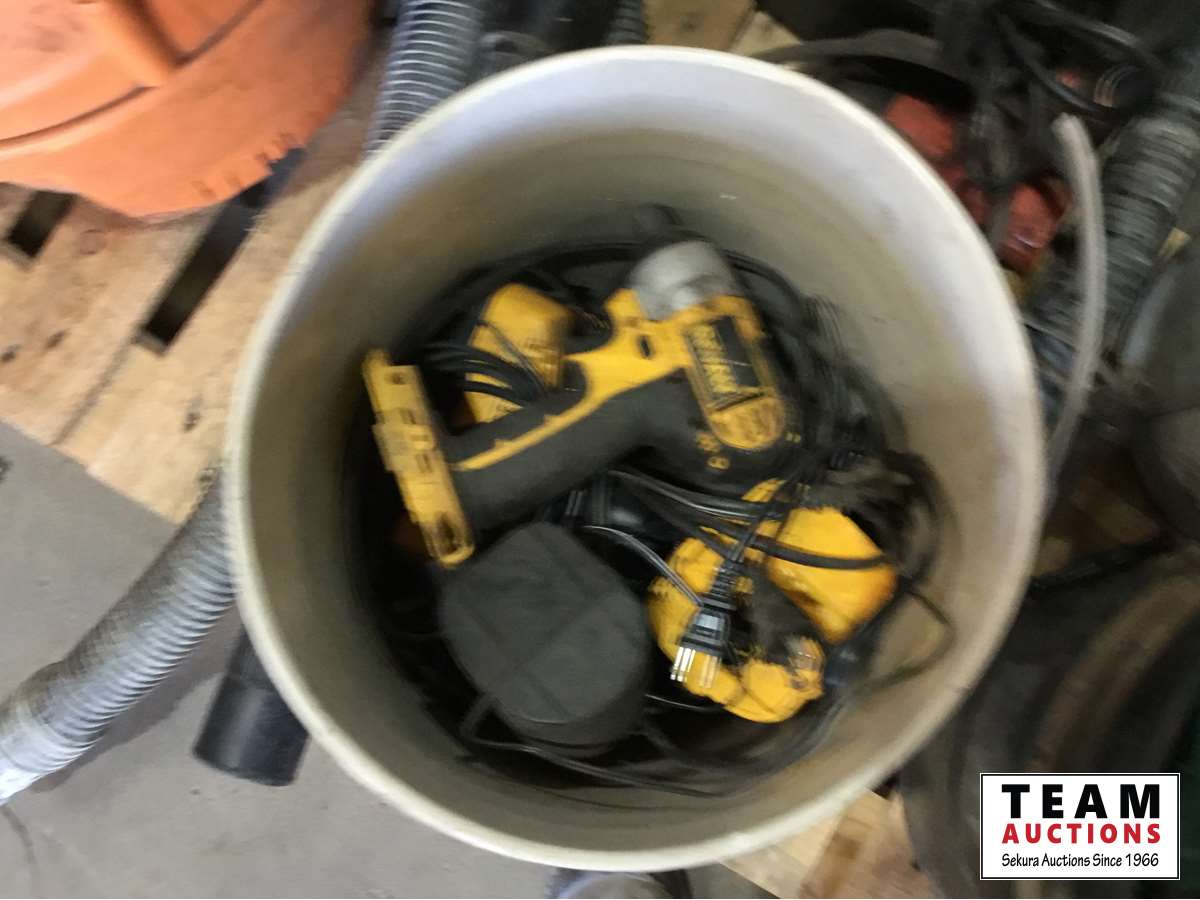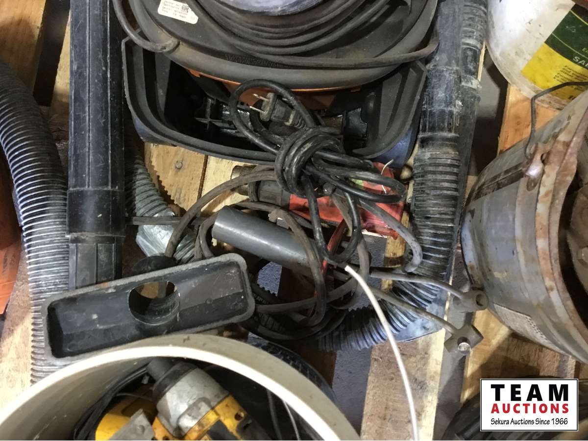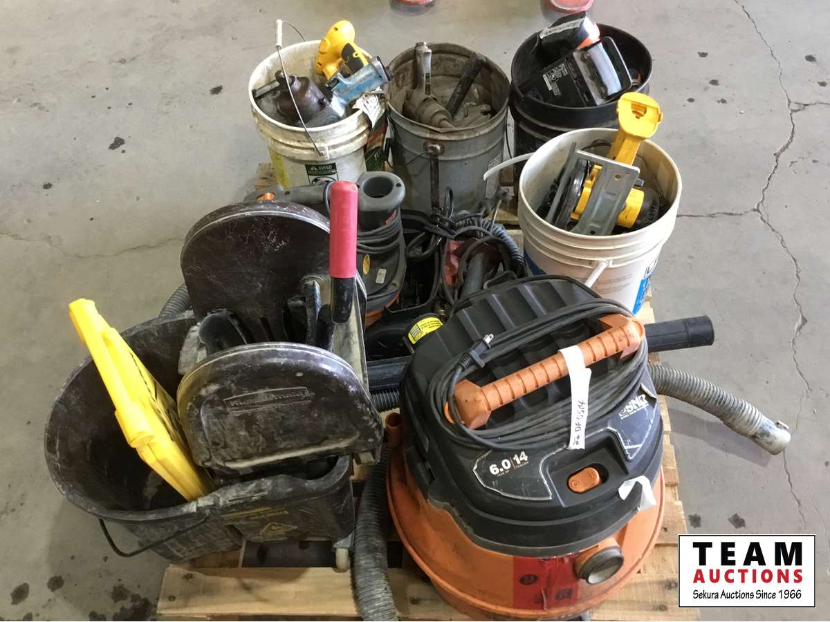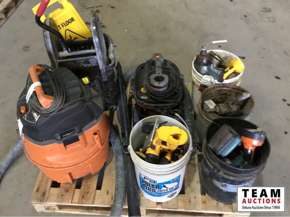 Vacuums, pails, assorted tools