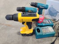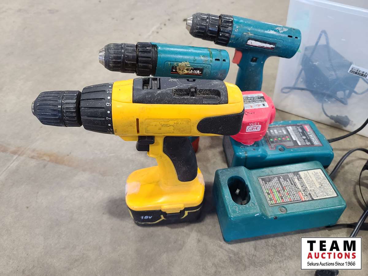1861 Qty of Cordless Drills, Batteries, Charges and Painters Masks