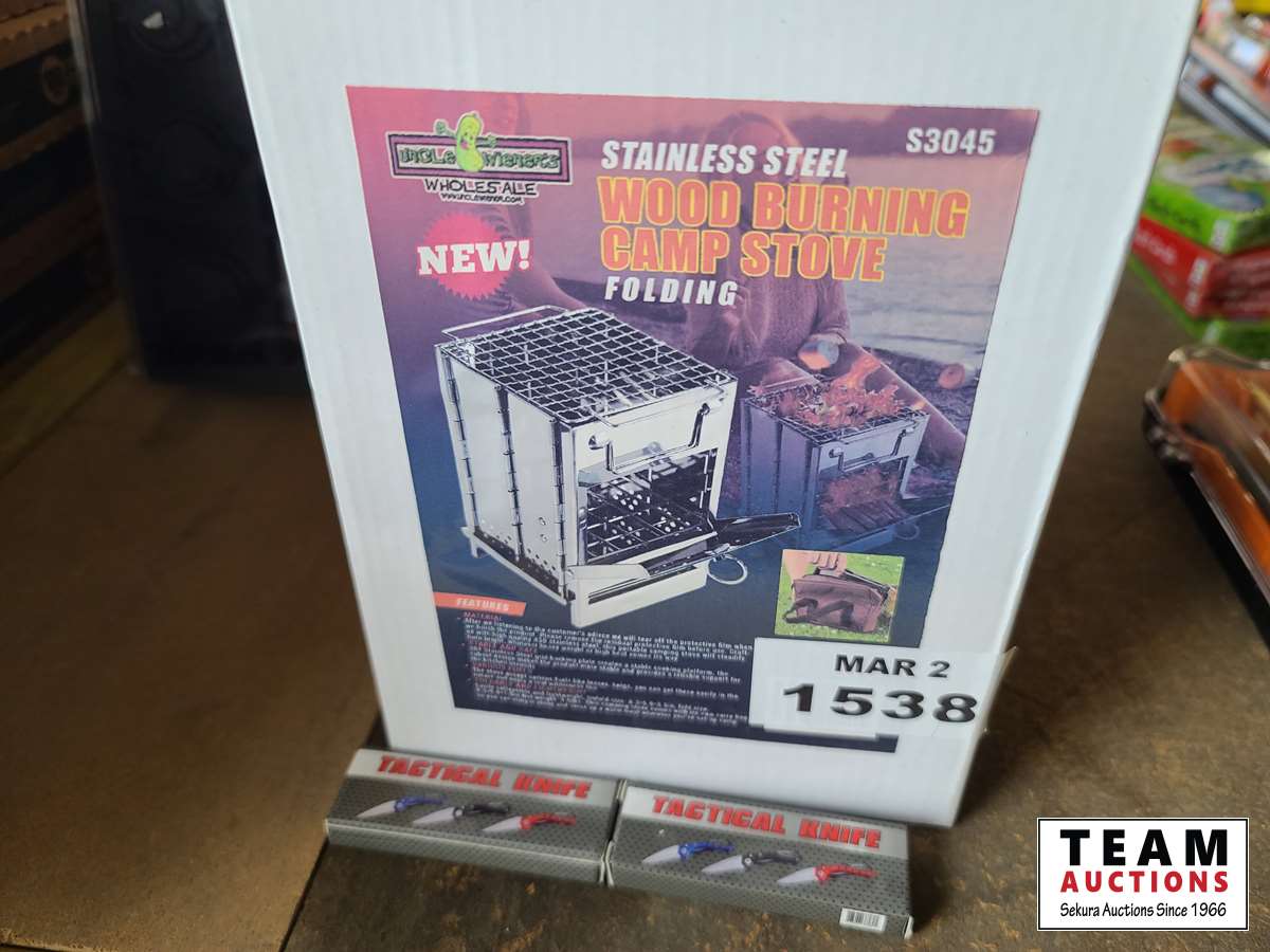 2311 Stainless Steel Camp Stove and (2) Tactical Knives (Unused)