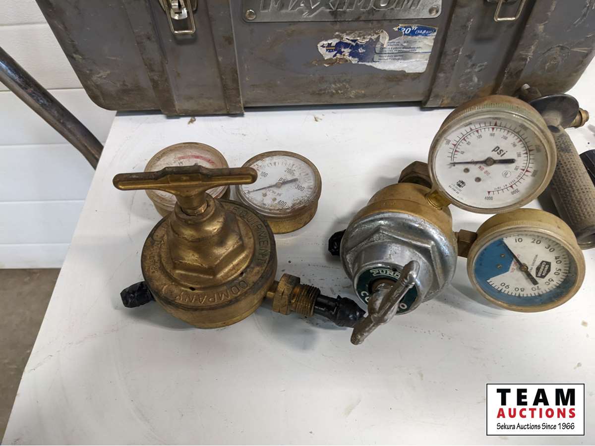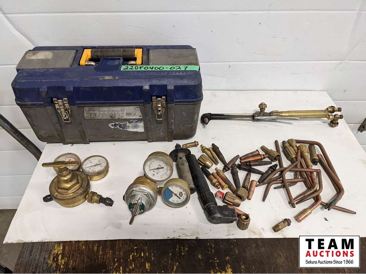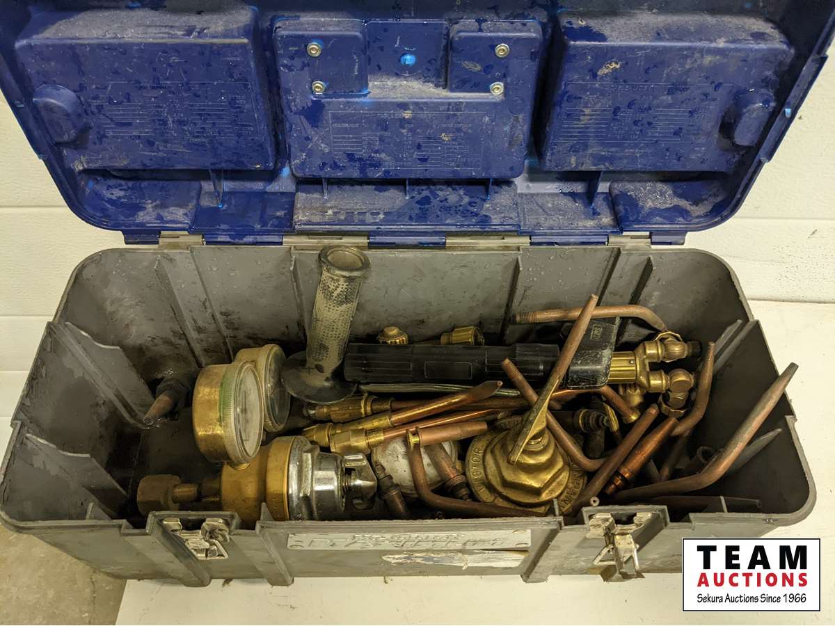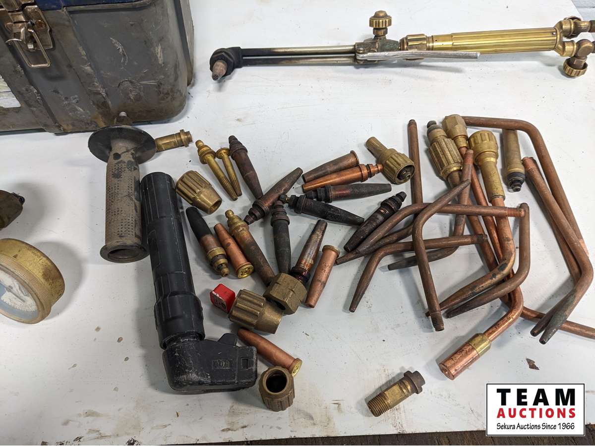 1138 Tool Box with Cutting Torch Gauges, Torch Head & Tips