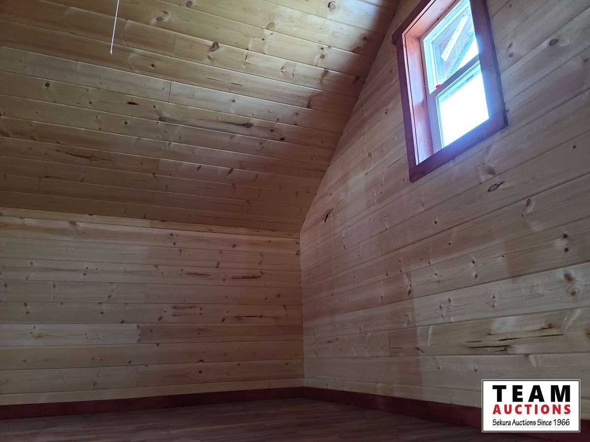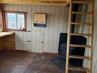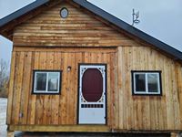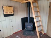 Metal roof, wood burning stove, loft, wood box, small deck and overhang roof included