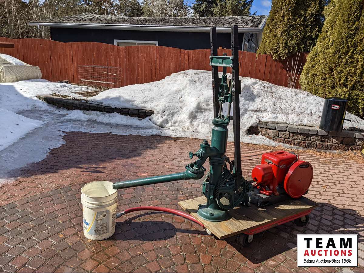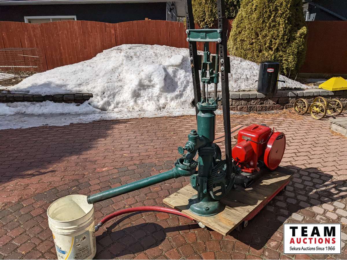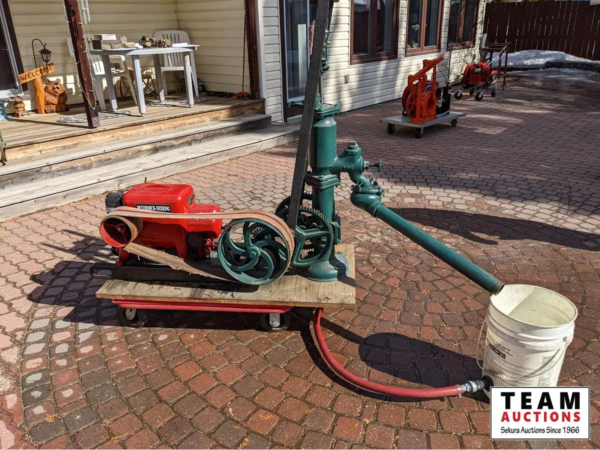 Single cylinder water cooled engine, Dominion working water pump (recycles water), on cart with casters