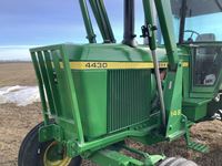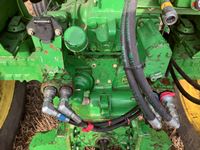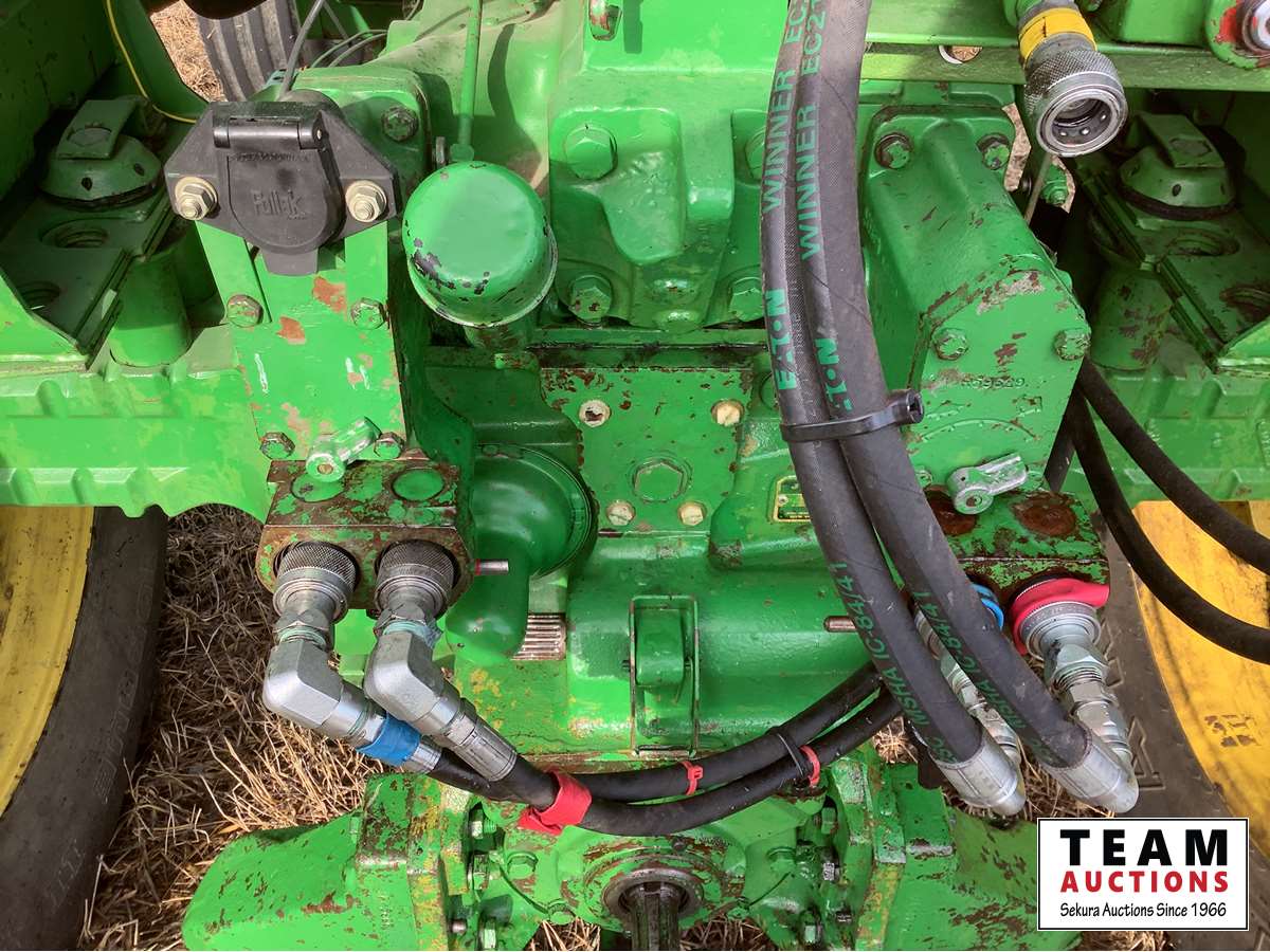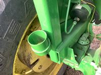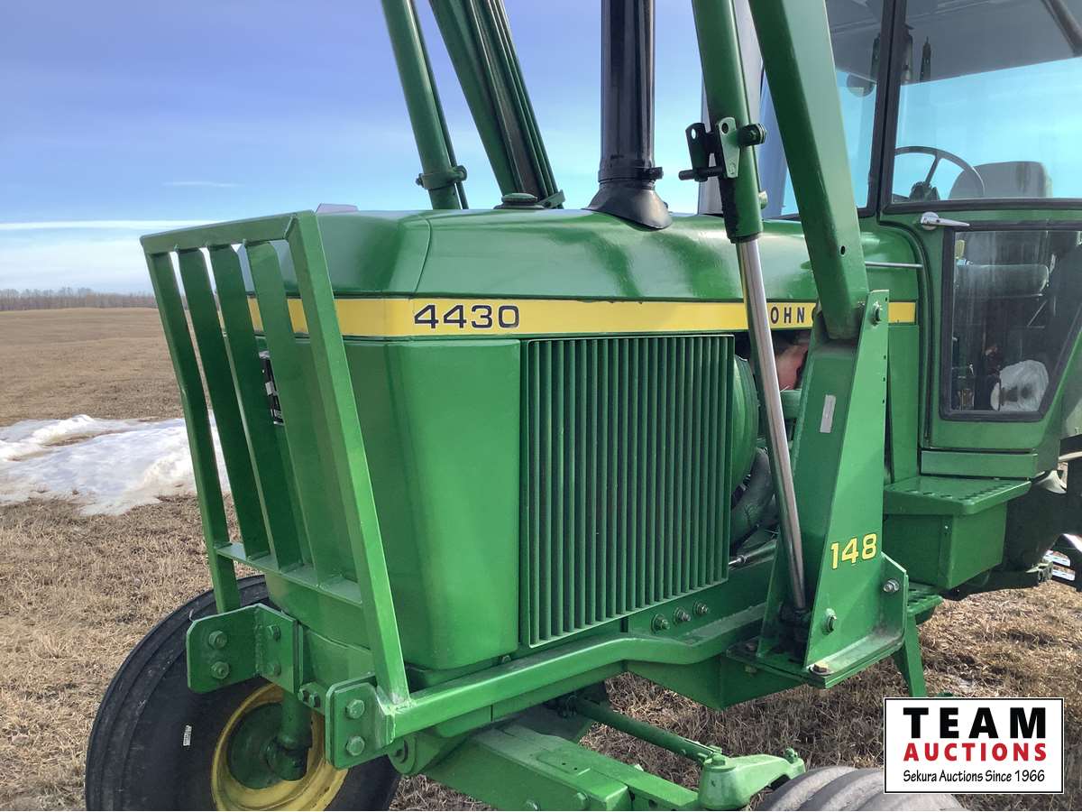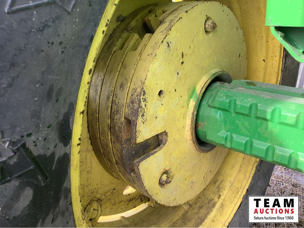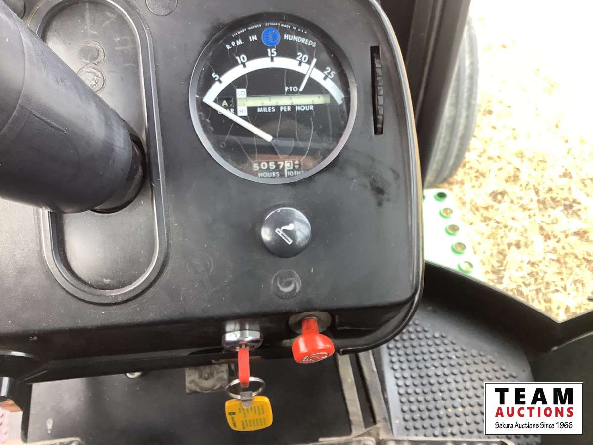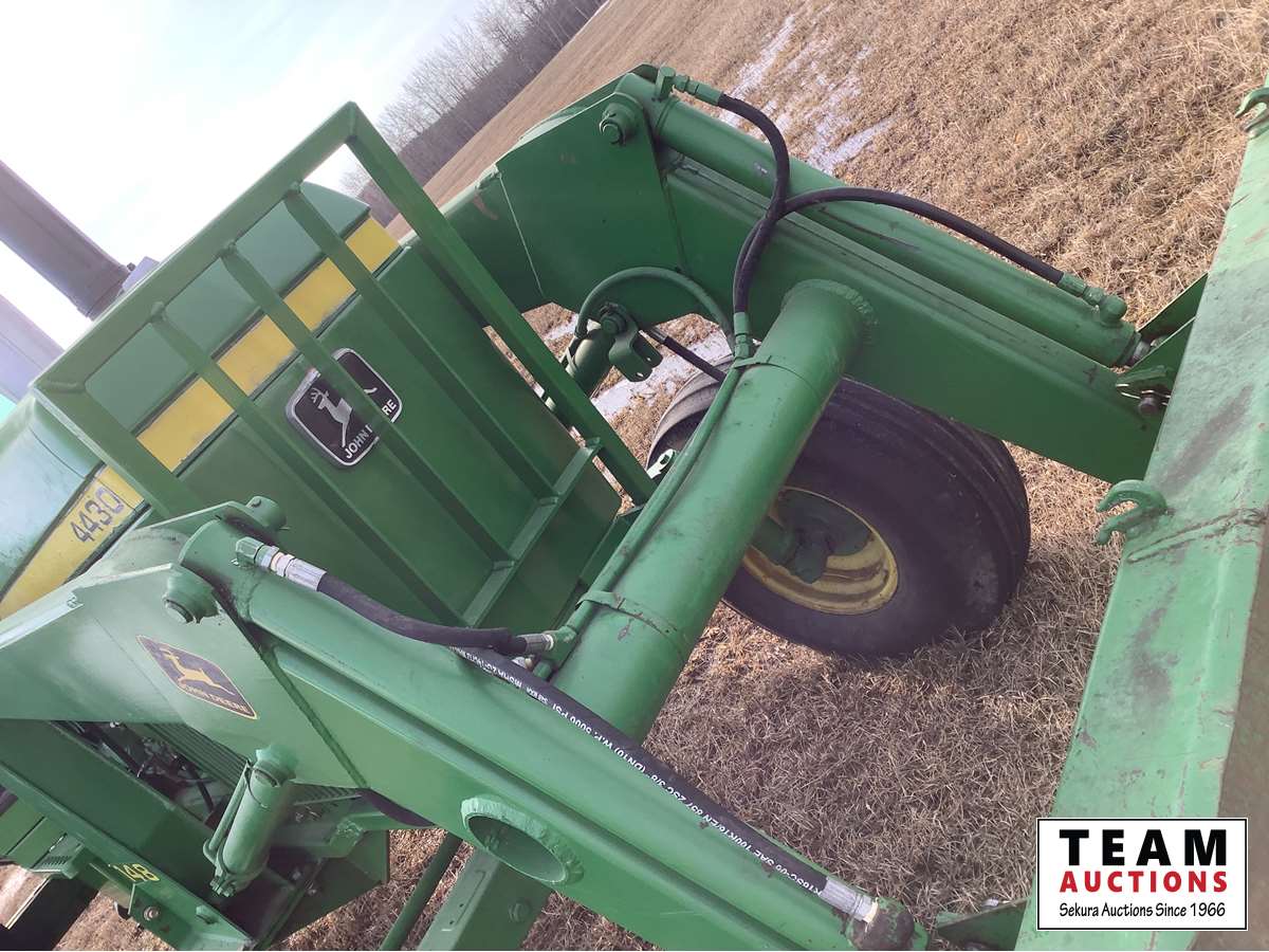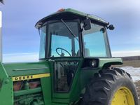JD 148 loader, bucket, bale fork, grill guard, cab, heat, AC, radio, 16 speed Quad range transmission, dual rear hydraulic outlets, has rear hydraulic by pass so you don't have to unhook loader hoses to use rear remote, 11.00-16 front & 18.4 x 38 rear tires