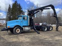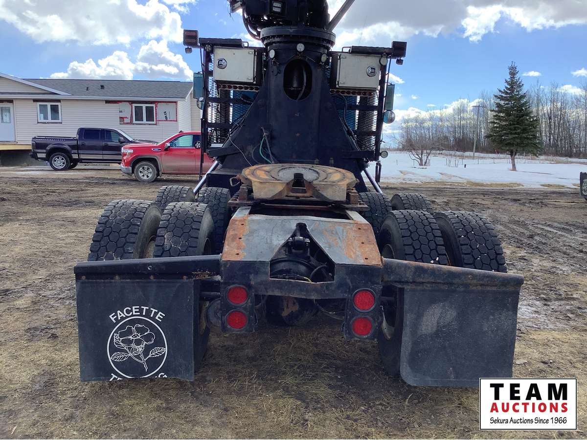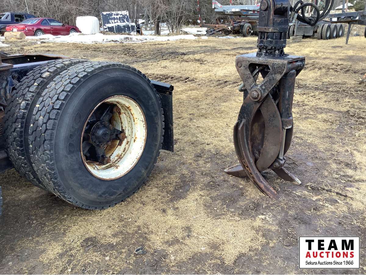 Caterpillar 3406, Eaton Fuller 18 speed transmission, rear spring suspension, Olympic long reach log loader and grapple, 445/65R22.5 front, 11R24.5 rear