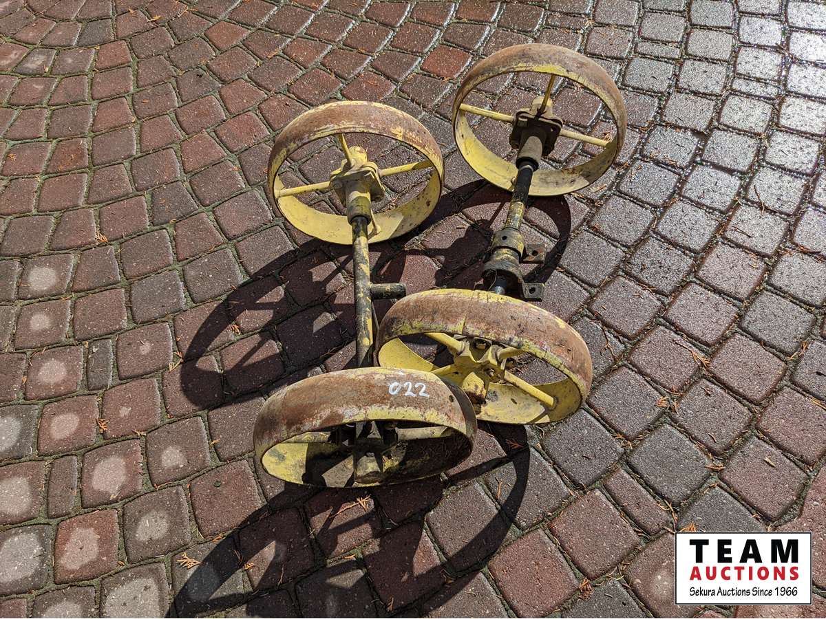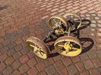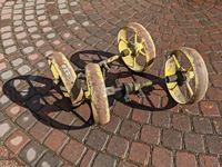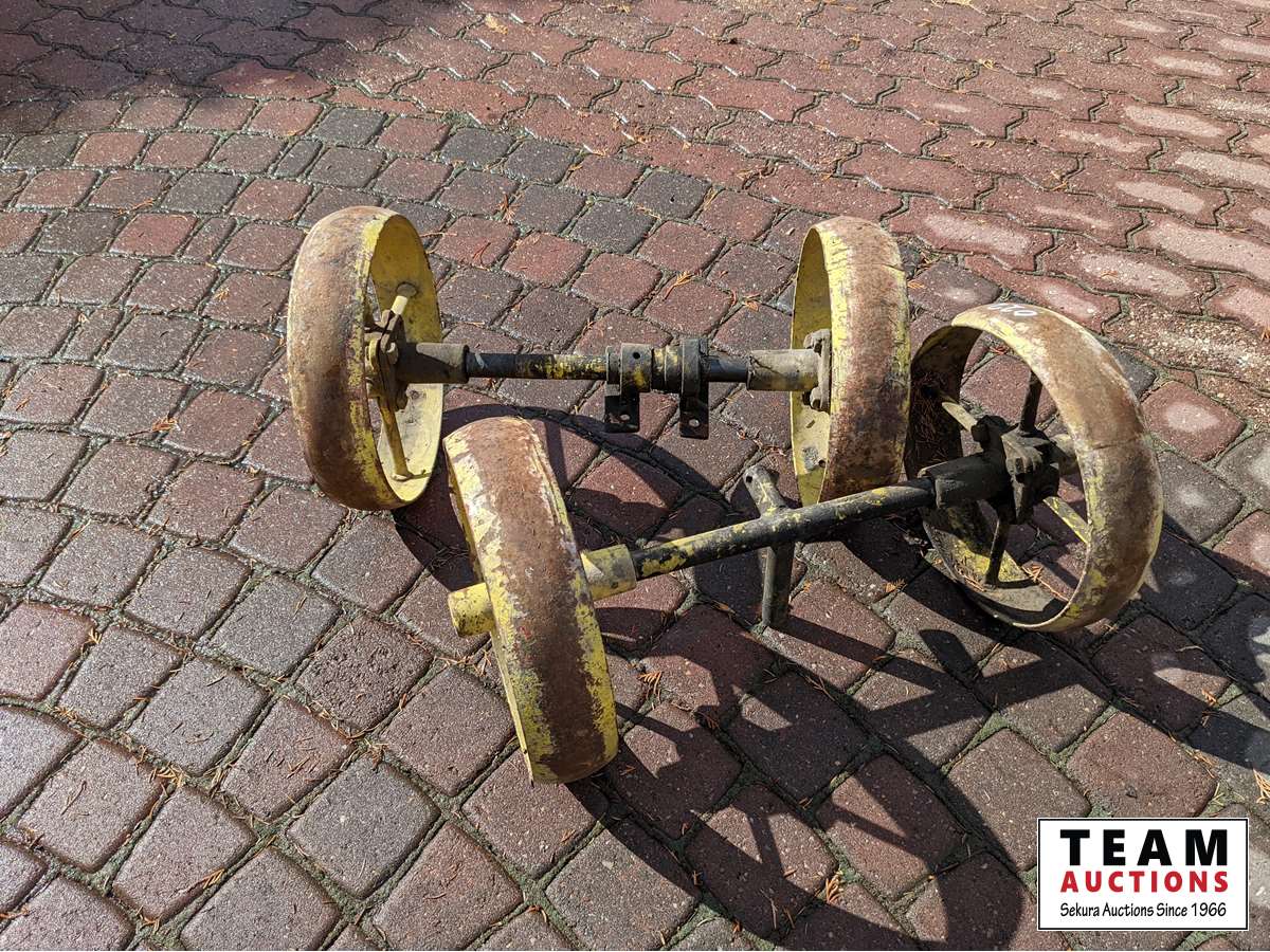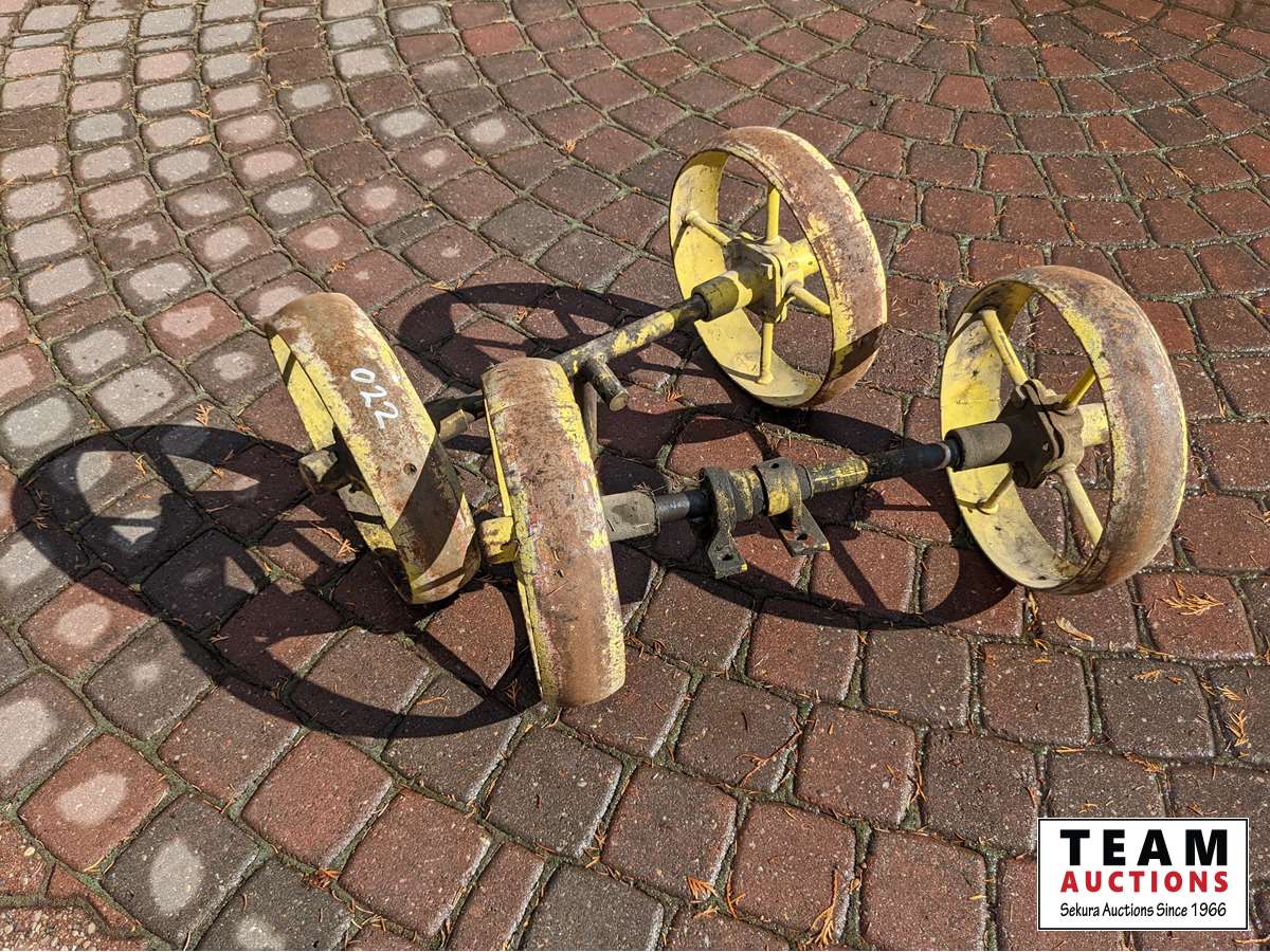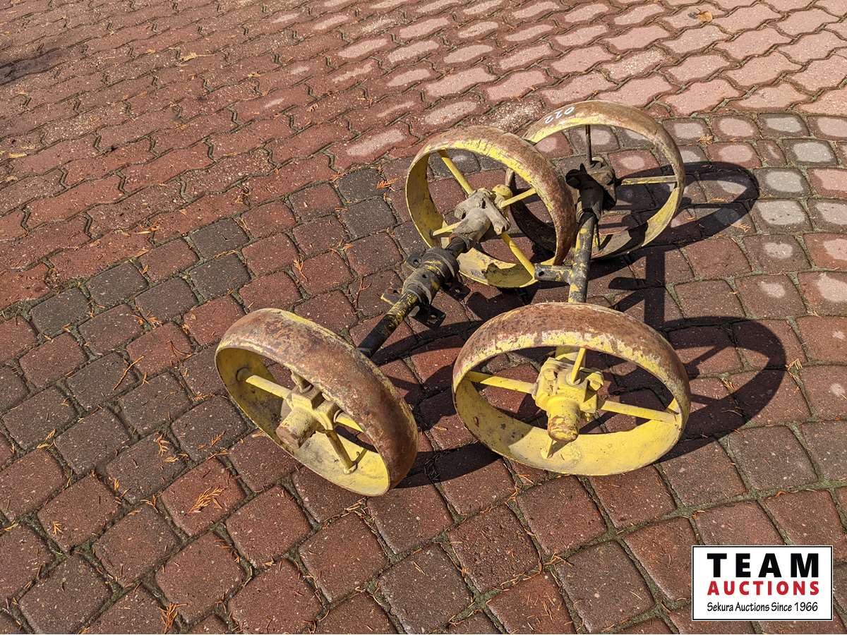 13 inch wheels, 1 inch axle, 17 inch between wheels