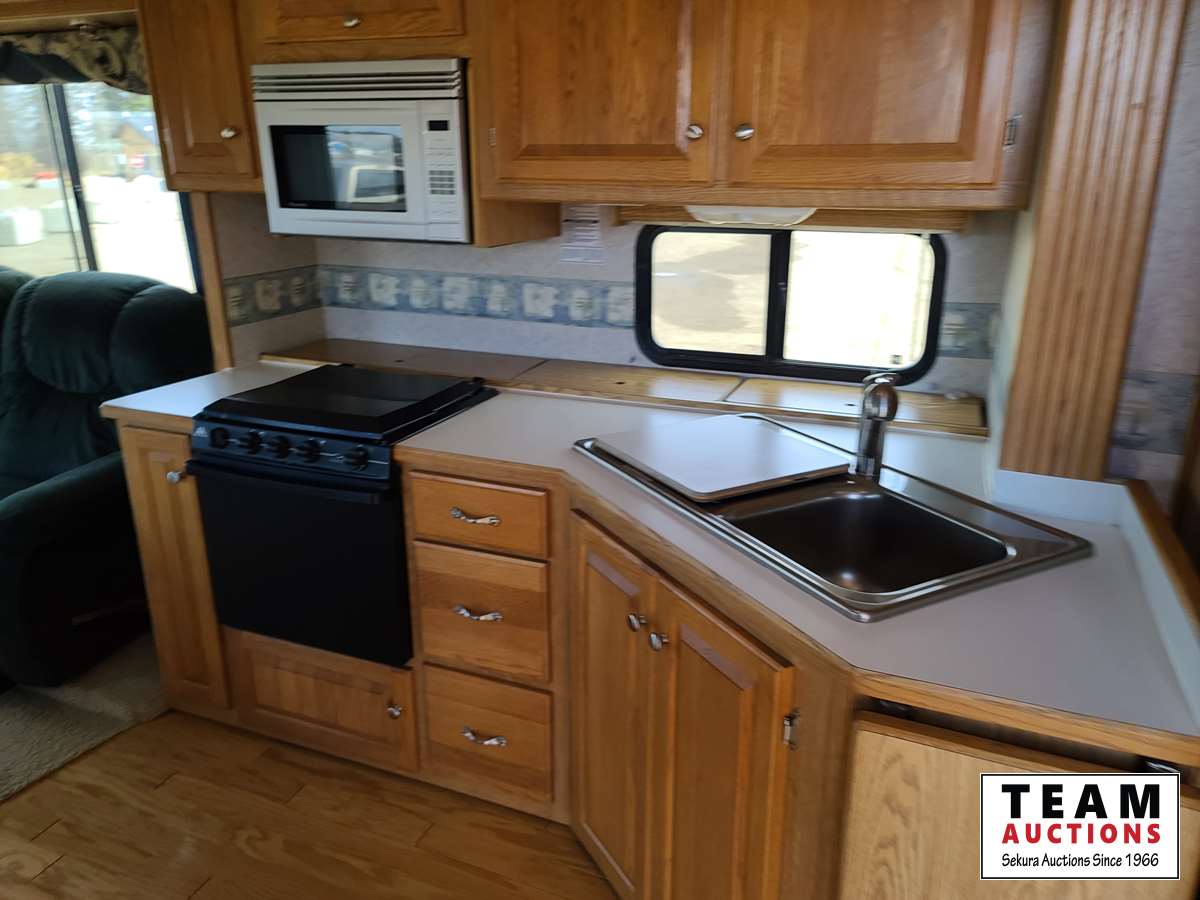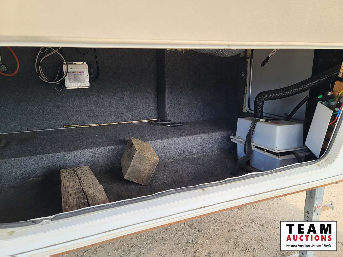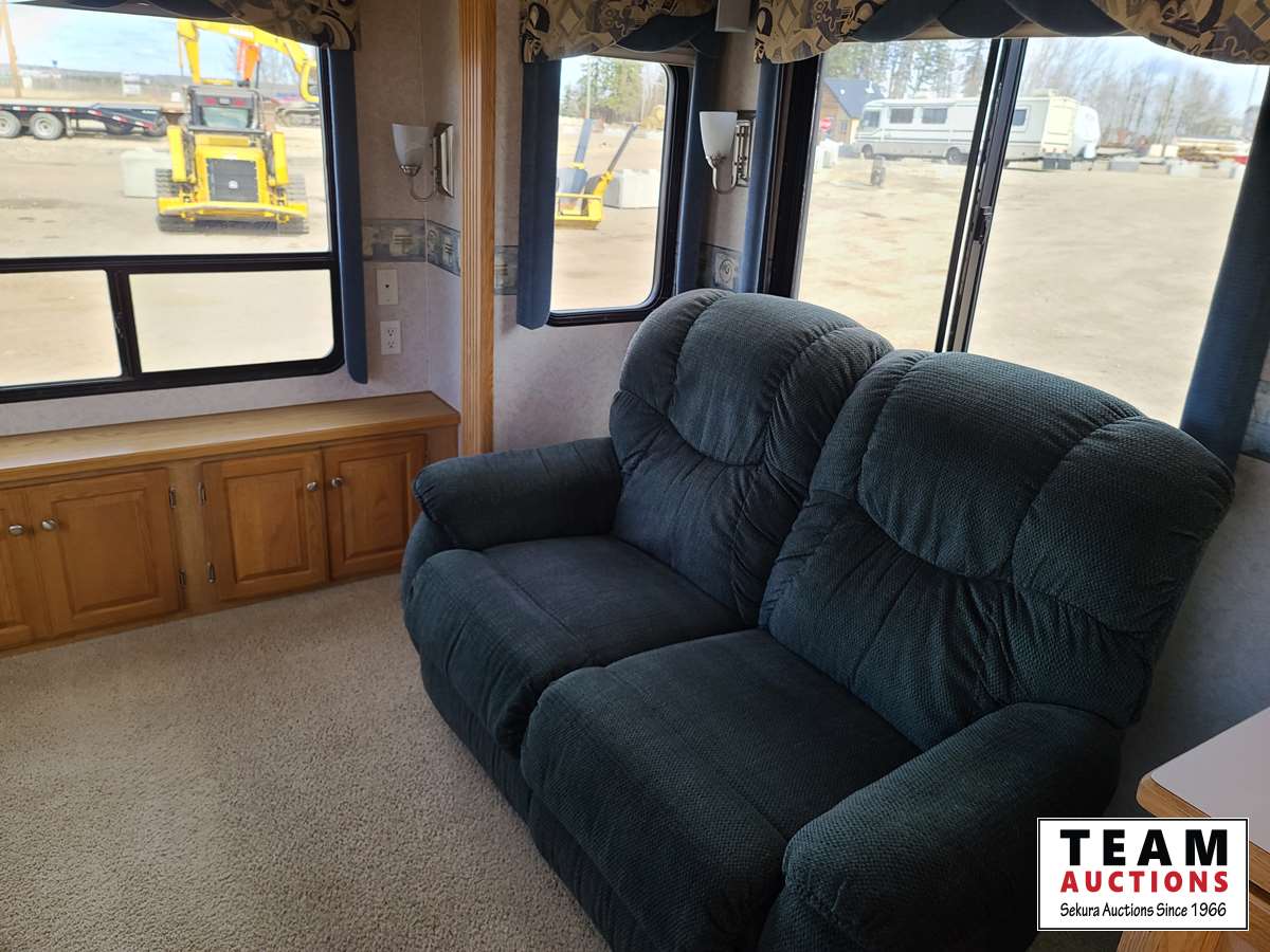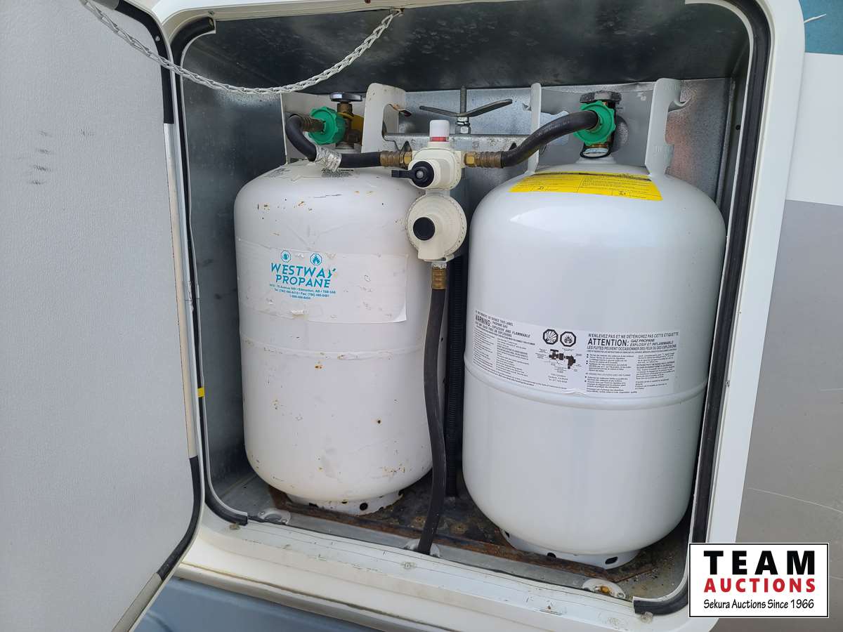 One slide out, A/C, fridge, stove, microwave, dinette, love seat, bathroom, central vac, (2) propane tanks, outside shower, 235/80R16