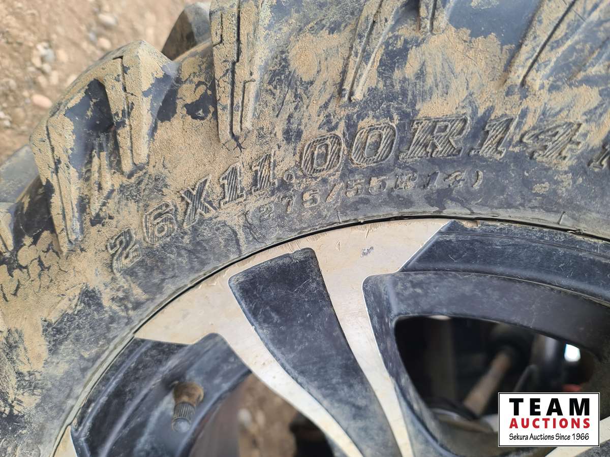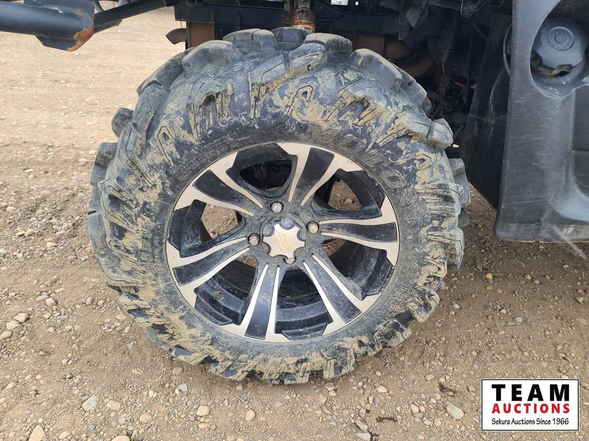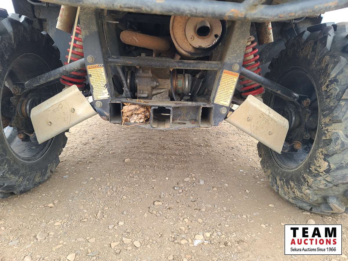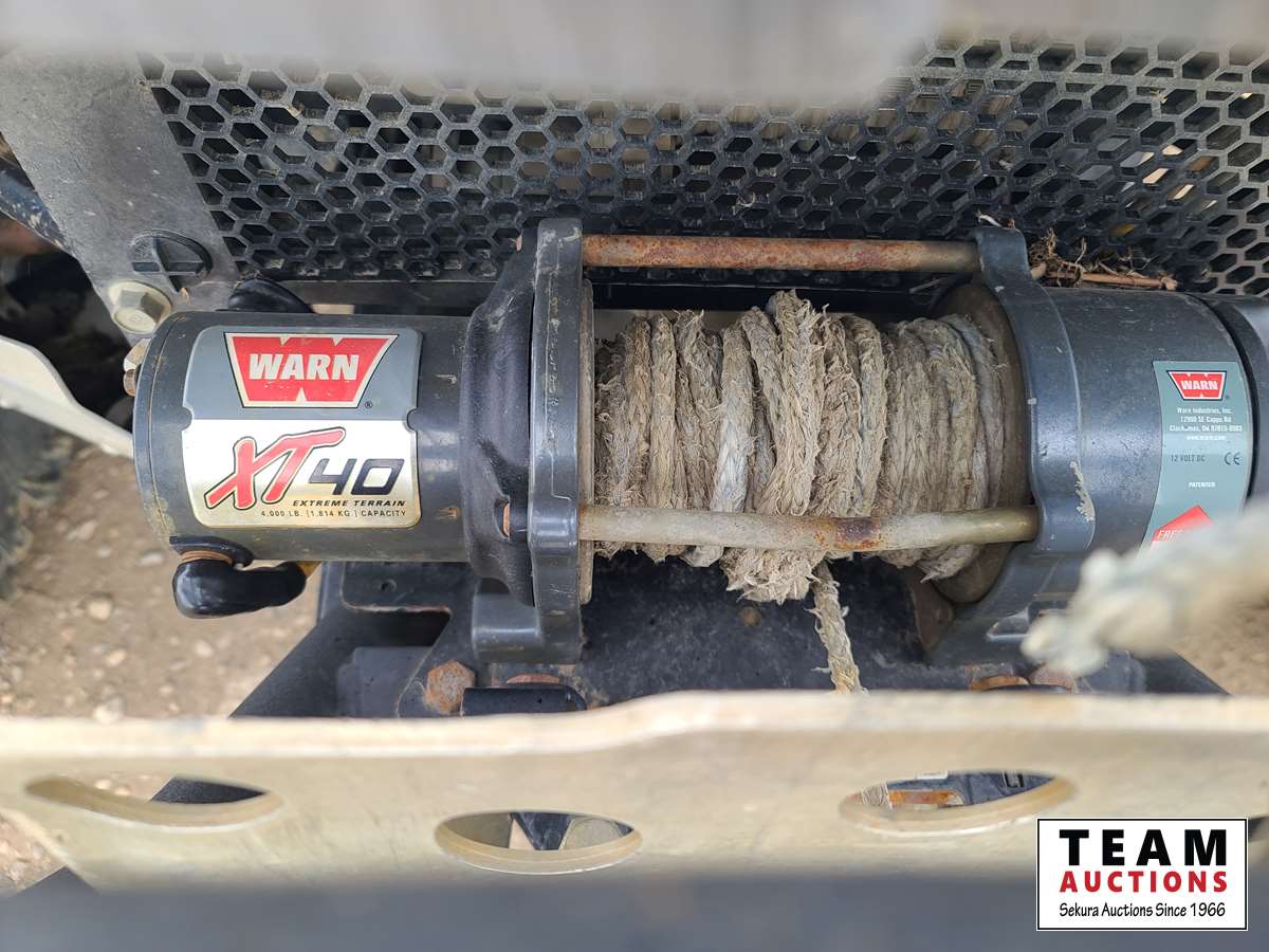 660 cc, 4-stroke single, liquid-cooled w/fan, automatic transmission, differential lock, on command 4 x 4, Warn 3000 lb winch w/remote, dump box, back seat, rear 26 x 11.00R14, 26 x 9.00R14 front
