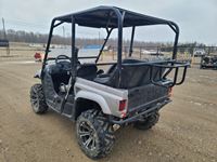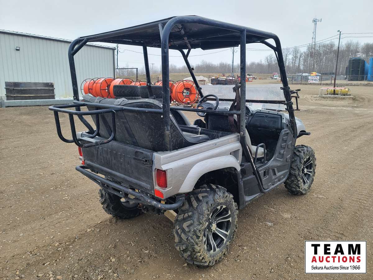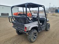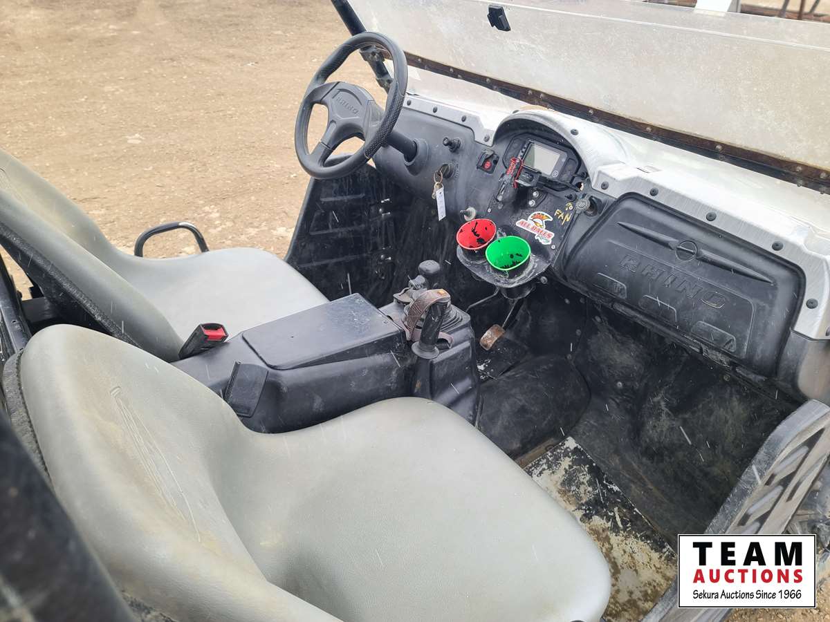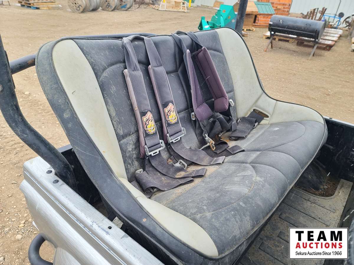660 cc, 4-stroke single, liquid-cooled w/fan, automatic transmission, differential lock, on command 4 x 4, Warn 3000 lb winch w/remote, dump box, back seat, rear 26 x 11.00R14, 26 x 9.00R14 front
