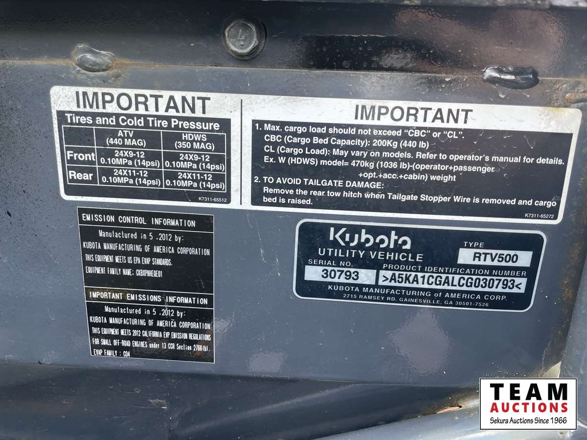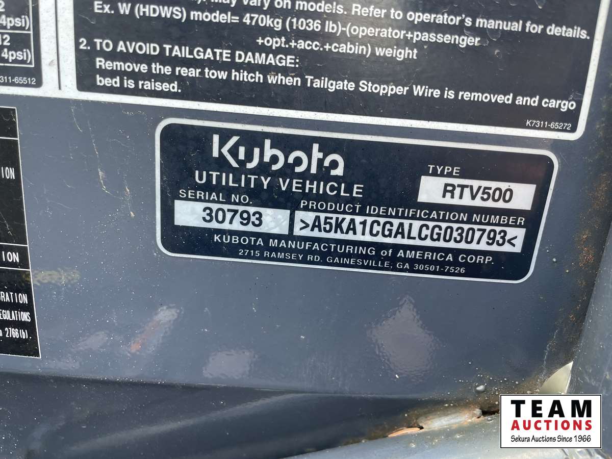 587A 2012 Kubota RTV 500 4X4 Tracked UTV